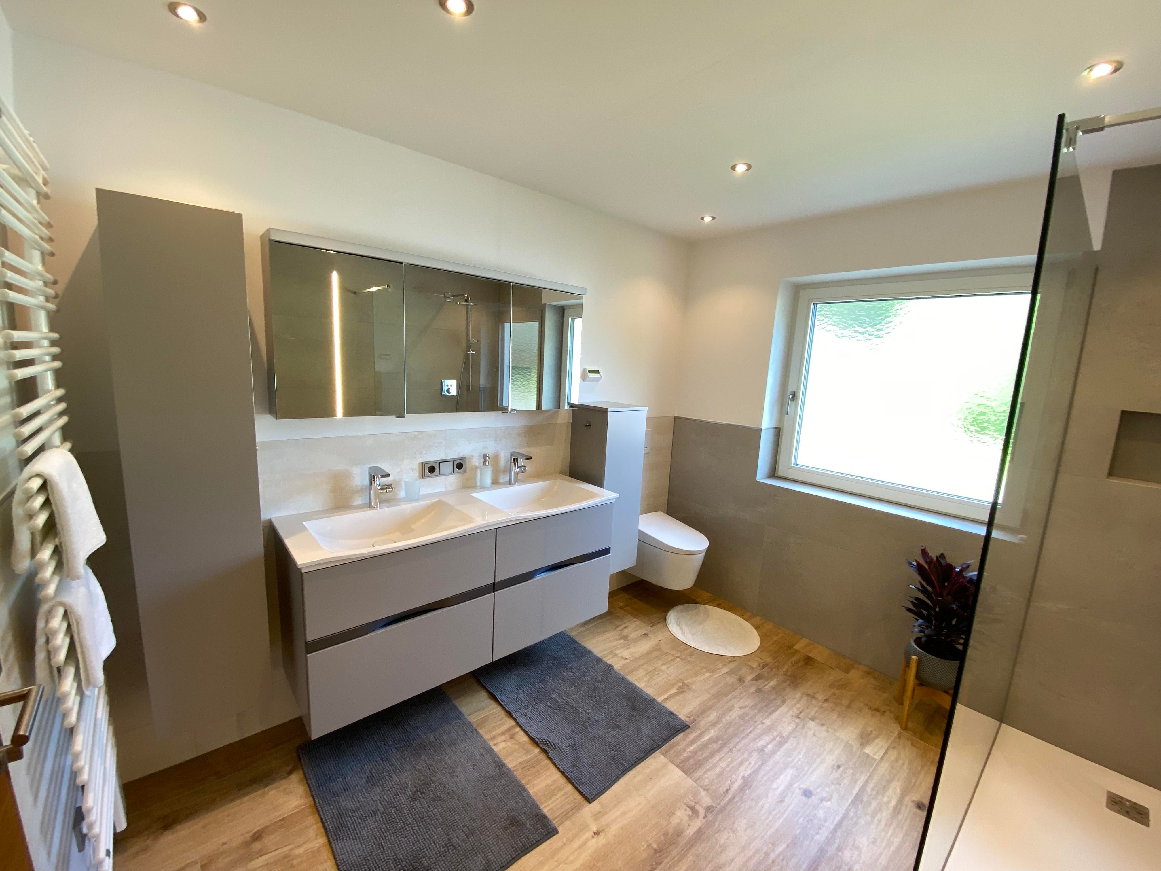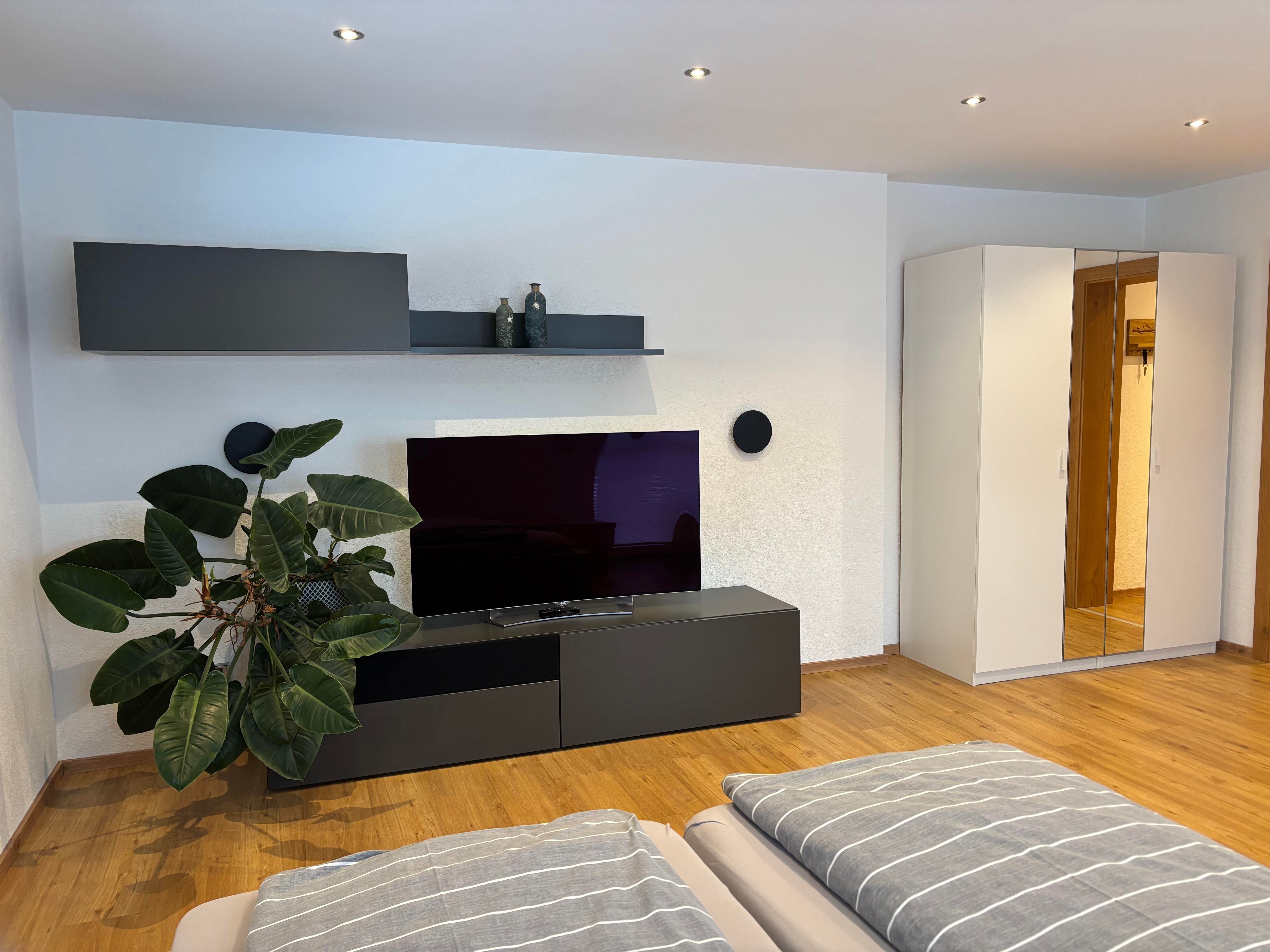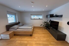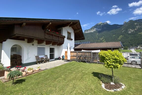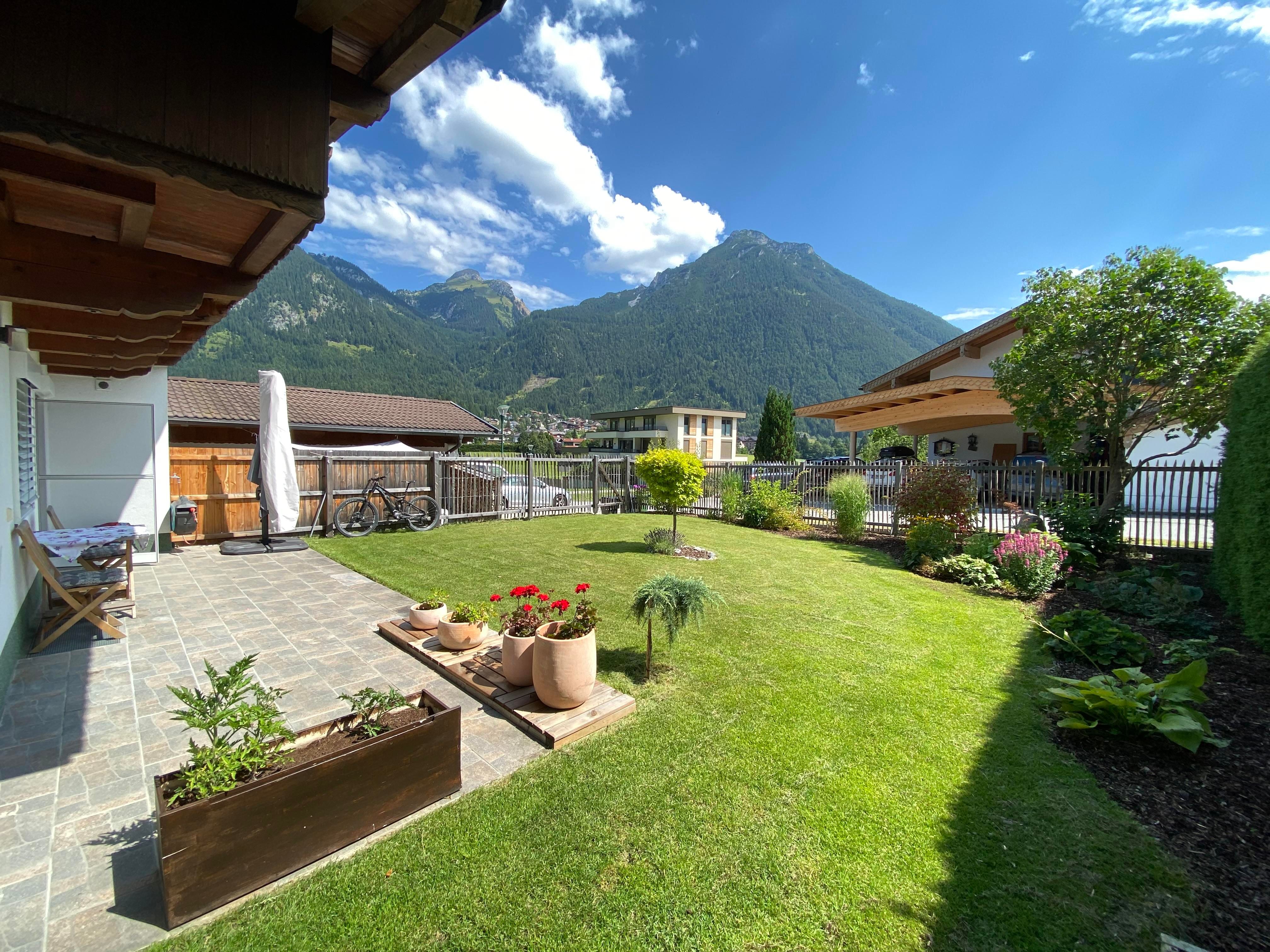 Wir bieten eine moderne Ferienwohnung mit einem großen Wohn-/Schlafzimmer, Küche, Badezimmer und Extra-WC. Mit dabei ist eine Terrasse mit wunderschönem eingezäunten Garten mit Blick auf das Rofangebirge. Gartis Parkplatz ist vor der Wohnung, Bettwäsche und Handtücher inklusive.