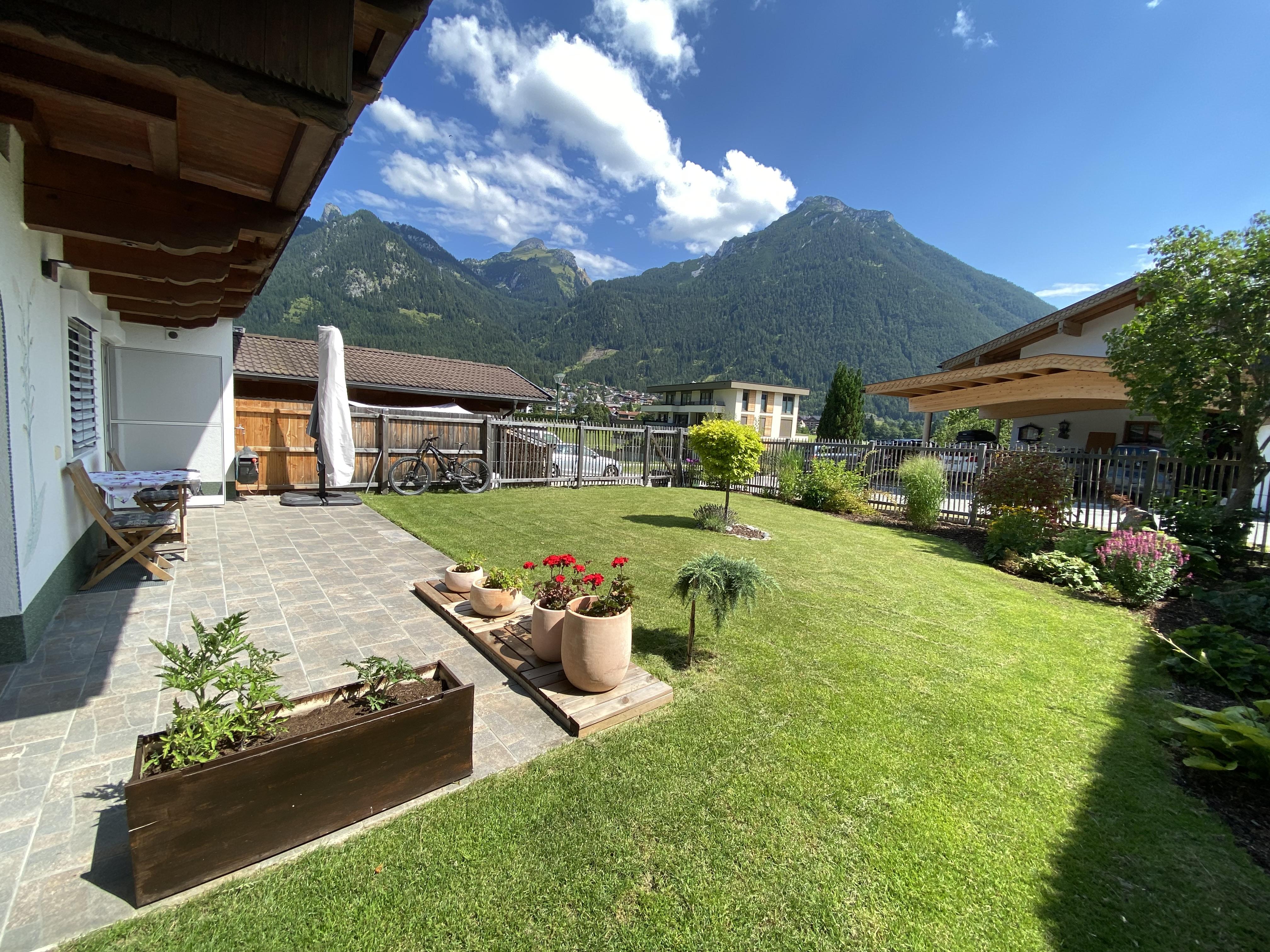 Wir bieten eine moderne Ferienwohnung mit einem großen Wohn-/Schlafzimmer, Küche, Badezimmer und Extra-WC. Mit dabei ist eine Terrasse mit wunderschönem eingezäunten Garten mit Blick auf das Rofangebirge. Gartis Parkplatz ist vor der Wohnung, Bettwäsche und Handtücher inklusive.