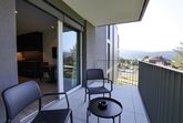 2 Apartments: Badezimmer (Dusche, WC), Küchenzeile, Sitzgruppe, Doppelbett+Balkon