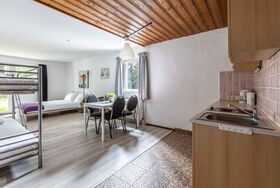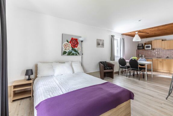 Willkommen im Apartment 11, Deinem perfekten Rückzugsort für einen erholsamen Aufenthalt. Das 36 m² Apartment befindet sich im 1.Stock und bietet ein gemütliches Wohn-/ Schlafzimmer mit Flat-TV sowie einer voll ausgestatteten Küchenzeile. Das Badezimmer verfügt über Dusche und WC. Genieße den Komfort einer eigenen Unterkunft und entspanne in ruhiger Umgebung. Vom Wohnzimmer gelangst Du auf die Terrasse mit Waldblick.