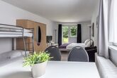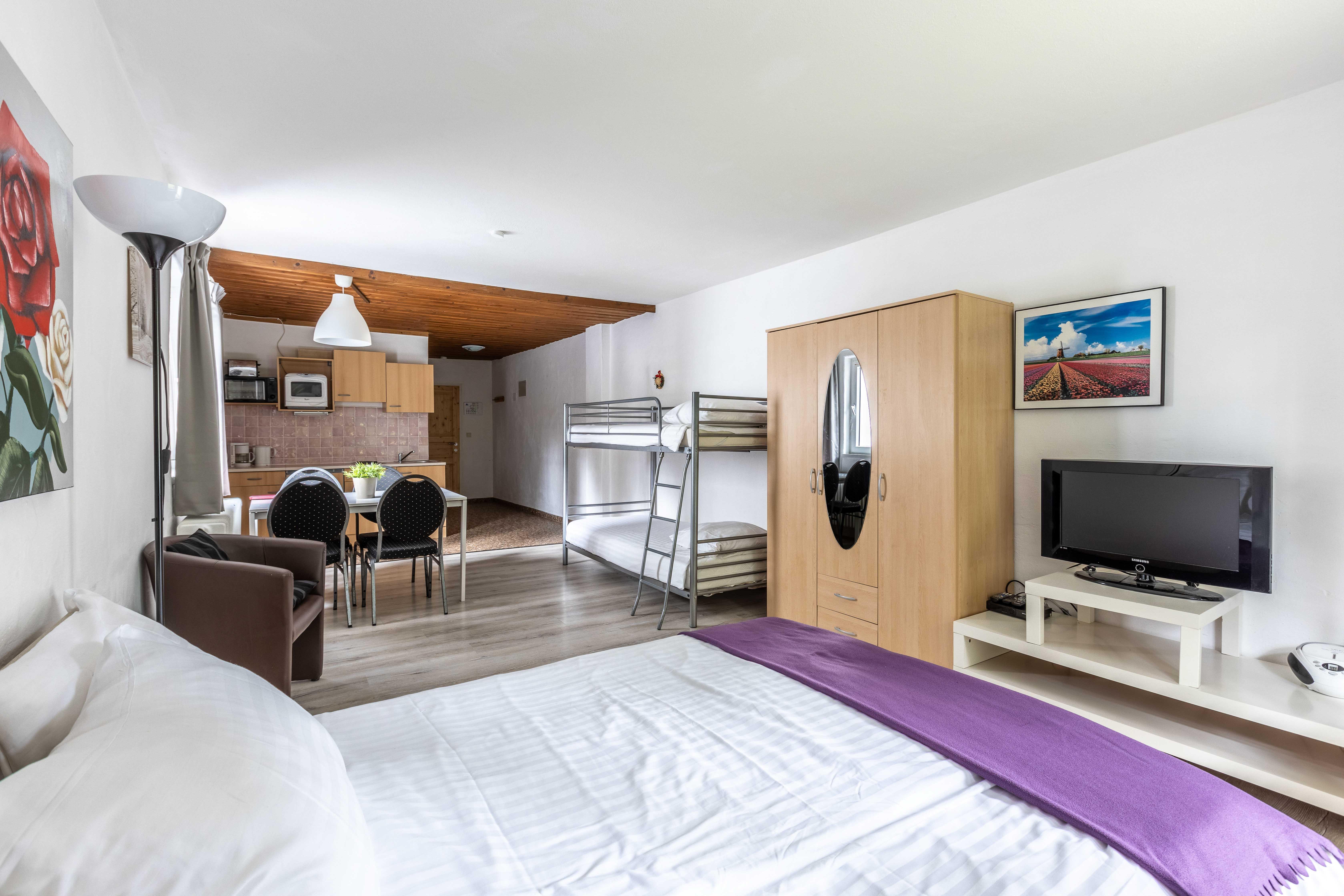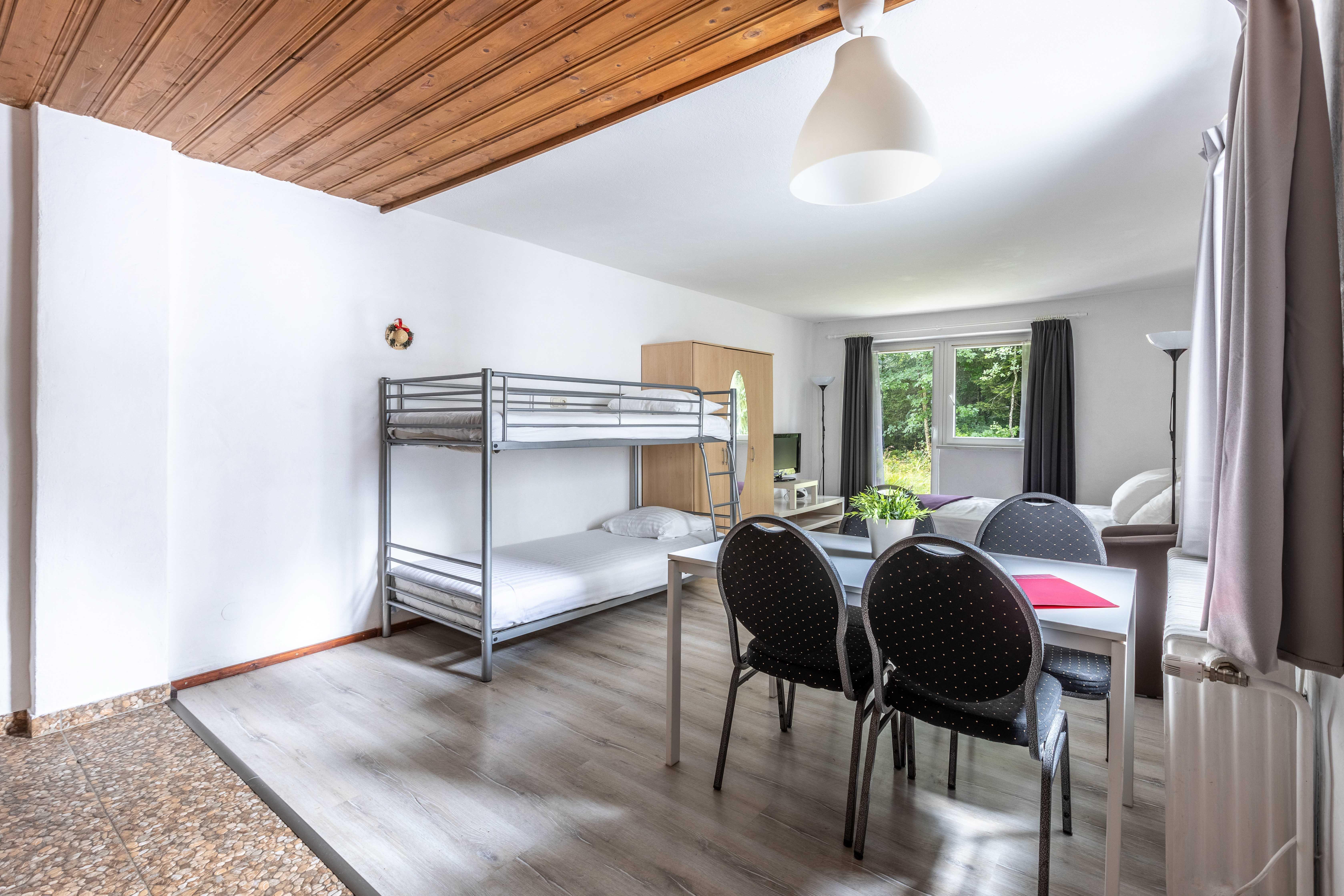 Die Zimmer bieten Flat-TV, bequemes Doppelbett (teils plus Stockbett), Dusche, Sitzgruppe sowie teilweise Balkon.