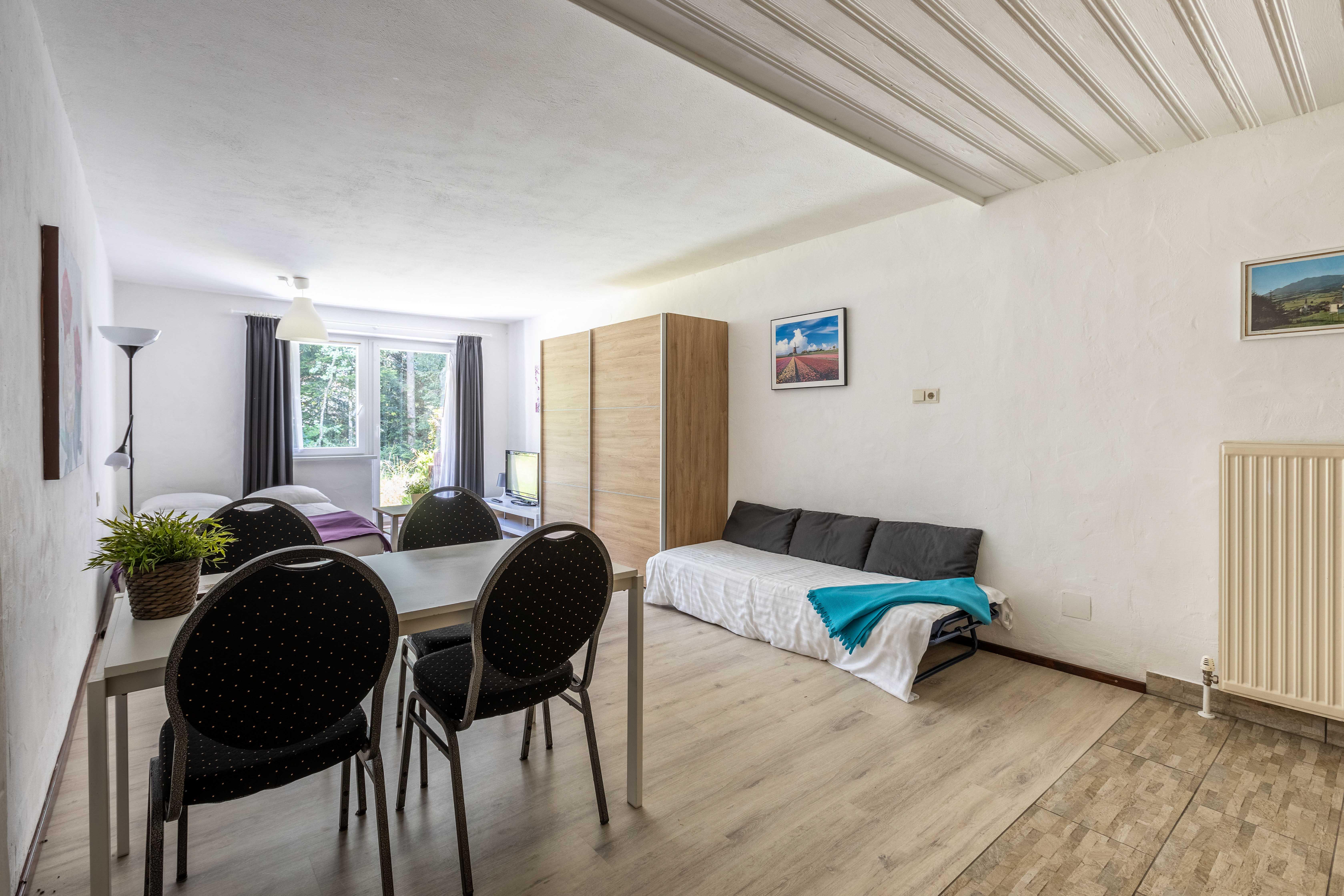 Willkommen im Apartment 10, Deinem perfekten Rückzugsort für einen erholsamen Aufenthalt. Das 36 m² Apartment befindet sich im 1.Stock und bietet ein gemütliches Wohn-/ Schlafzimmer mit Flat-TV sowie einer voll ausgestatteten Küchenzeile. Das Badezimmer verfügt über Dusche und WC. Genieße den Komfort einer eigenen Unterkunft und entspanne in ruhiger Umgebung. Vom Wohnzimmer gelangst Du auf die Terrasse mit Waldblick.