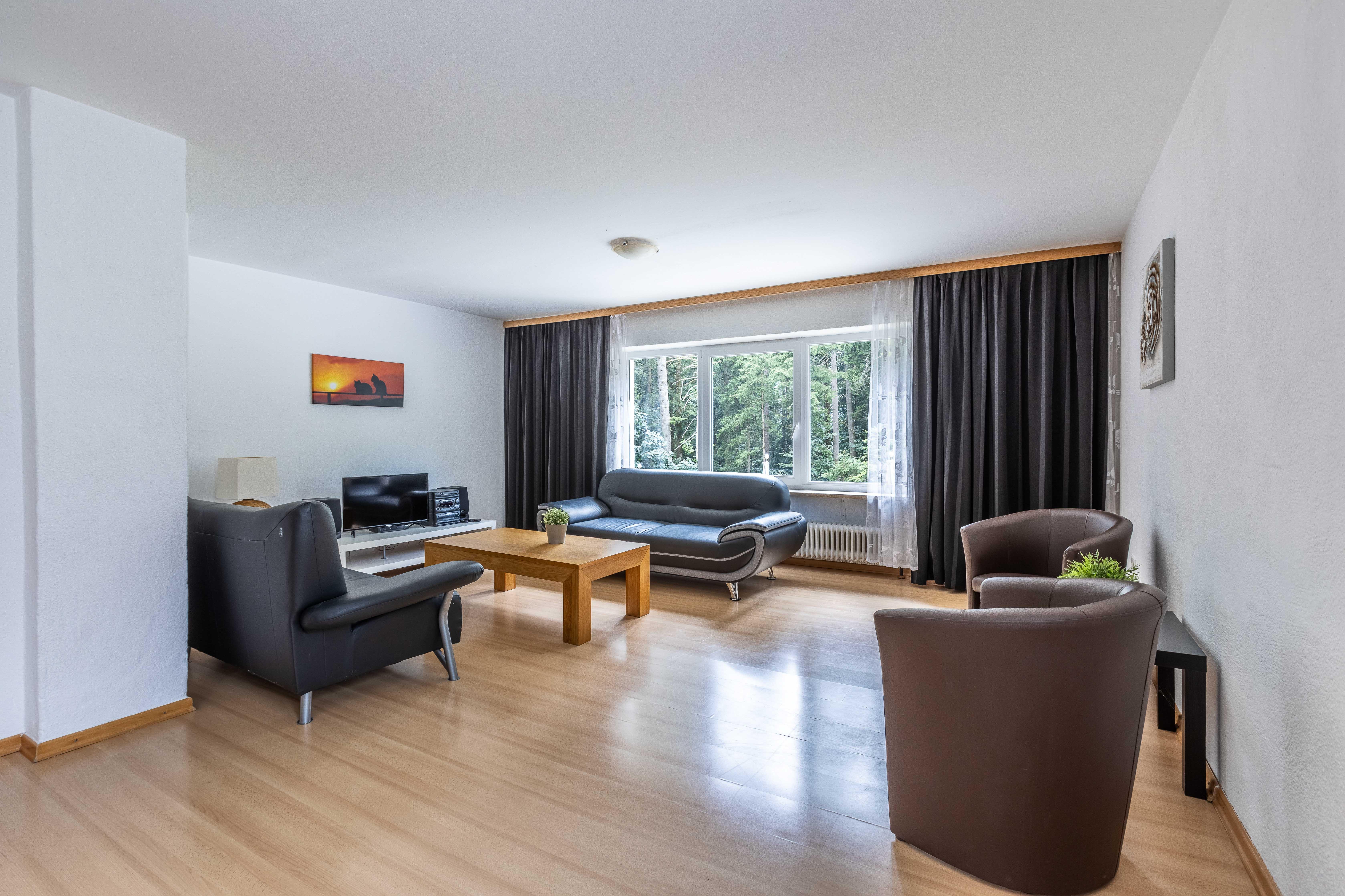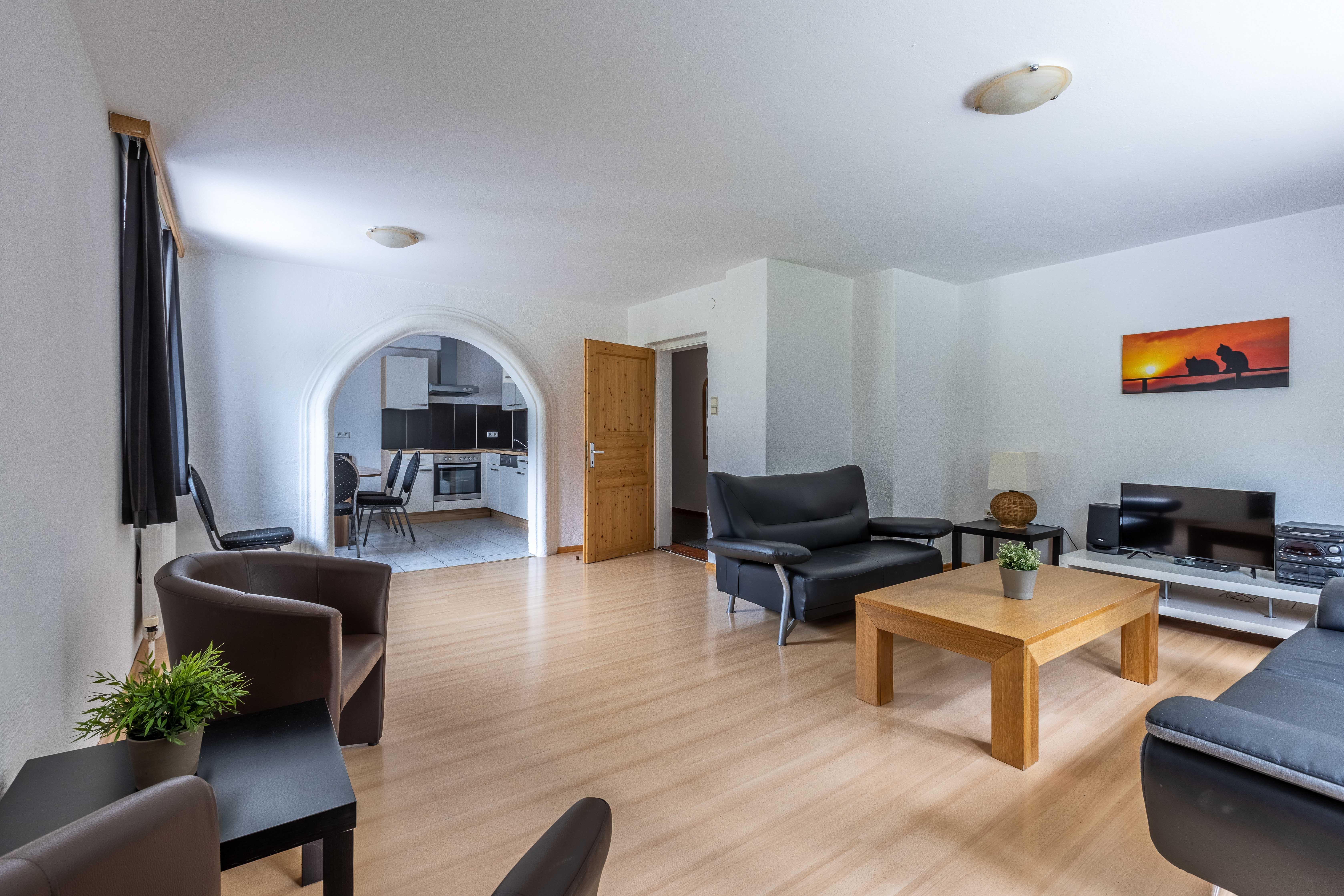 Willkommen im Apartment 13, Deinem perfekten Rückzugsort für einen erholsamen Aufenthalt. Das 102 m² Apartment befindet sich im 2.Stock und bietet 3 gemütliche Schlafzimmer (2x Kingsizebett, 1x Stockbett), Wohnzimmer mit Flat-TV und Sitzgruppe sowie eine voll ausgestatteten Küche. Das Badezimmer verfügt über Dusche. (WC seperat). Genieße den Komfort einer eigenen Unterkunft und entspanne in ruhiger Umgebung. Von den Doppelzimmern gelangst Du auf den Balkon mit Waldblick.