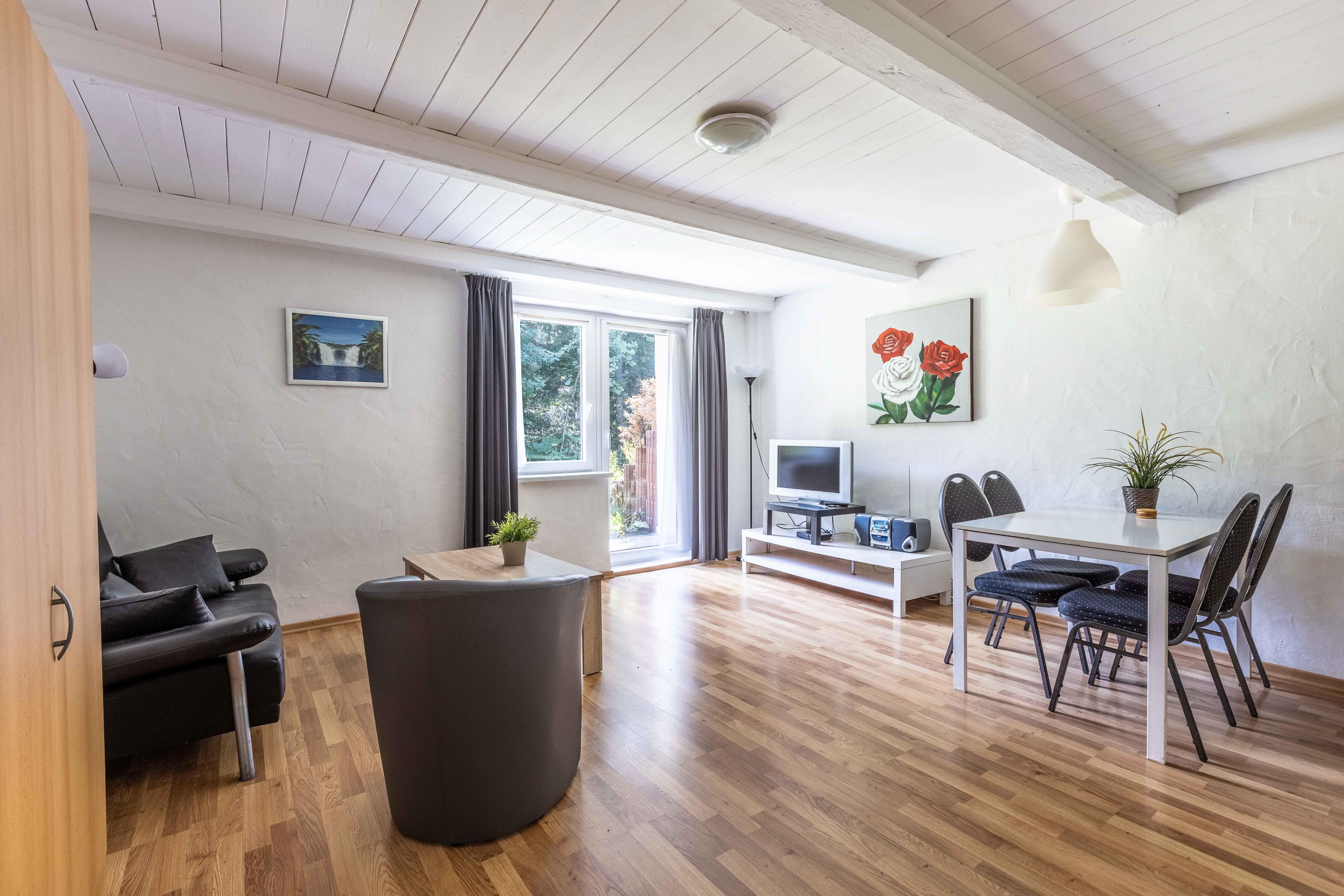 Willkommen im Apartment 9, Deinem perfekten Rückzugsort für einen erholsamen Aufenthalt. Das 36 m² Apartment befindet sich im 1.Stock und bietet ein gemütliches Wohnzimmer mit Flat-TV sowie eine voll ausgestattete Küchenzeile. Das Badezimmer verfügt über Dusche und WC. Genieße den Komfort einer eigenen Unterkunft und entspanne in ruhiger Umgebung. Vom Wohnzimmer gelangst Du auf die Terrasse mit Waldblick.