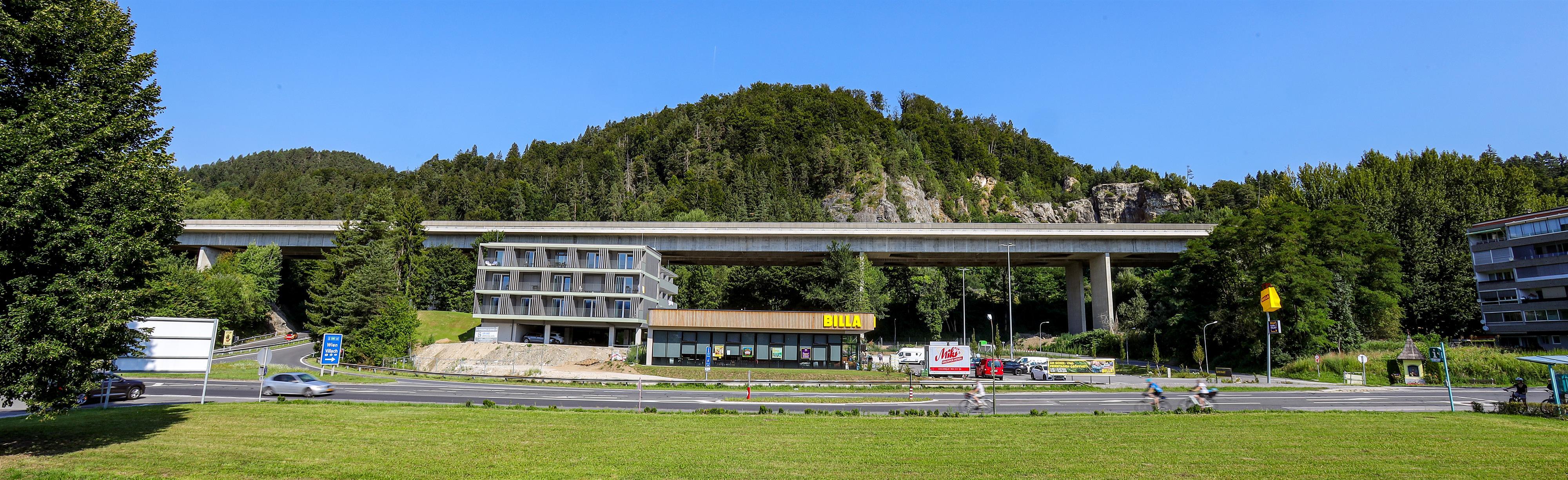 Es sind hinter dem Gebäude ausreichend kostenlose Parkplätze vorhanden. Es kann zum Be- & Entladen vor das Gebäude gefahren werden. Ein zusätzlicher Vorteil ist der direkt nebenan gelegene Supermarkt Billa.