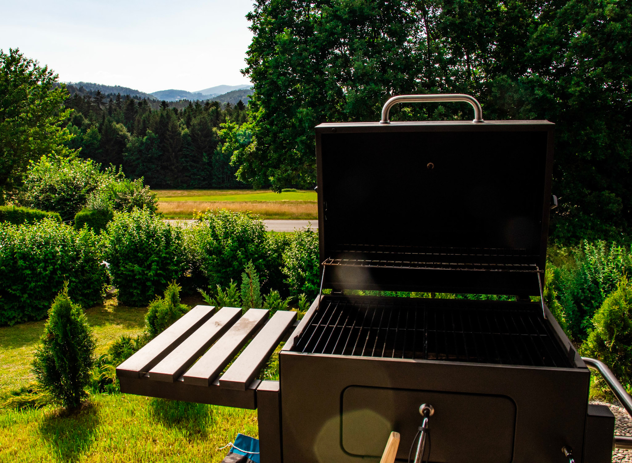 Große überdachte Sonnenterasse (eingezäunt)mit Sitzgarnitur und Garten mit Blick auf das romantische Ilztal und die umliegenden Berge laden zum Sonnenbaden oder Frühstücken im freien ein. An warmen Sommerabenden lässt sich der wunderschöne Sonnenuntergang mit einem Glas Wein auf der Terrasse genießen. Kleiner Kräutergarten und Grill steht Ihnen zu jeder Jahreszeit zur Verfügung.