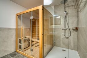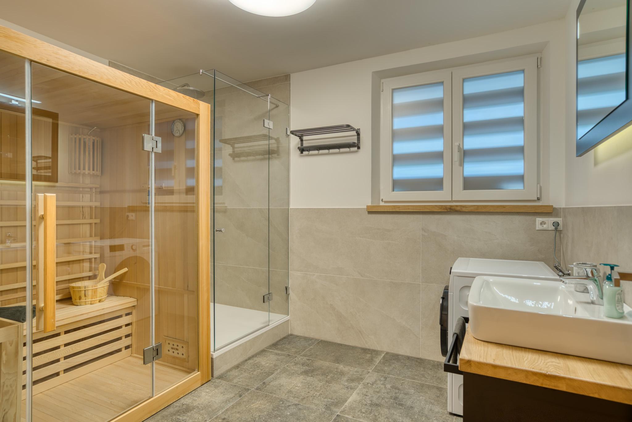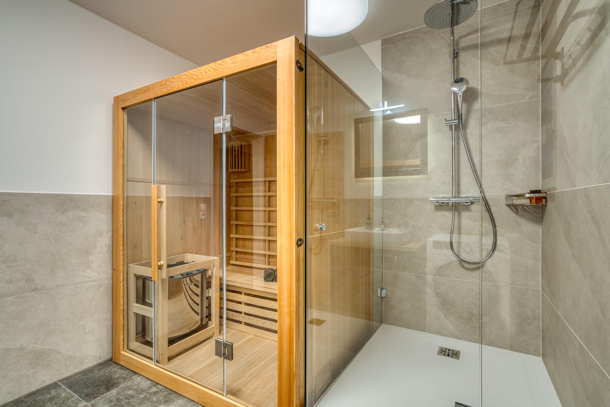 Ein wahres Highlight stellt die private Sauna im Badezimmer dar. Nach einem ereignisreichen Tag lässt es sich hier so richtig entspannen.