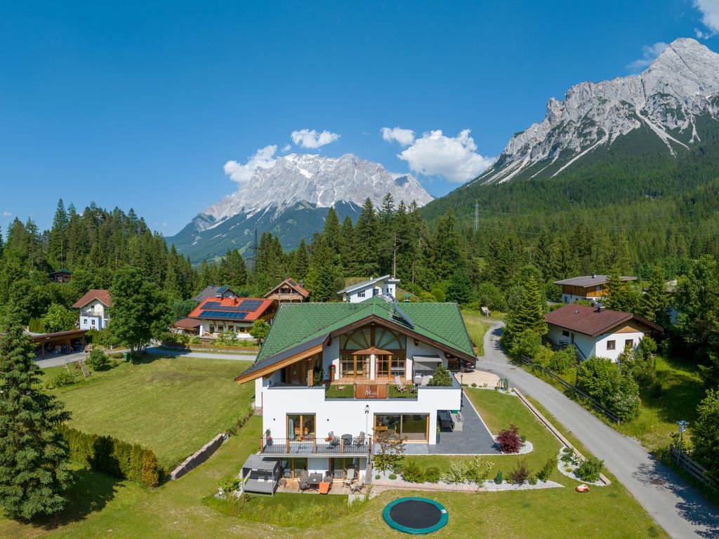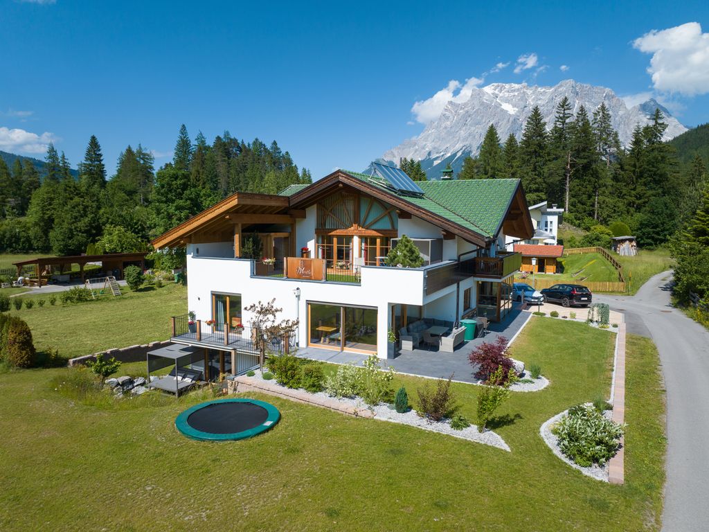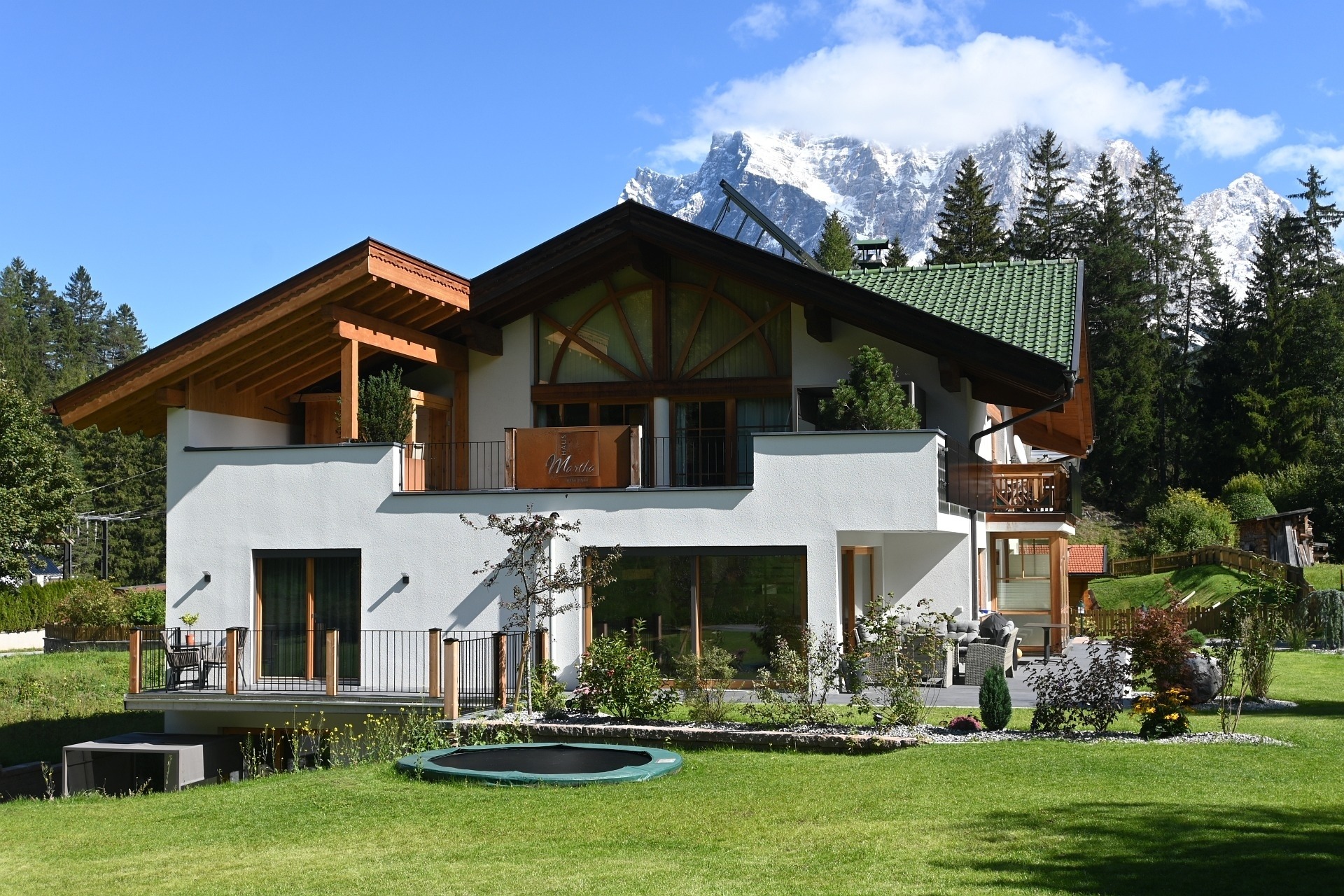 - sonnendurchflutete Wohnräume mit 4m hohen Panoramafenstern (App. Zugspitze u. Sonnenspitze)