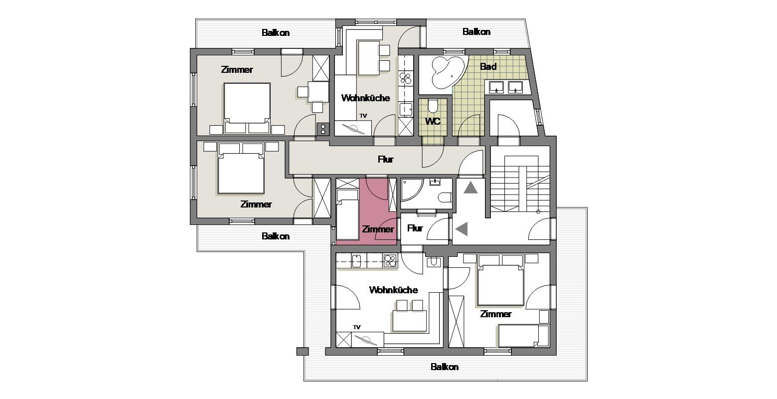 Wohnung Buschwindröschen mit 2 Doppelzimmer , Kinderbett dazustellen ist möglich, 1 Einzelzimmer, Wohnküche mit Geschirrspüler, Kaffeemaschine, Kühlschrank mit Gefriermöglichkeit, Toaster, Wasserkocher, Geschirr, Gläser, Besteck, Sat-TV, Eckbank mit Tisch und Sessel, Kinderhochstuhl, Badezimmer mit Doppelwaschbecken, Wickeltisch, Haarfön, Kosmetikspiegel, WC extra, WLAN, Balkon auf Ost - und Westseite.