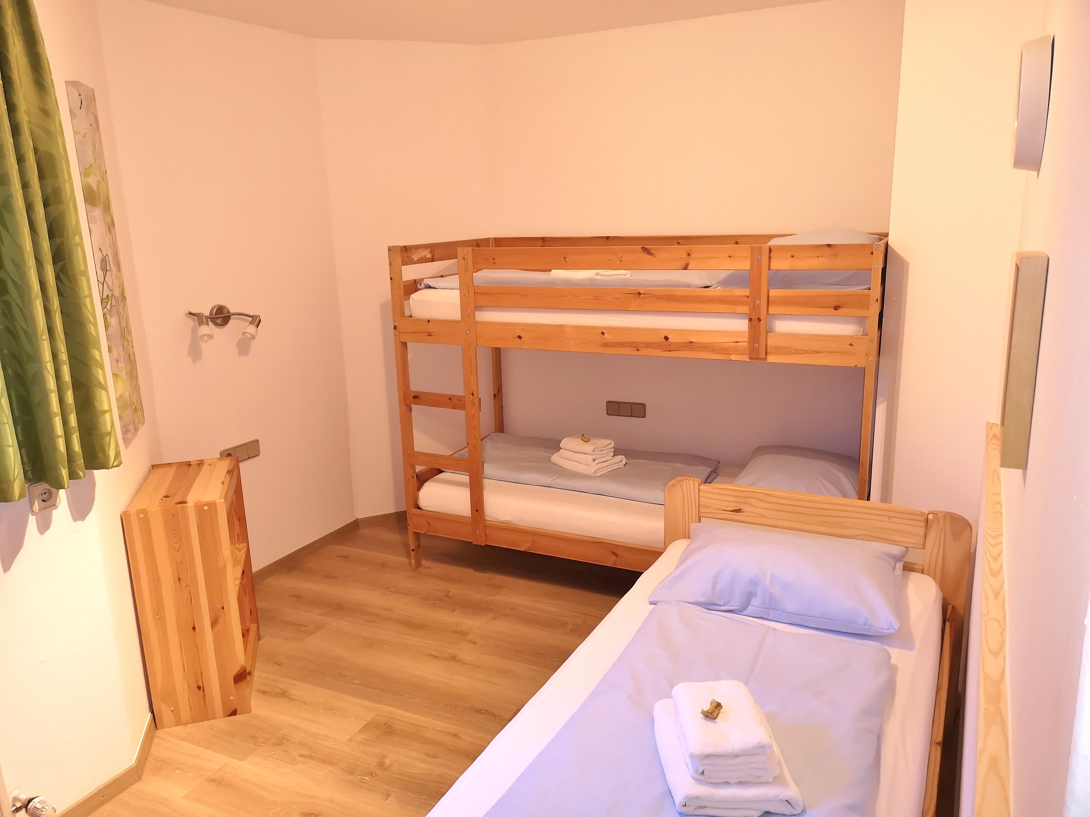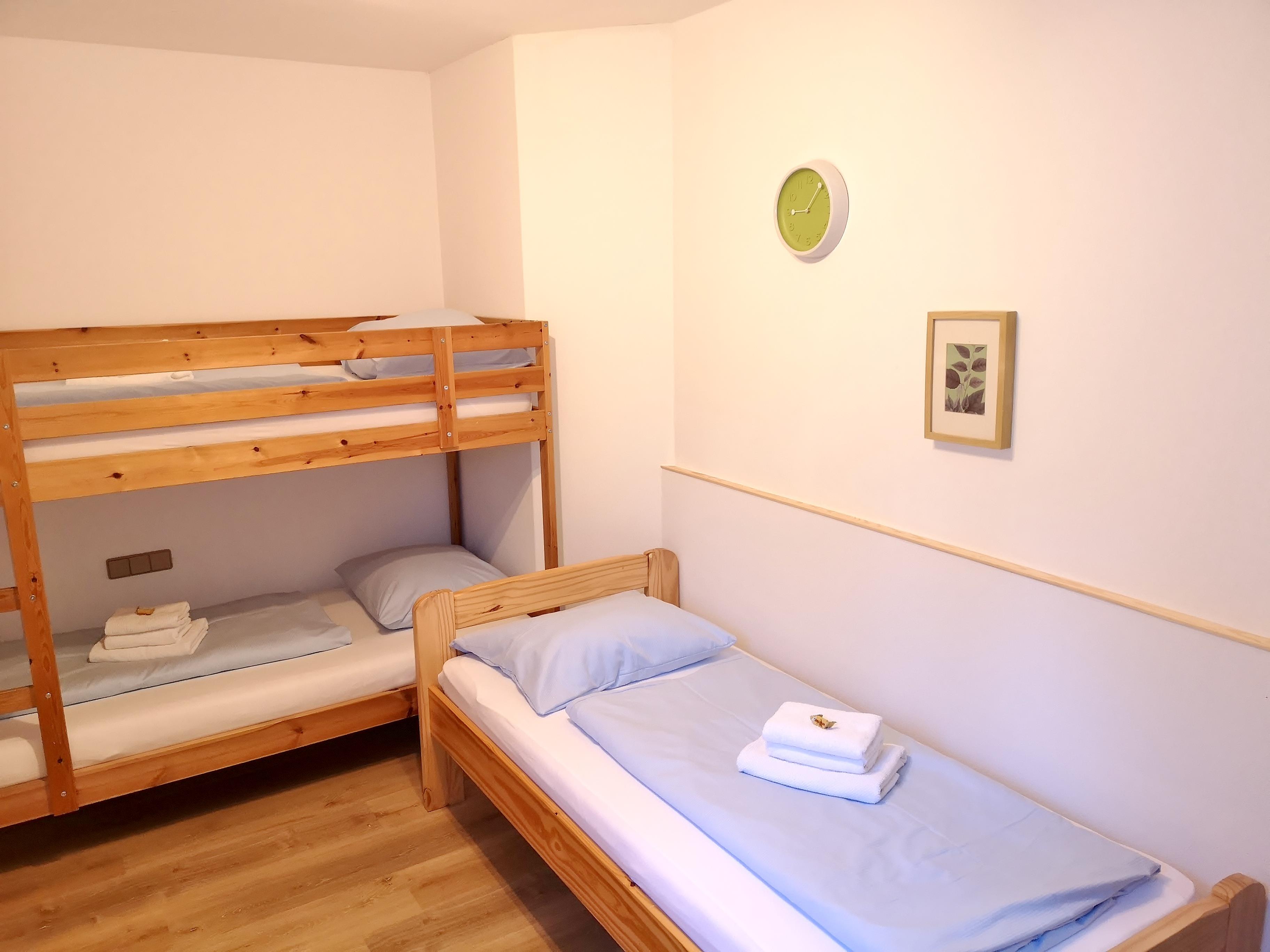 1 x Schlafzimmer mit Doppelbett und Einzelbett