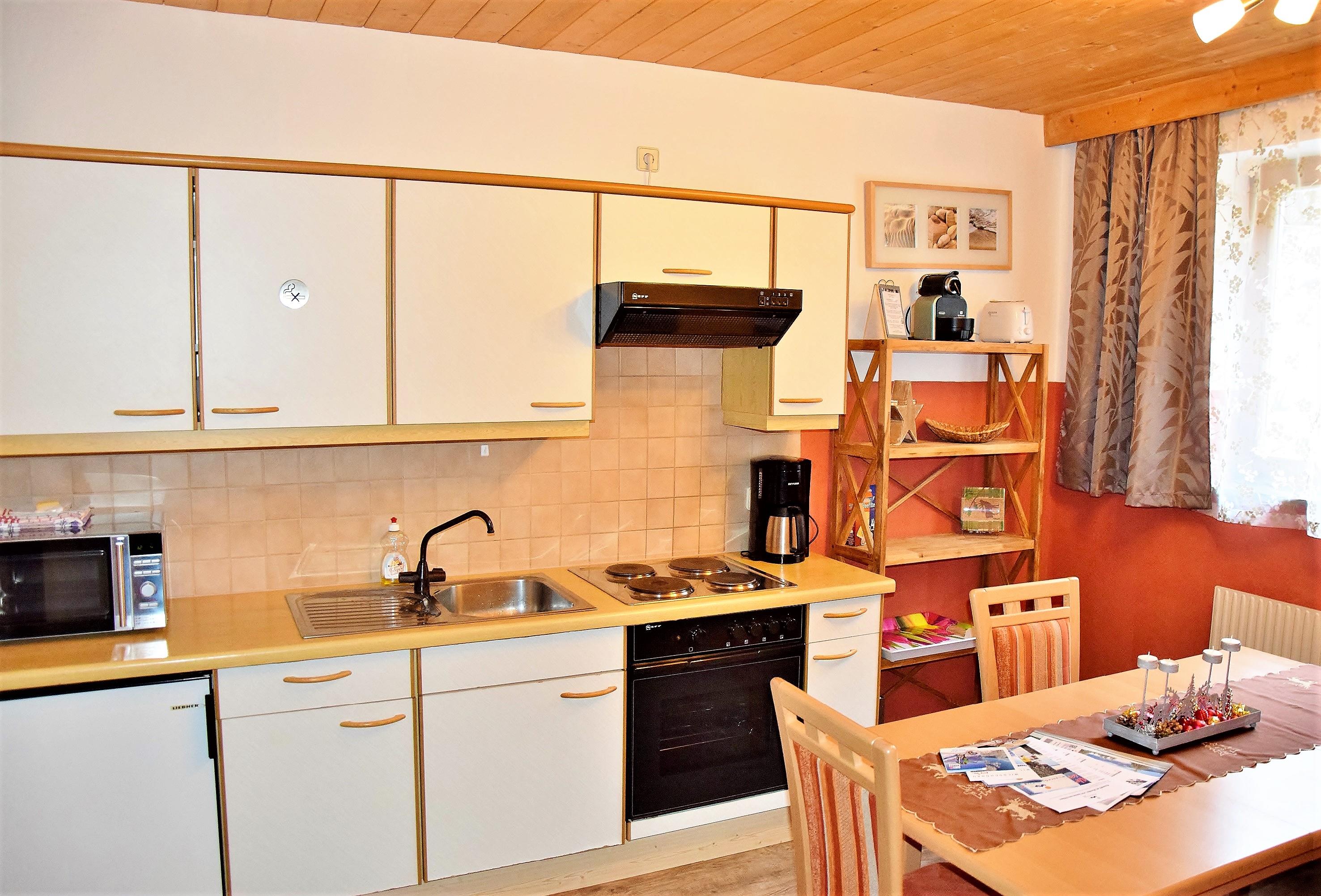 Es stehen Ihnen komfortable ausgestattete Wohnungen zur Verfügung. Bäder mit Dusche und WC, Sat-TV schöne Wohnküchen mit Sitzgarnituren (Elektroherd, Backrohr, Kaffeemaschine, Mikrowelle, Kühlschrank mit Gefrierfach,), genügend Parkplätze sowie sehr großzügige Balkone. Vor dem Haus findet man eine Gartenlaube mit Grillmöglichkeit wo man herrliche Sommerabende genießen kann. Im Keller gibt es eine Gästewaschmaschine und einen Wäschetrockner sowie Platz für Skischuhe und Ski. Gerne stellen wir Ihnen ein Baby-Reisebett, Leih-Kinderwagen sowie einen Hochstuhl zur Verfügung.