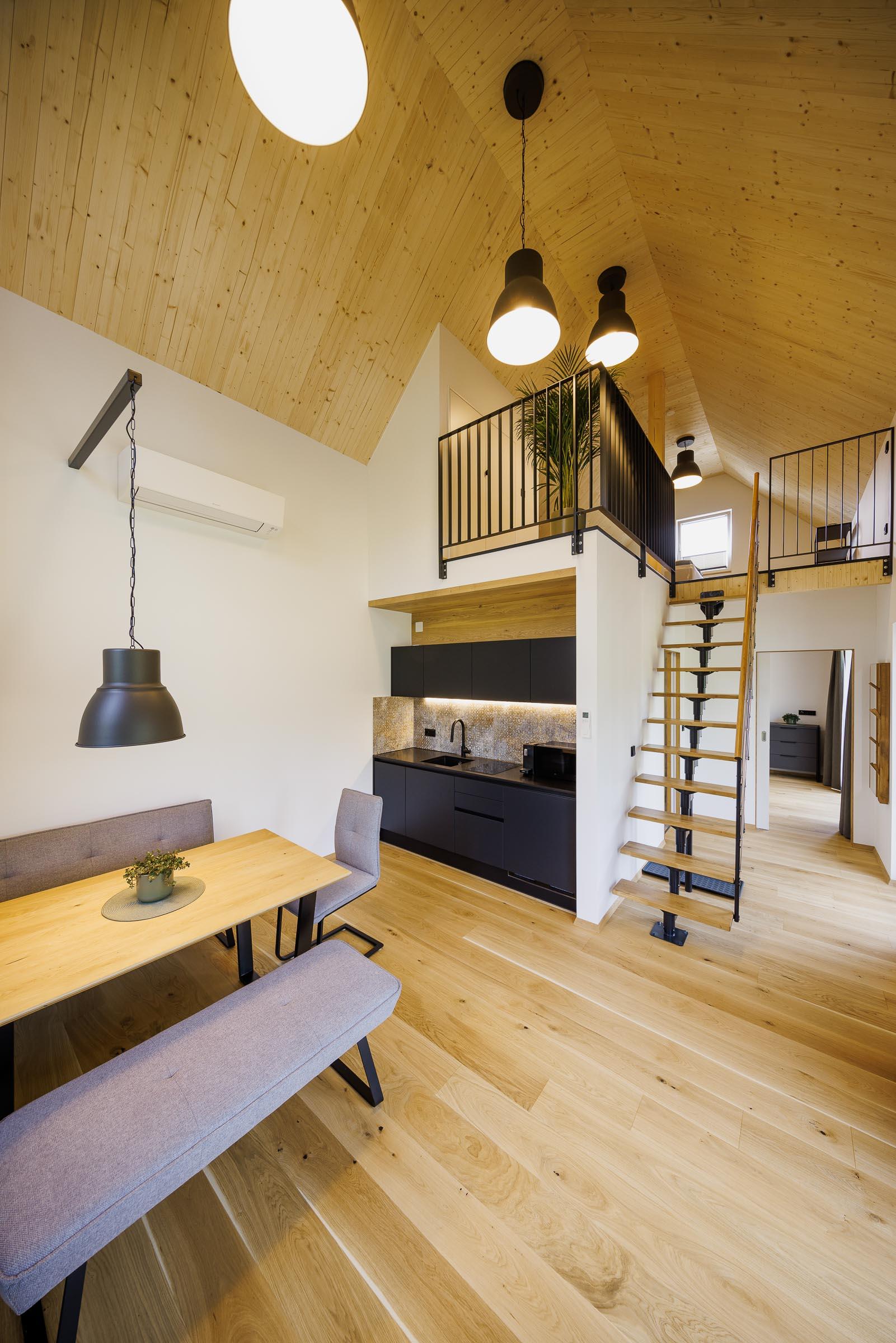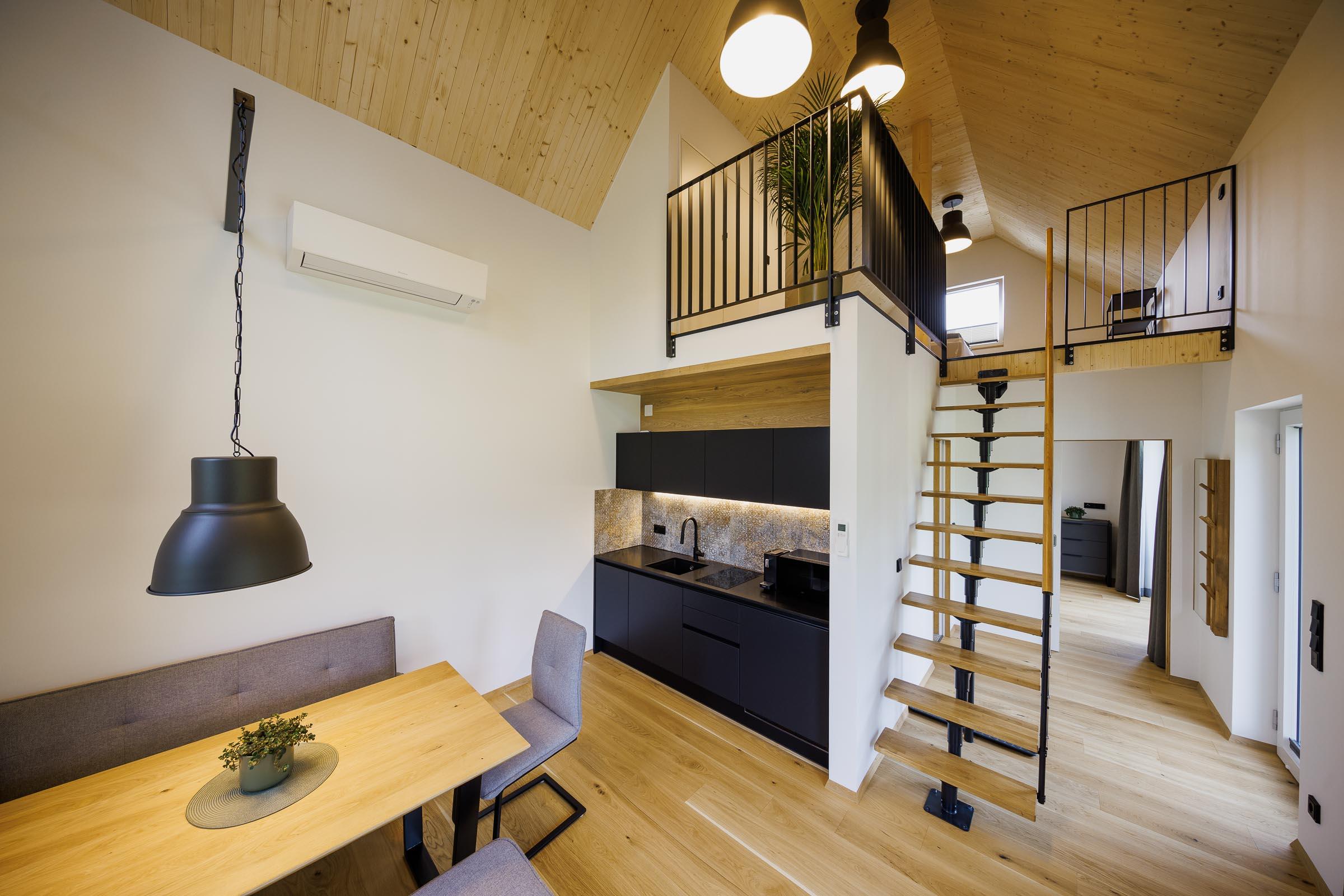Das Loft hat 2 Schlafräume mit Boxspringbetten, ein Bad mit WC, eine gut ausgestattete Küche, einen Wohnraum mit Kaminofen und Smart-TV, eine Klimaanlage, eine große Terrasse, einen Obstgarten mit Grillplatz, einen Radabstellplatz mit E-Bike-Lademöglichkeit, einen Weinkeller und vieles mehr.