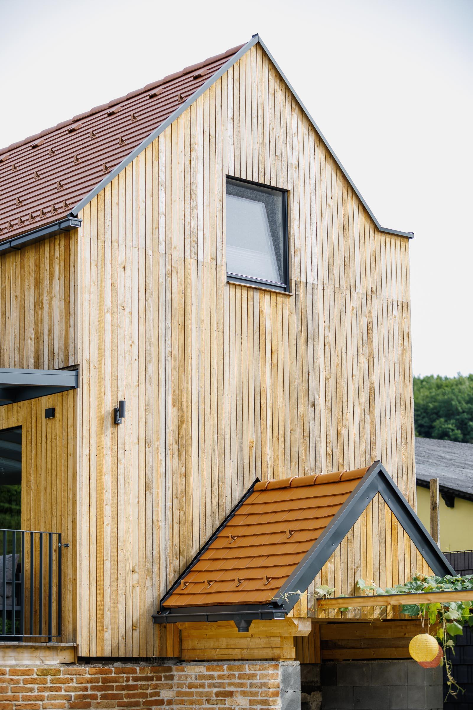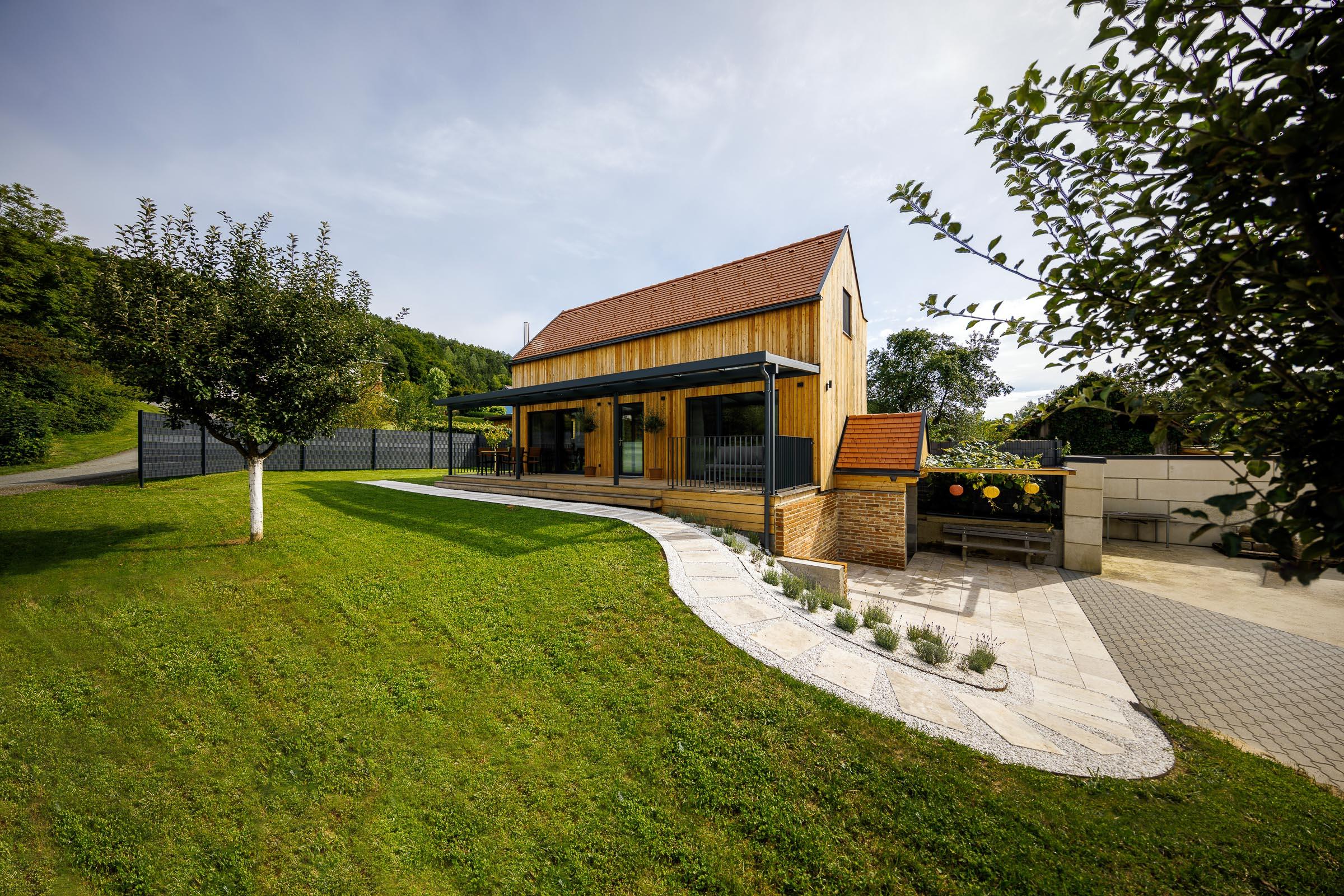 Der alte Erdkeller blieb als Weinkeller und Lagerraum erhalten. Der Geschossaufbau wurde durch einen Holzriegelbau ersetzt.