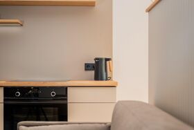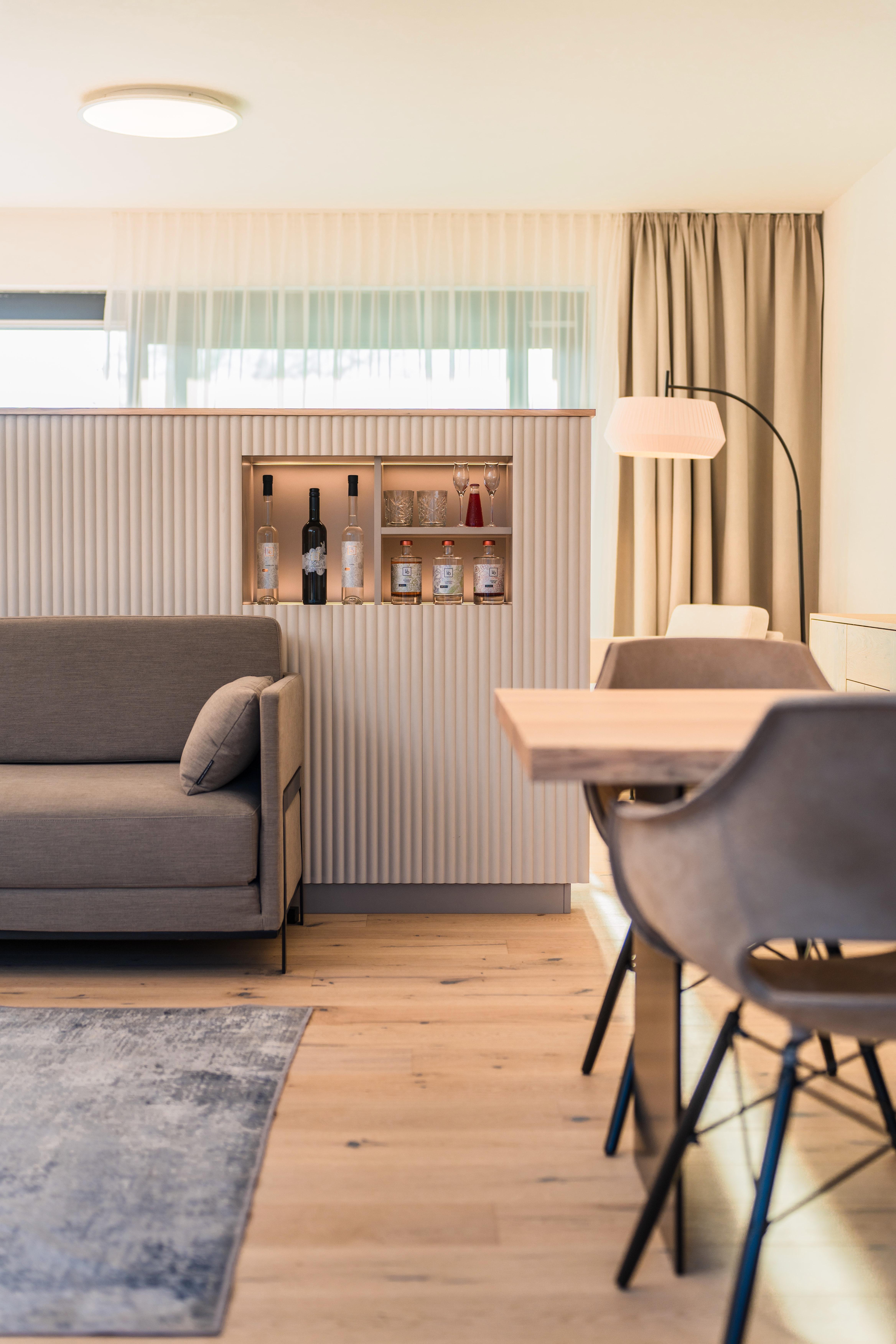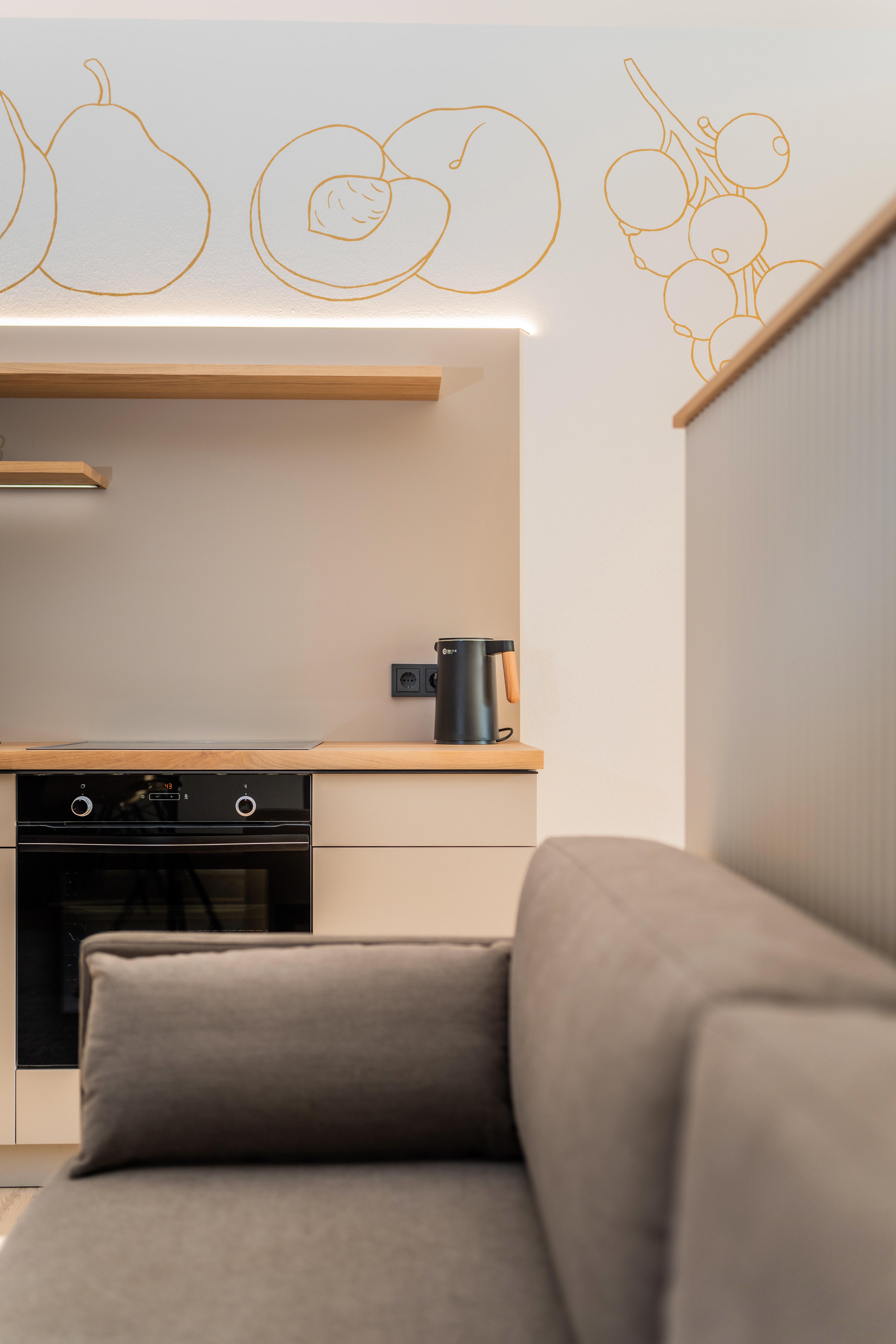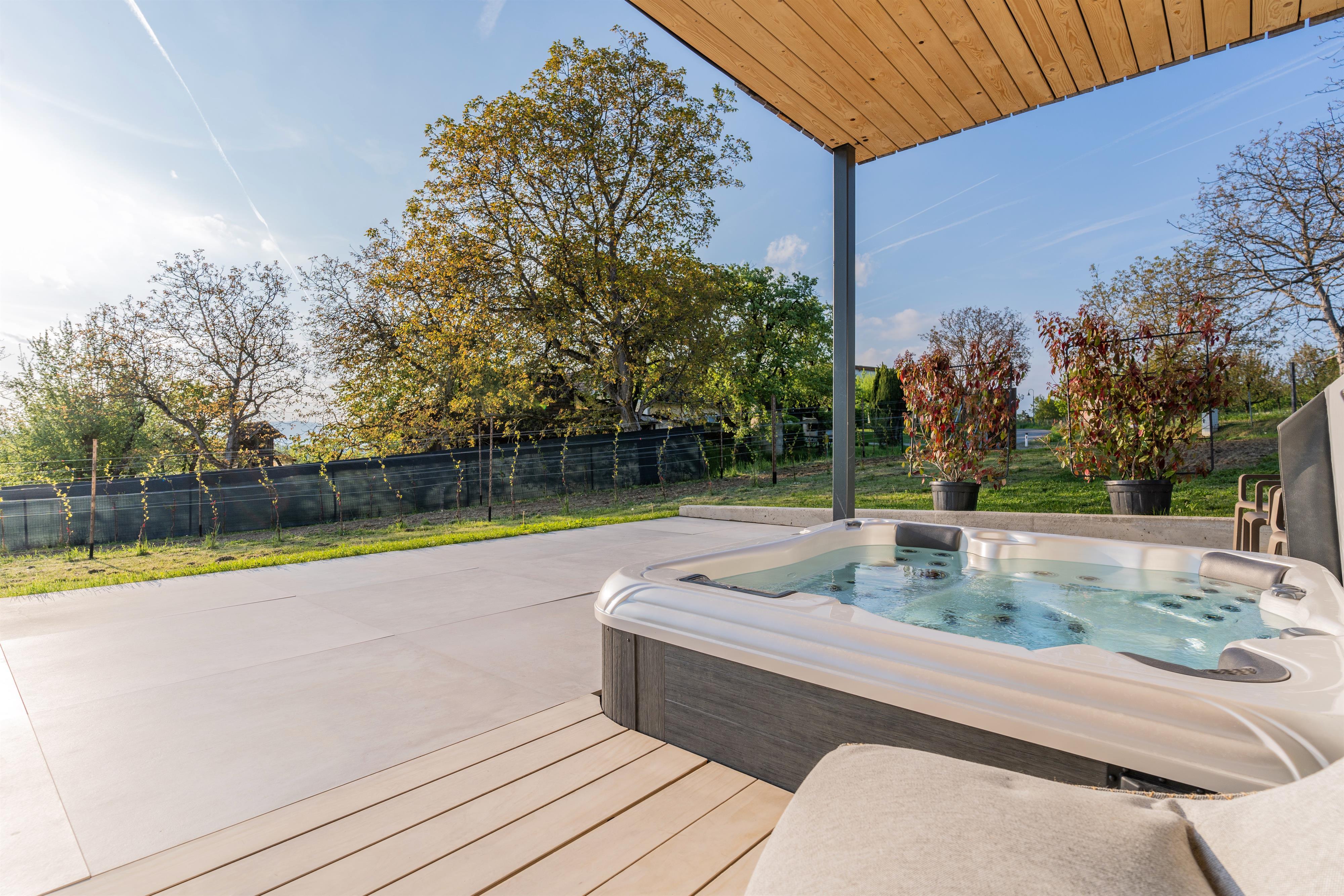 Barrierefreies Apartment, ca. 62 m2 mit Küchenzeile, Kühlschrank, Kaffeemaschine, großzügiges Badezimmer, Fernseher, ausziehbares Sofa, Boxspring-Doppelbett, großzügige Terrasse (ca 36 m2) mit Liegen, Gartenmöbeln und Whirlpool mit Blick in den Weingarten