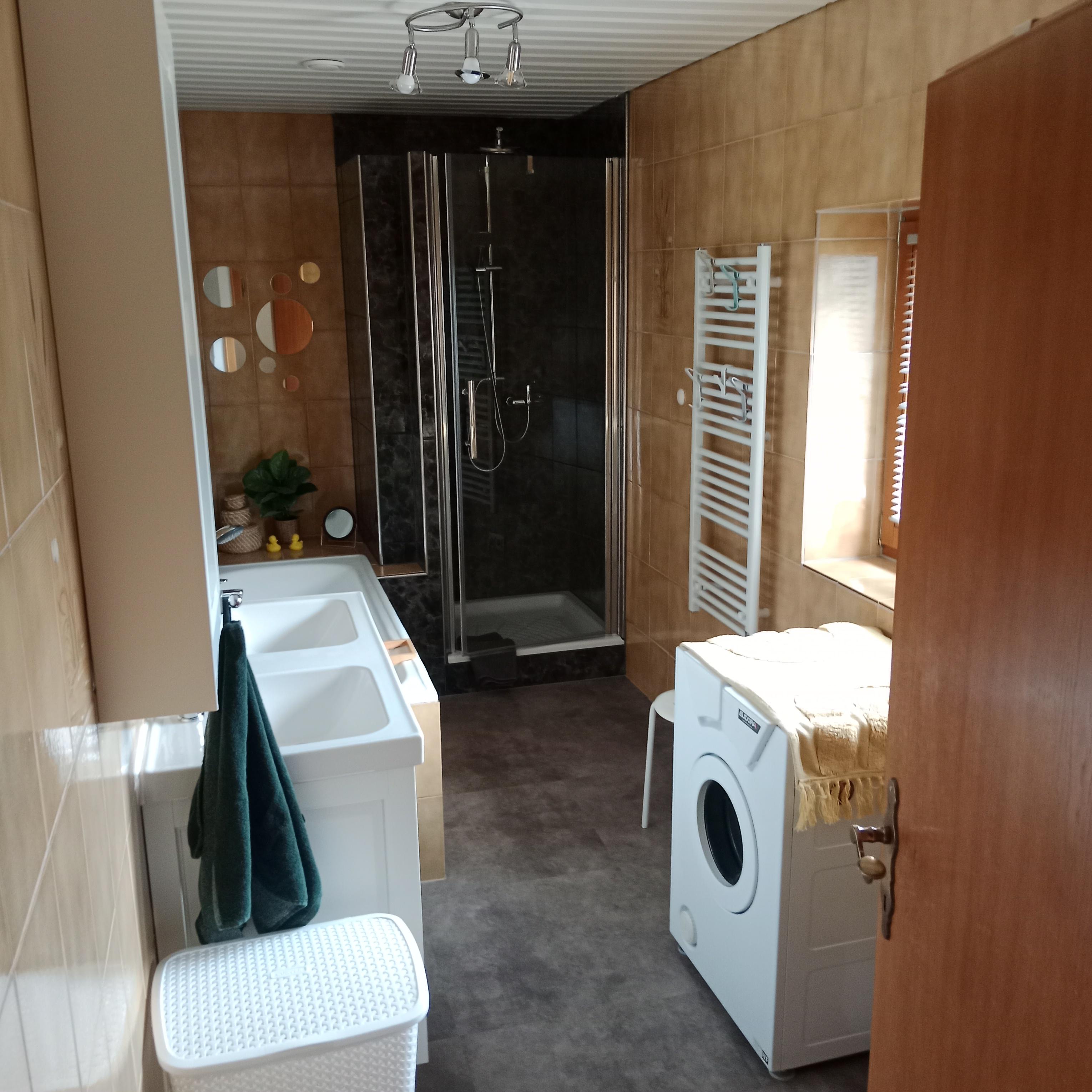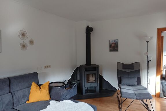 Die 105m² große Wohnung befindet im 2. Stock und ist über eine Außentreppe mit eigenen Eingang erreichbar. Nach einem sportlichen Aufgang wird man mit einem herrlichen Panoramablick auf die Tiroler Bergwelt belohnt. Sie bietet drei Schlafzimmer (ein Doppelbettzimmer (180x200 cm) sowie eines mit zwei Einzelbetten (à 90x200 cm). Ein weiteres Schlafzimmer mit einem Doppelbett (180x200 cm). Bis zu 2 Babybettchen sind nach Rückspräche verfügbar. Küche mit Kühlschrank mit Gefrierfach, Geschirrspüler, Herd mit Backofen, Mikrowelle, Wasserkocher, Filterkaffeemaschine, Toaster, Eierkocher, Mixer, Soda Streamer. Wohnzimmer mit Sat-TV, Couch, Relaxsessel, Kamin. Möblierter Balkon, Infrarotsauna zur Alleinnutzung.