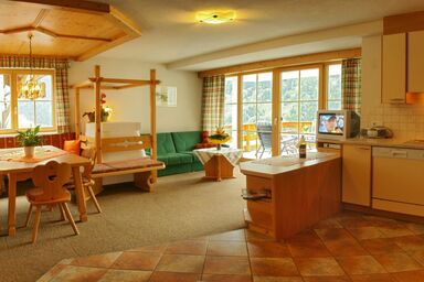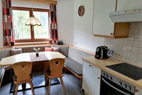 In der Küche befindet sich ein Herd mit Backrohr, ein Geschirrspüler, das übliche Geschirr, ein Kühlschrank mit Gefrierfach, eine Kaffeemaschine, ein Toaster sowie ein Wasserkocher. Ebenfalls in der Wohnküche befindet sich eine gemütliche, große Sitzecke mit Blick zum Flachbild-Fernseher mit SAT-TV.