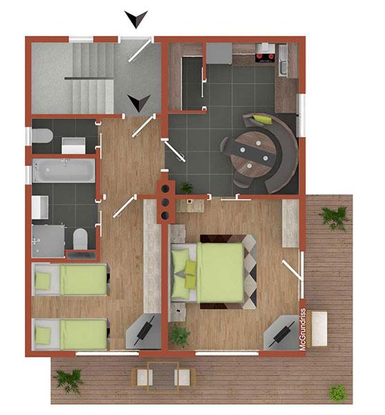 Das Ferienhaus verfügt über zwei Ferienwohnungen mit je ca. 50m2. Die Ferienwohnung im Erdgeschoss verfügt über ein Doppelbettzimmer mit funktionierendem Kachelofen, einem Einbettzimmer, ein Bad mit WC und einer Badewanne, ein Gäste WC und eine Küche. Von den Zimmern gelangt man direkt auf den Balkon, wo der schöne Ausblick in das Dorf genossen werden kann. Eine Parkmöglichkeit für das Auto ist unmittelbar vor dem Haus gegeben. Im ersten Stock befindet sich die zweite Ferienwohnung mit ebenfalls ca. 50m2. Diese Ferienwohnung ist mit zwei Doppelbettzimmern mit Balkon ( Schlafcouch), einem Bad mit Badewanne und WC, einem Gäste WC, einer Küche ausgestattet. Natürlich befindet sich in jedem Schlafzimmer ein Fernsehgerät. Auch für Kinder ist das Ferienhaus Gundolf in Arzl im Pitztal hervorragend geeignet. Durch den großen Garten auf der Hinterseite des Hauses.