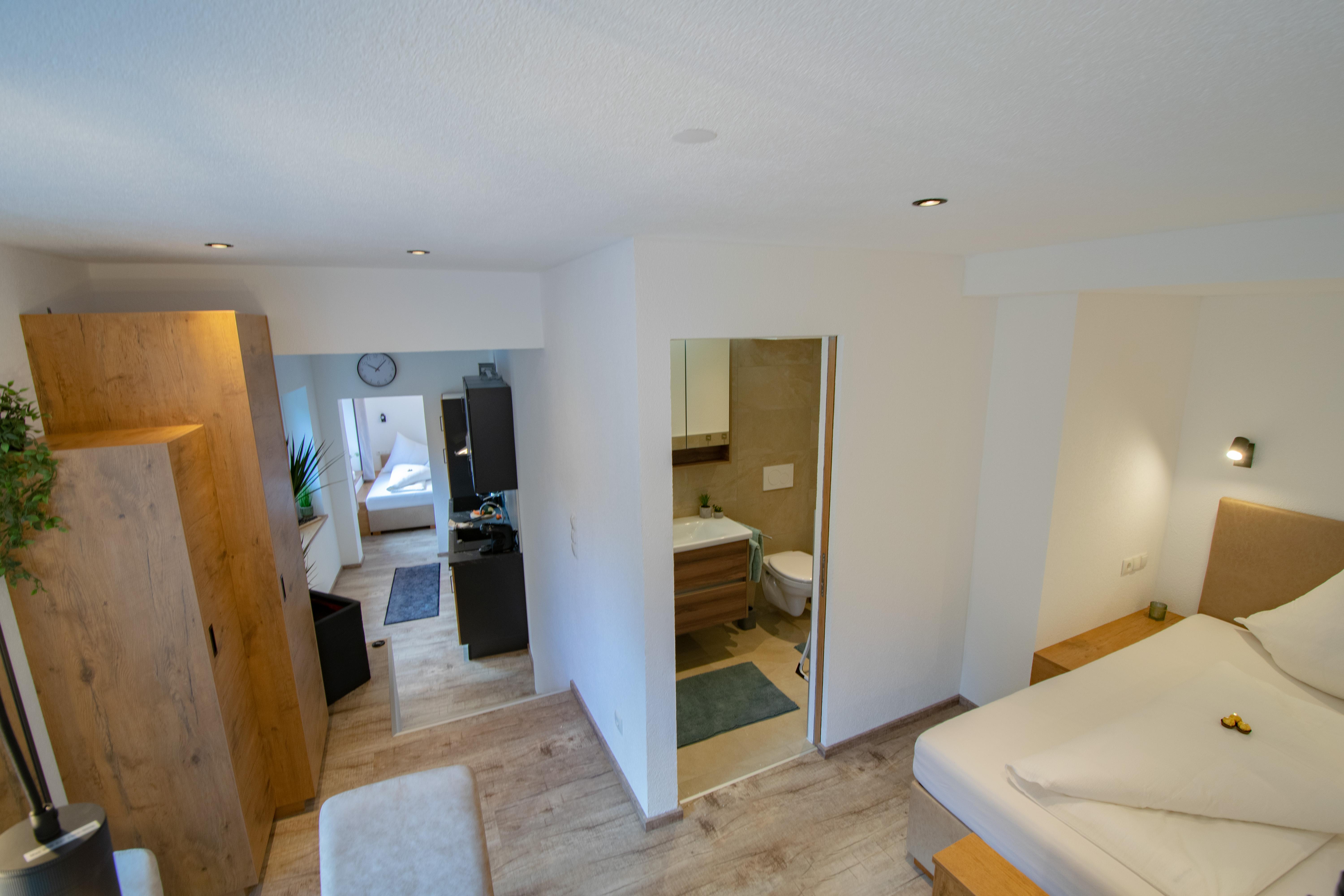 Unser W-Spirit Apartment 3 ist mit 34m2 das größte unserer 3 Apartments und bietet Platz für 4 Personen. Unsere Wohnung 3 verfügt über eine Küche, einen Essbereich, 2 Doppelbetten und ein Badezimmer. Der Essbereich kann durch eine Schiebetüre abgetrennt werden. Kostenloses W-Lan und ein Sat- TV stehen für Sie bereit.