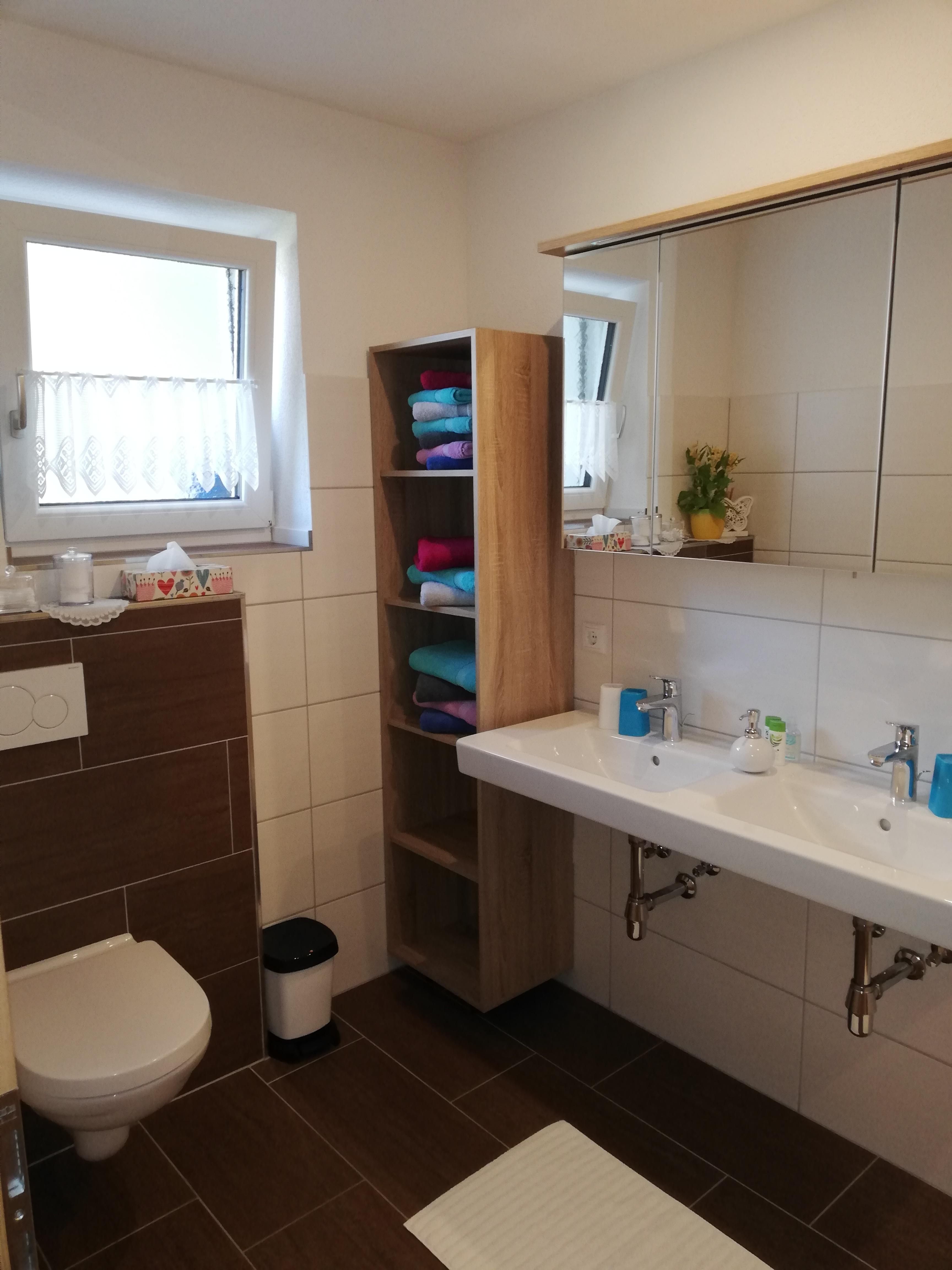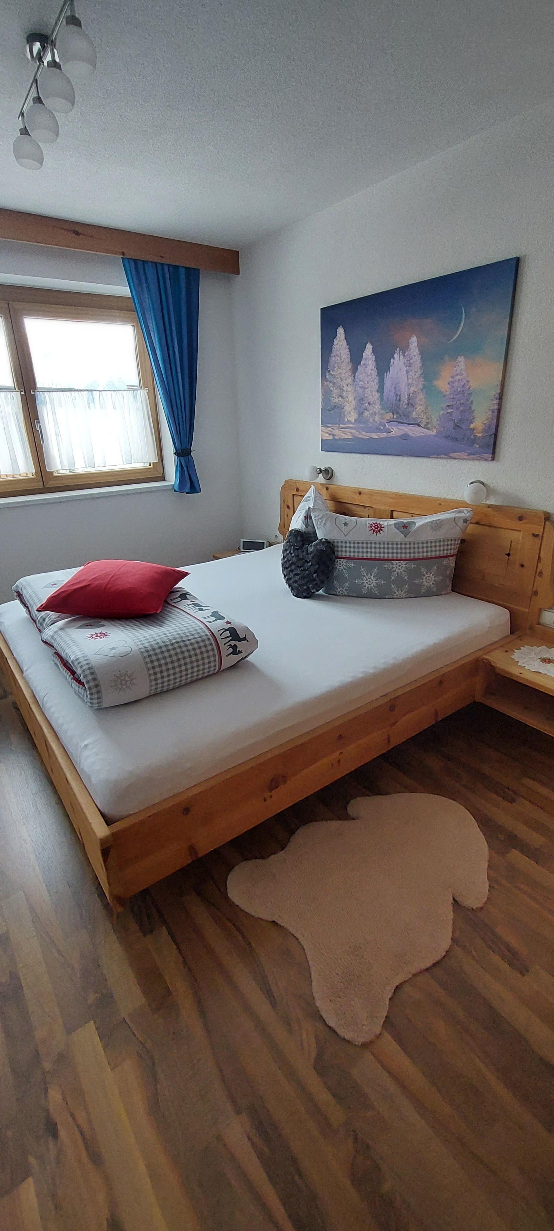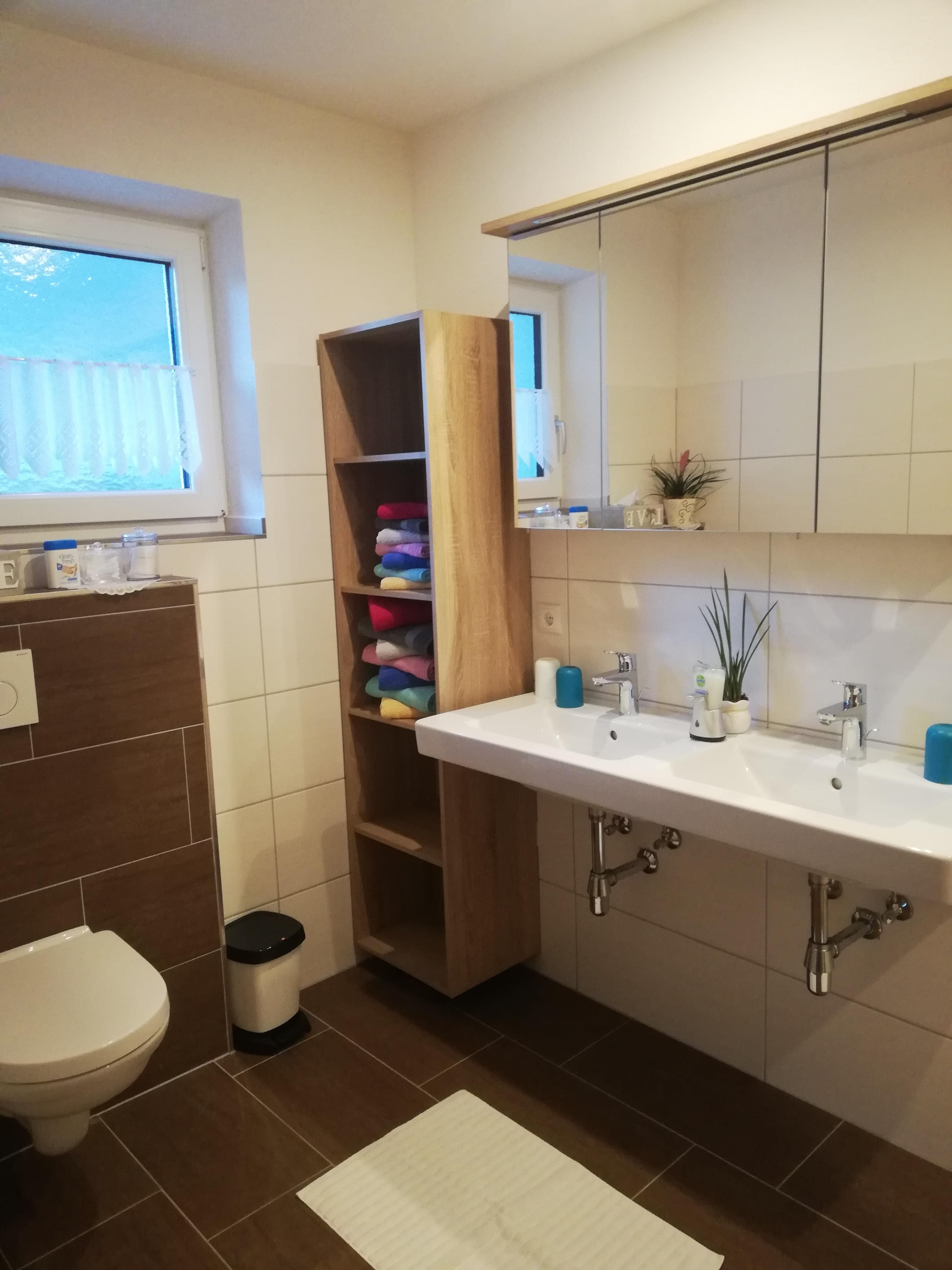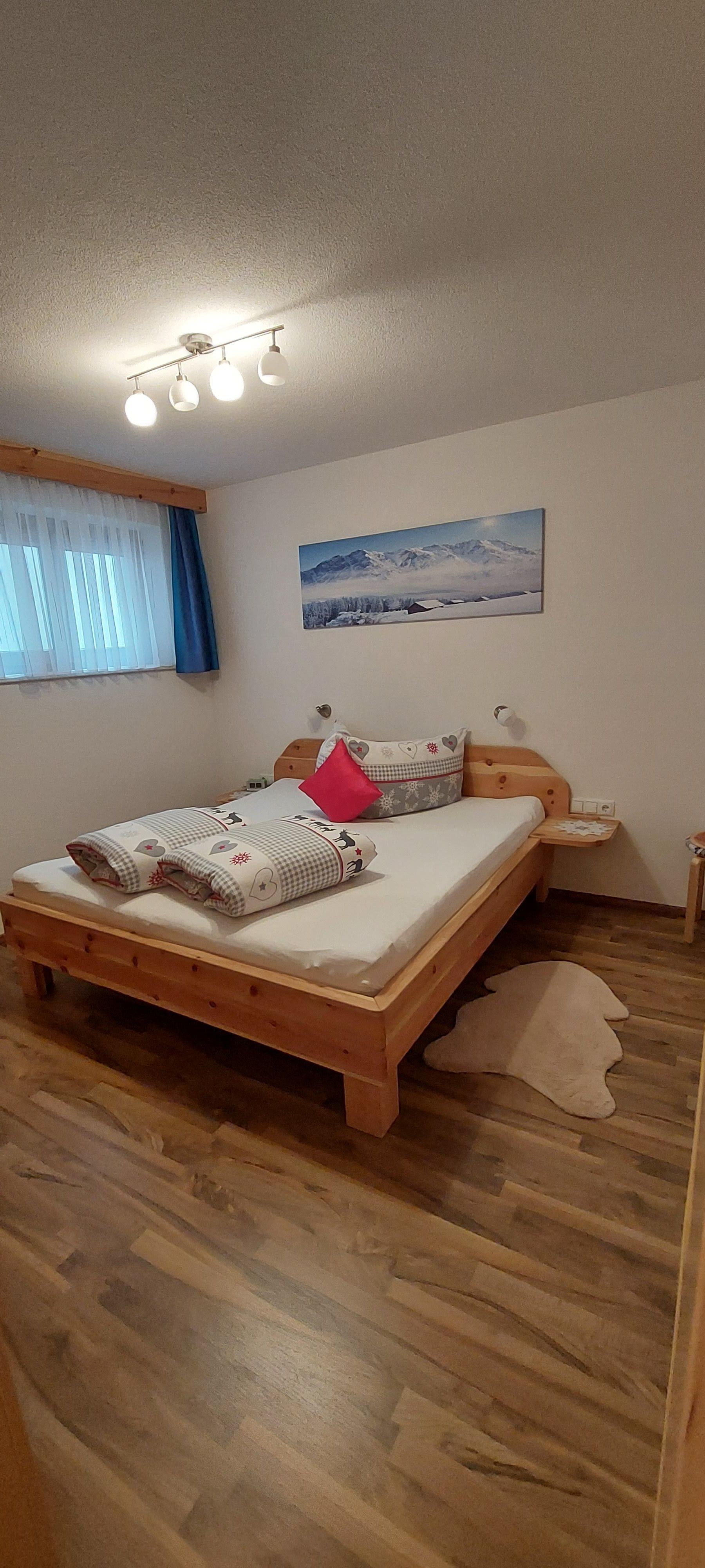 Eigener Eingang zum Apartment und gratis W-LAN/Wifi. Die Küche ist mit einem Küchenblock, vielen Küchenutensilien, (sowie Salz, Pfeffer, Zucker, versch. Tees, Spülmittel, Geschirrspültabs, Spül- und Geschirrtücher, usw.) 4 Platten Herd, Backofen, Dampfabzug, Kühlschrank mit Gefrierfach, Geschirrspüler, Kaffeemaschine, Toaster, Stab und Handmixer, Wasserkocher, großem Tisch mit Eckbank, und einem SAT TV ausgestattet. Unser Brötchenservice von Montag bis Samstag(außer Feiertage) verwöhnt sie mit frischem Gebäck zum Frühstück! Das Wohnzimmer ist mit einem gemütlichen Ecksofa und Tischchen für nette Spielabende, sowie einem großen SAT Fernseher ausgestattet. Das Apart bietet drei separate Vollholz Schlafzimmer. Zwei Zimmer sind mit einer Verbindungstür verbunden. Bad mit Dusche, WC und Doppelwaschbecken, WC extra, Garderobe, Terrasse, Liegewiese.
