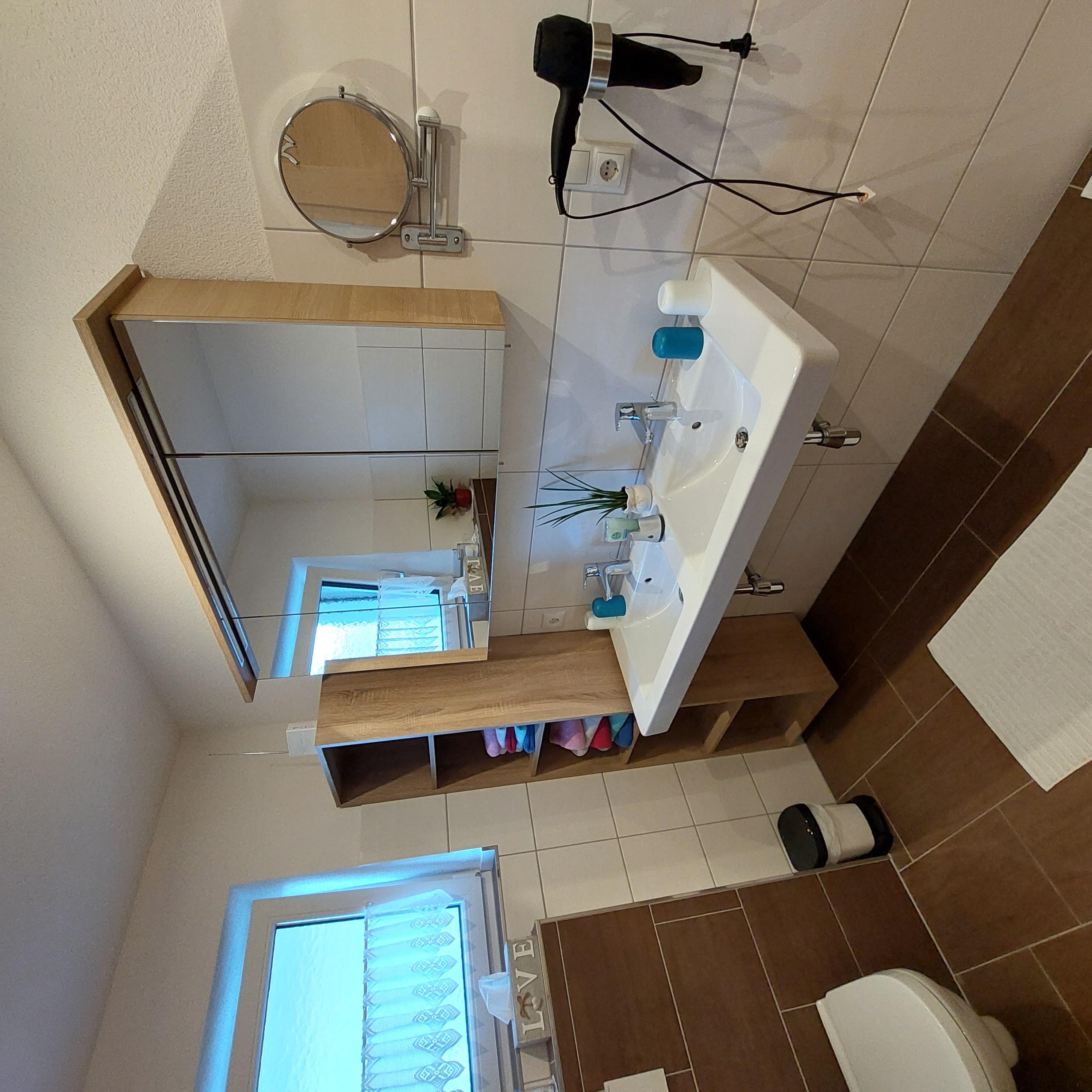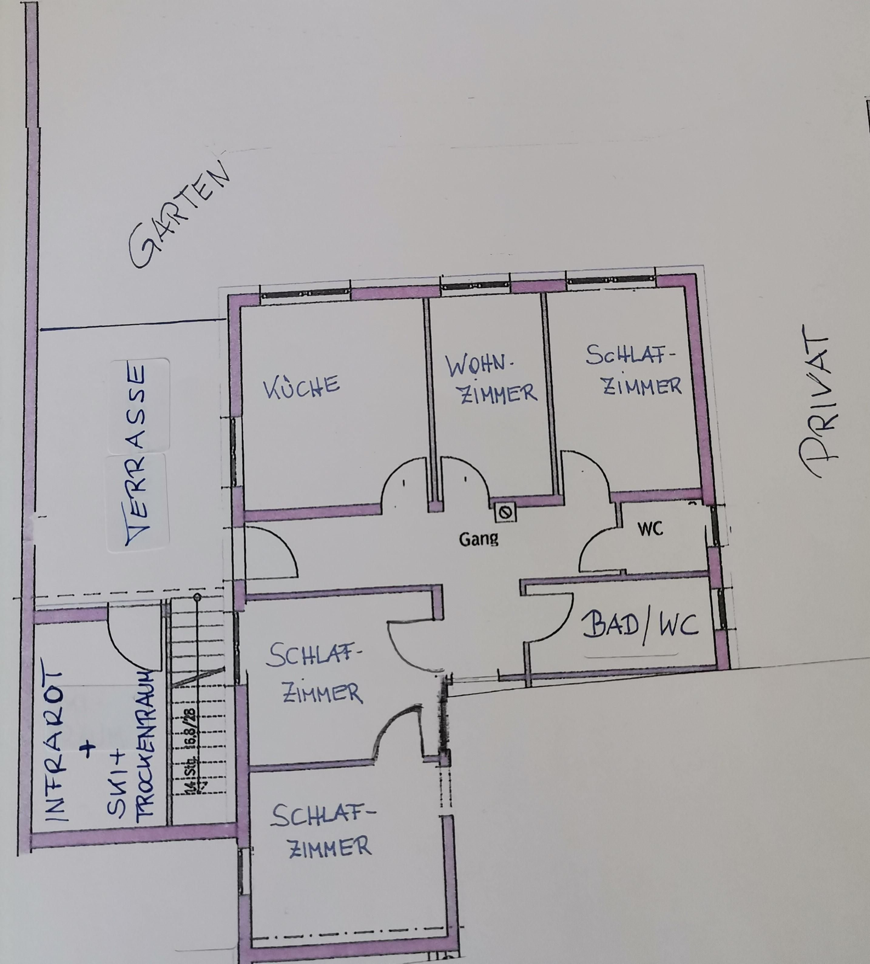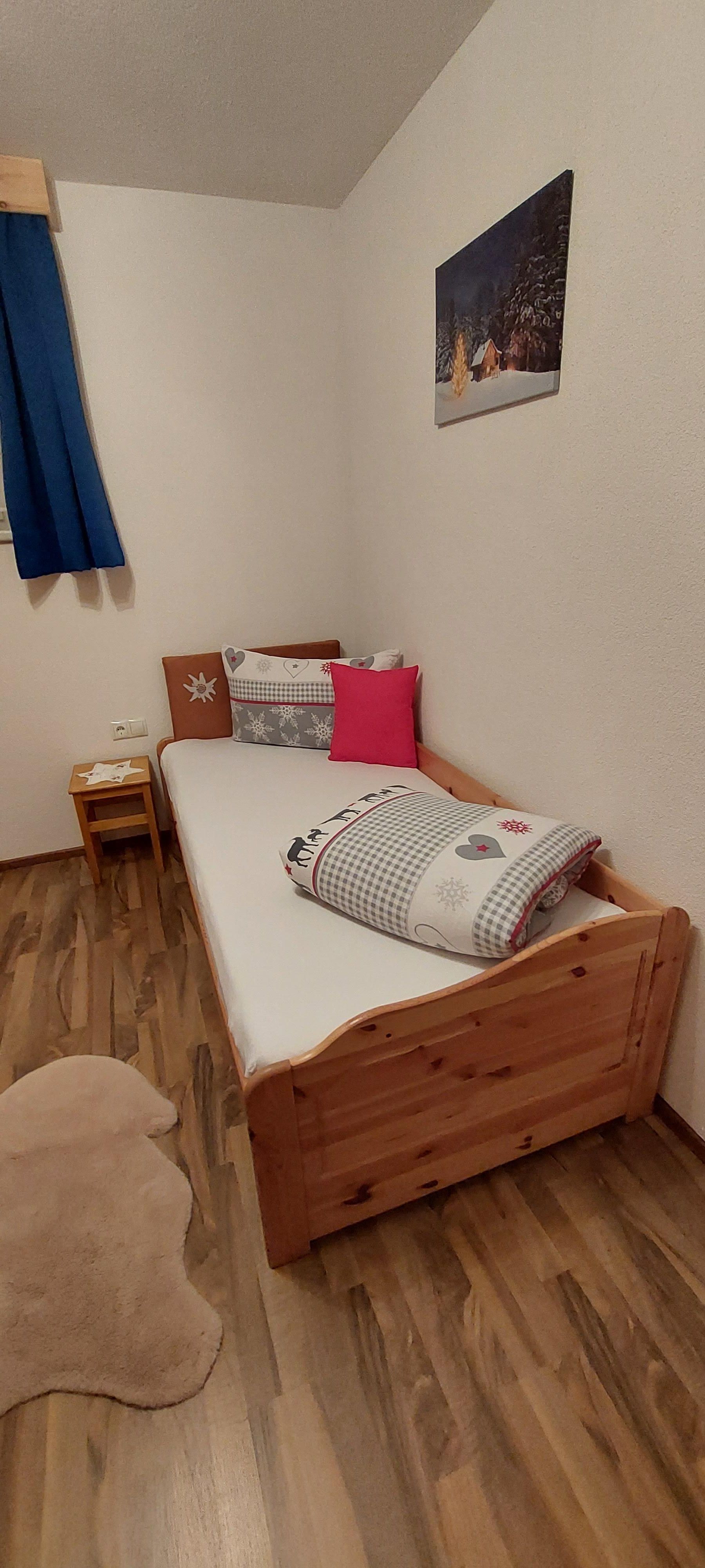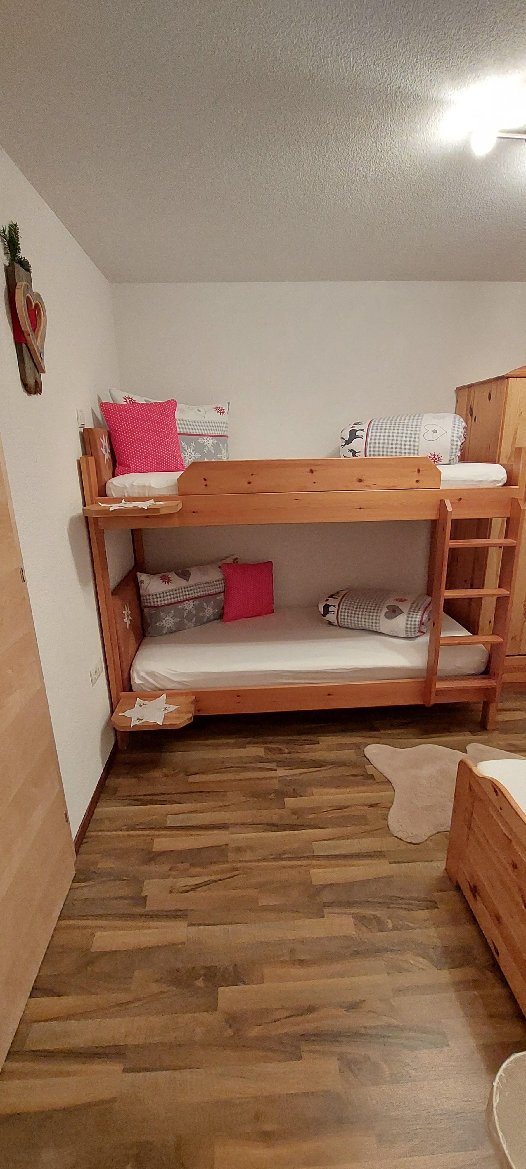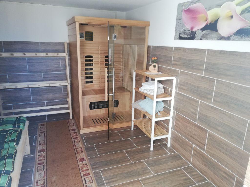 Eigener Eingang zum Apartment und gratis W-LAN/Wifi. Die Küche ist mit einem Küchenblock, vielen Küchenutensilien, (sowie Salz, Pfeffer, Zucker, versch. Tees, Spülmittel, Geschirrspültabs, Spül- und Geschirrtücher, usw.) 4 Platten Herd, Backofen, Dampfabzug, Kühlschrank mit Gefrierfach, Geschirrspüler, Kaffeemaschine, Toaster, Stab und Handmixer, Wasserkocher, großem Tisch mit Eckbank, und einem SAT TV ausgestattet. Unser Brötchenservice von Montag bis Samstag(außer Feiertage) verwöhnt sie mit frischem Gebäck zum Frühstück! Das Wohnzimmer ist mit einem gemütlichen Ecksofa und Tischchen für nette Spielabende, sowie einem großen SAT Fernseher ausgestattet. Das Apart bietet drei separate Vollholz Schlafzimmer. Zwei Zimmer sind mit einer Verbindungstür verbunden. Bad mit Dusche, WC und Doppelwaschbecken, WC extra, Garderobe, Terrasse, Liegewiese.