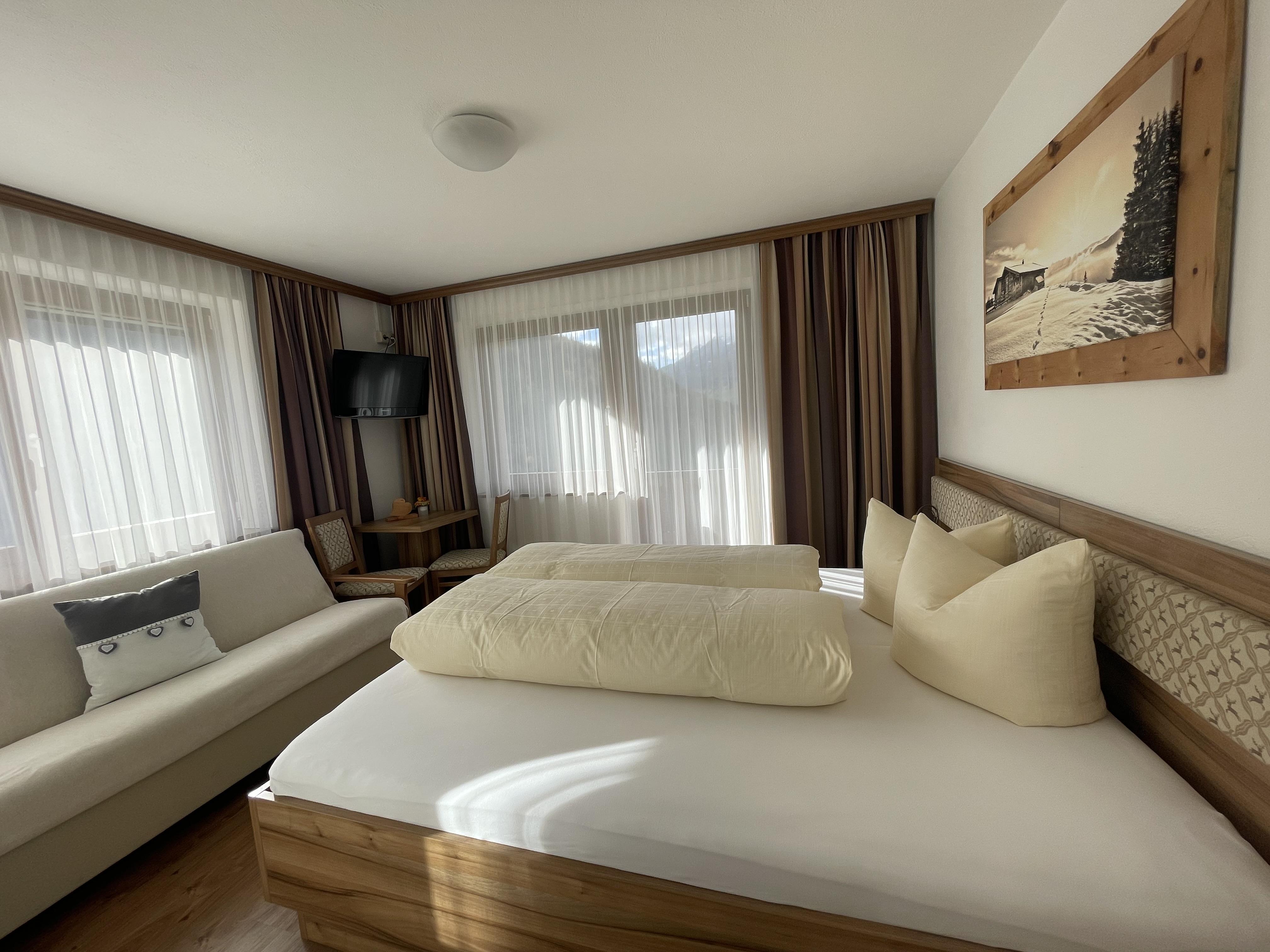 Gepflegtes Haus in ruhiger und aussichtsreicher Lage, ideal auch für Kinder. Neu renovierte und gemütlich eingerichtete Zimmer mit Dusche/WC, SAT-TV und Balkon.Genießen Sie Ihren Urlaub in familiärer Atmosphäre.Im Winter bietet das Skigebiet Hochzeiger tolle Abfahrten und eine Rodelbahn, die auch abends beleuchtet ist und zum Nachtrodeln einlädt. Service unserer Hauses ist unser kostenloses Ski- u. Schuhdepot an der Talstation.Somit brauchen Sie Ihre Skiausrüstung nicht mehr schleppen.Unser Haus liegt sonnig und ruhig. Sie haben von unseren Zimmern einen wunderschönen Ausblick.Lassen Sie sich von unserem reichhaltigen Frühstück verwöhnen. Zusätzlich steht Ihnen eine Gästeküche mit Kühlschrank zur Verfügung und entspannen können Sie sich in unserer Sauna.Sie werden bei uns sicher schöne und erholsame Tage verbringen, was uns auch die vielen Stammgäste immer wieder bestätigen.Kinderermäßigung: bis 5 Jahre 100%, ab 6 Jahre 30 %