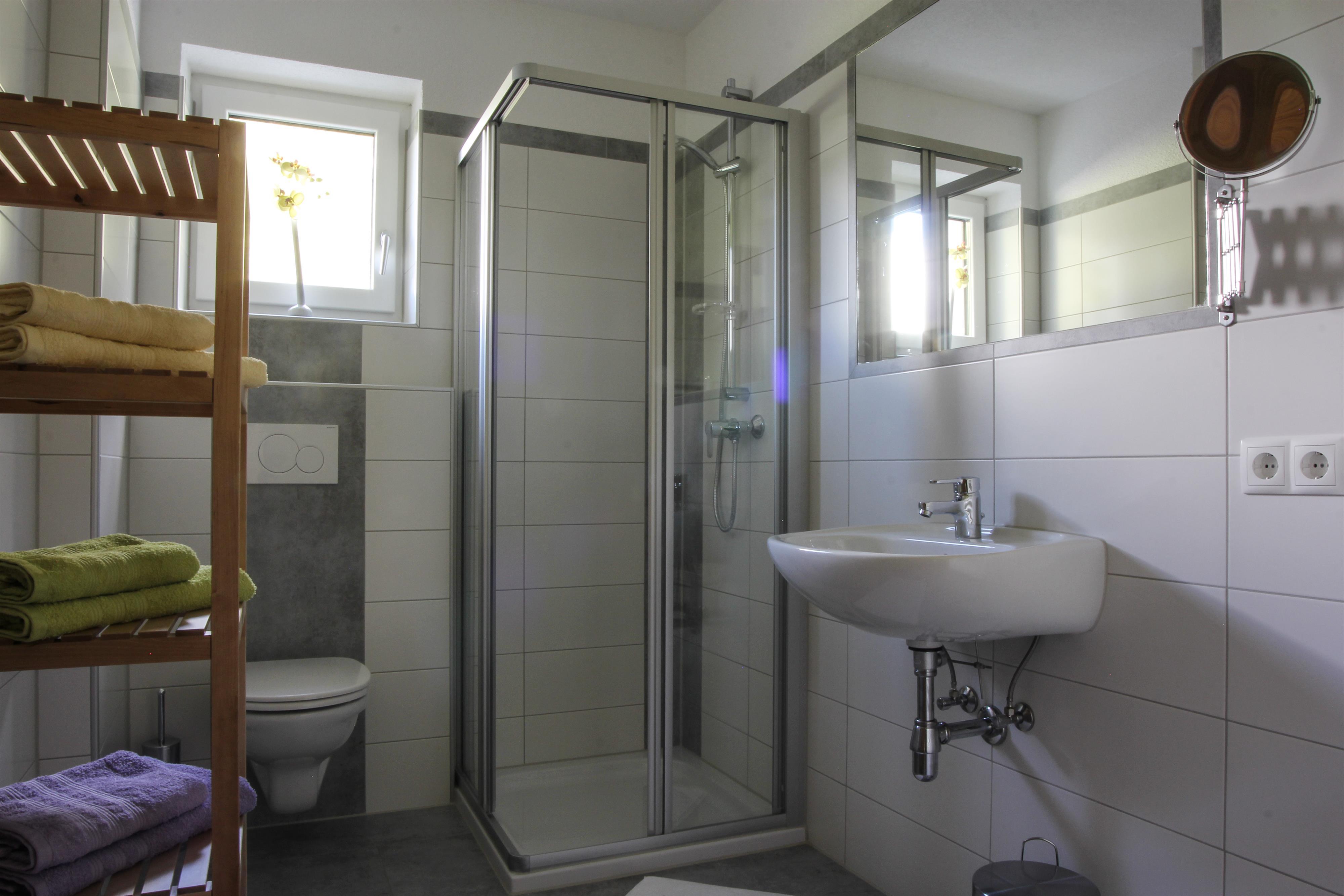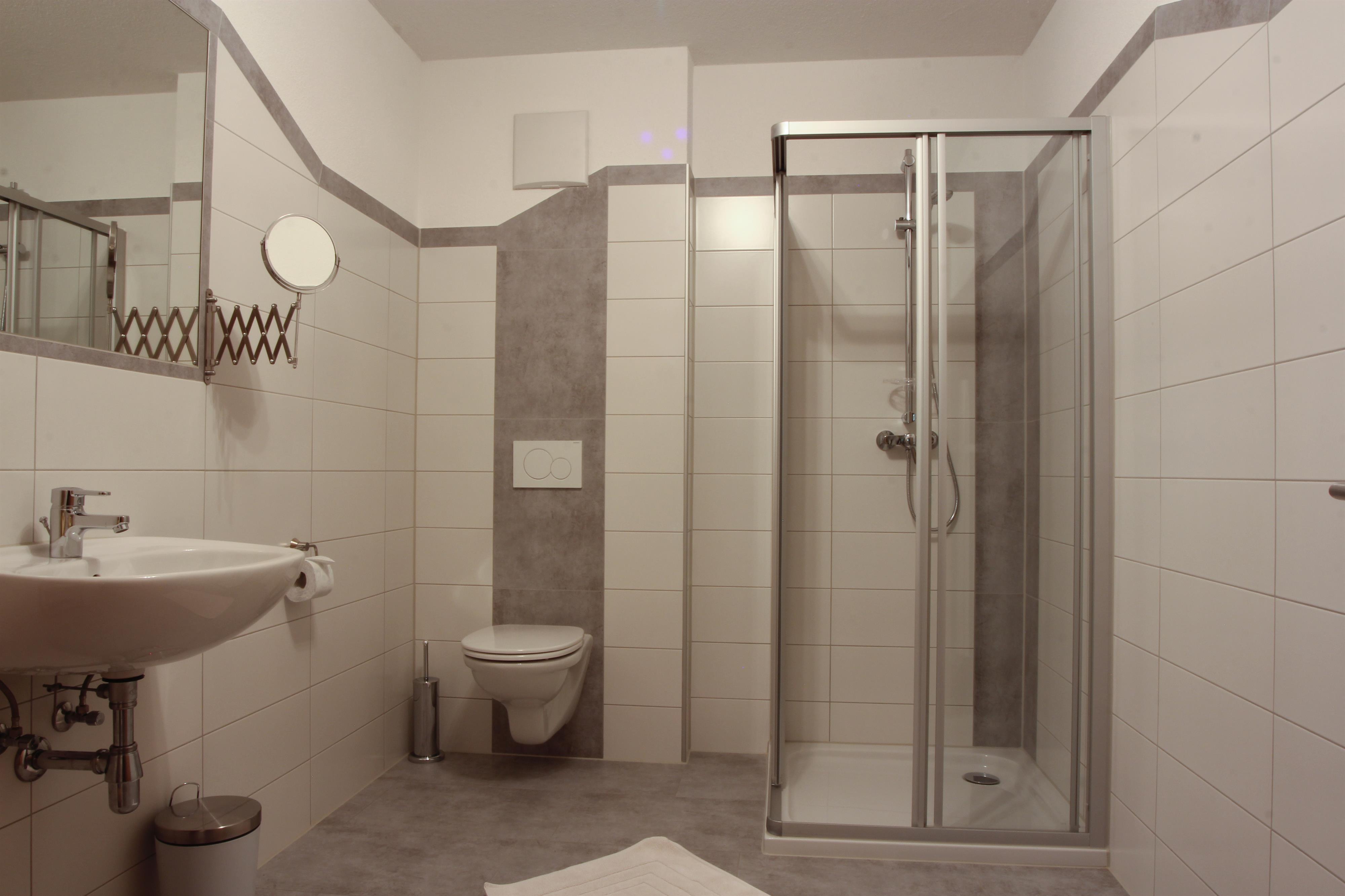 • 2 geräumige Badezimmer mit Dusche/WC (Toilettenpapier vorhanden), Hand- und Duschtücher, Föhn