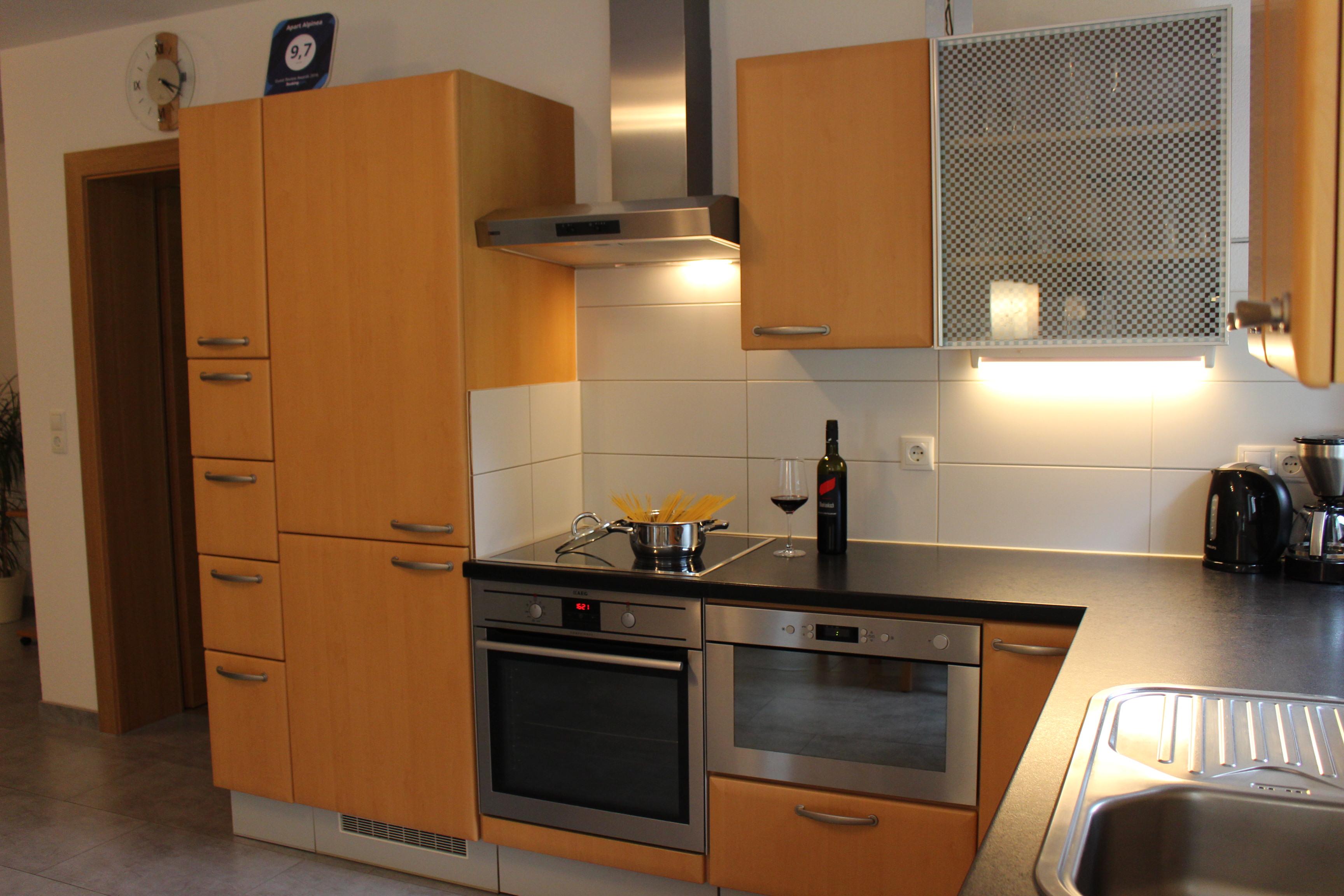 • voll ausgestattete Küche mit Cerankochfeld, Dunstabzug, Backofen, Mikrowelle, Kühlschrank mit Gefrierfächer, Filterkaffeemaschine, Wasserkocher, Eierkocher, Toaster, Spühlmaschine und die wichtigsten Kochutensilien