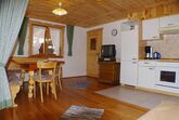 Die Wohnküche hat neben dem Geschirr, einen Kühlschrank mit Gefrierfach, Elektroherd mit Backofen, Mikrowelle, Wasserkocher, Toaster, Kaffeemaschine (Filter) und einem SAT/TV.