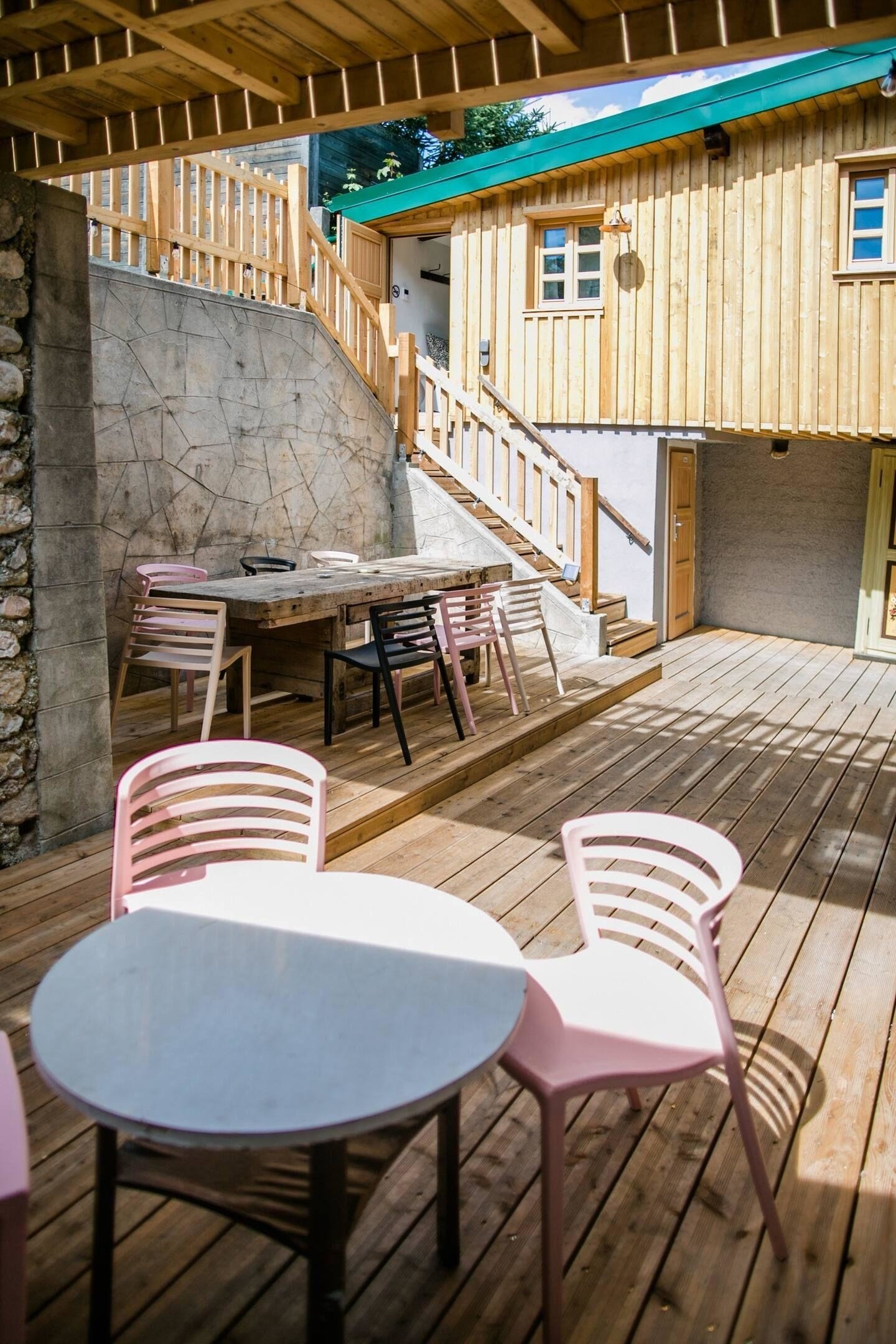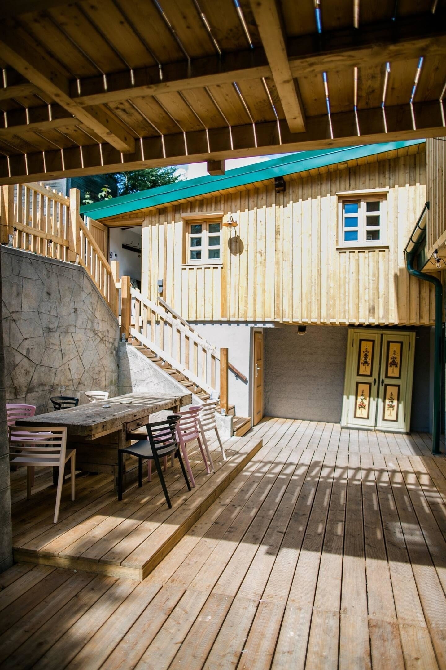 Das Apartment verfügt über einen privaten Eingang. Im gemütlichen Innenhof haben Sie die Möglichkeit andere Gäste zu treffen, an der großen Tafel zu essen oder im Garten zu verweilen.