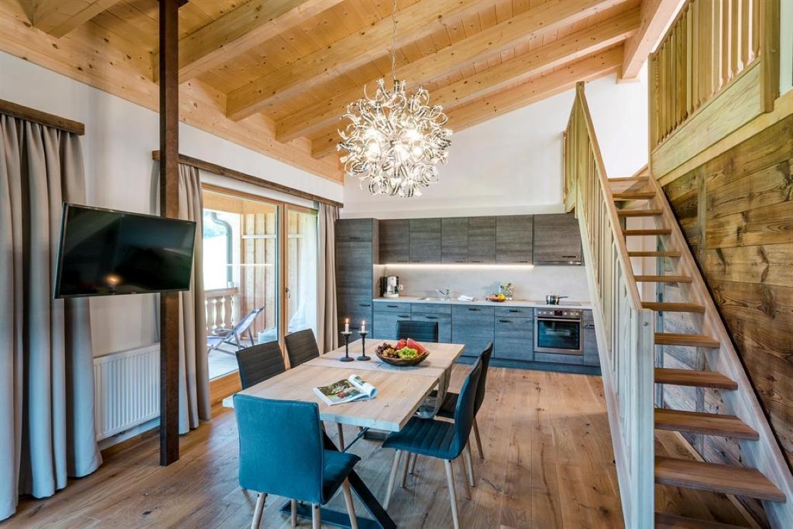 2 Schlafzimmer mit Doppelbetten und Schlafcouch für 2 im Wohnraum oder 1 Schlafnest in der Galerie für bis zu 4 Personen, 2 x Bad & WC, 1 Wohnraum mit Küchenzeile, Essecke, Balkon, Geschirrspüler, Mikrowelle, Ceranfeld, Backrohr, Kabel TV, WLAN. Inklusive Frühstück am Buffet, Almlust Spa & Almhallenbad Nutzung, im Winter Skiraum, im Sommer Almsee und Gartenanlage inklusive.