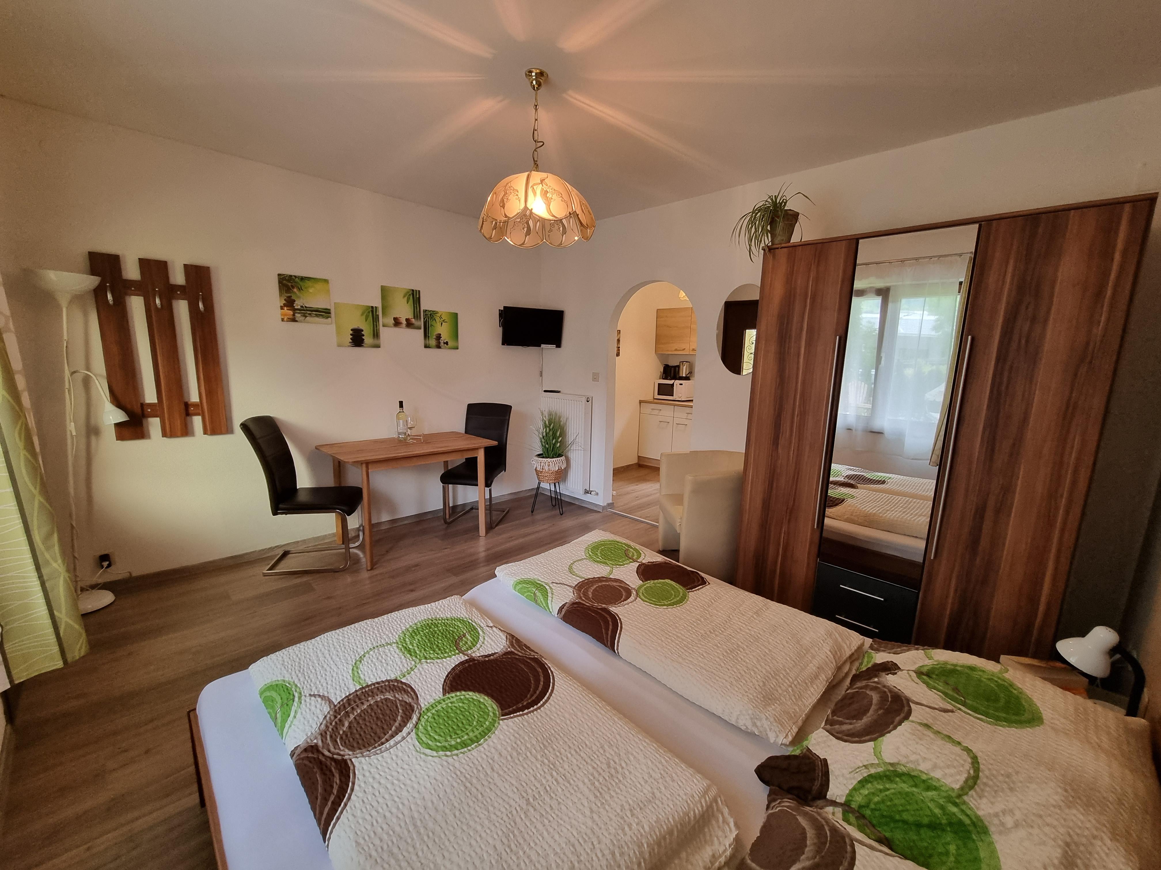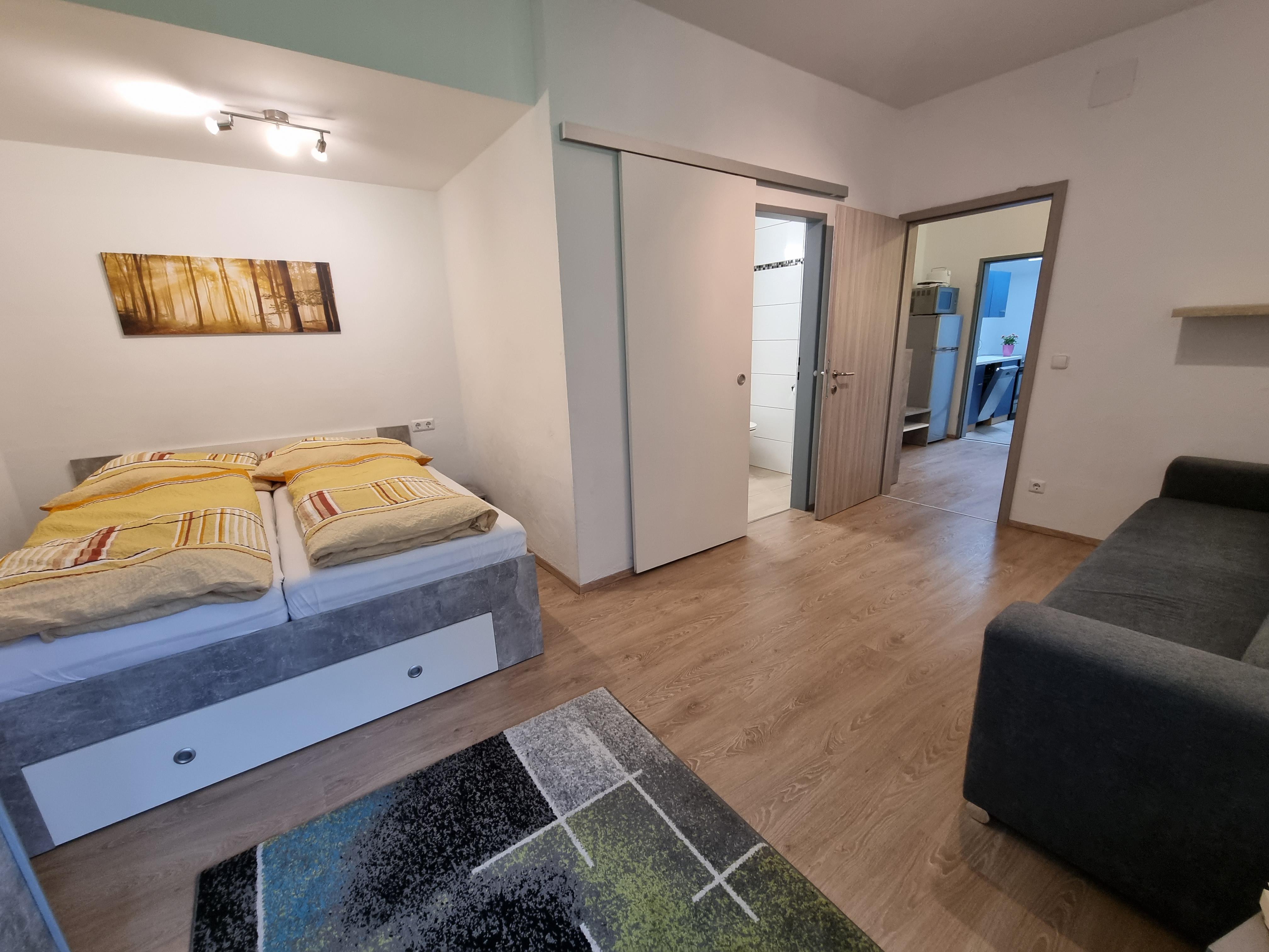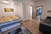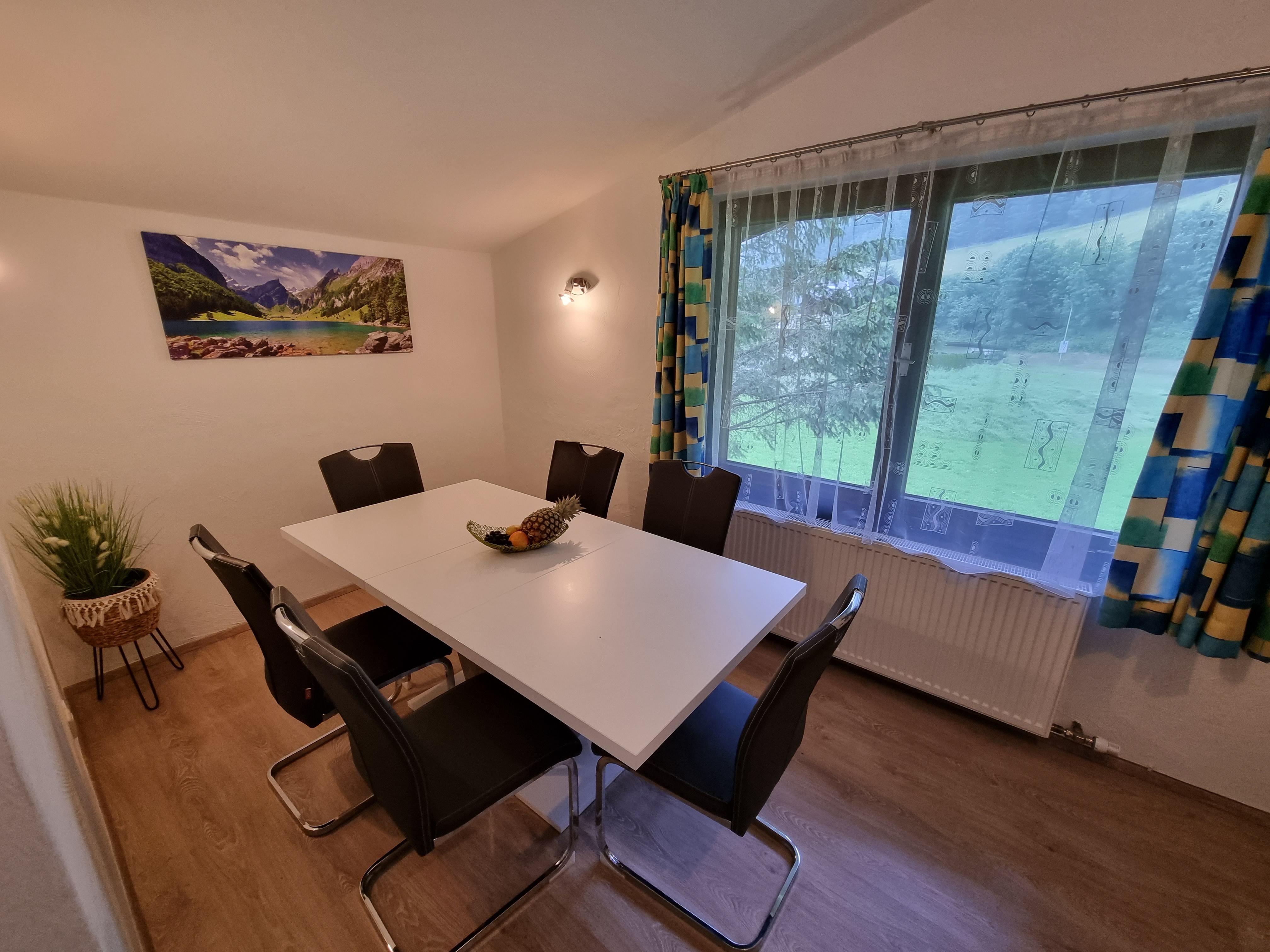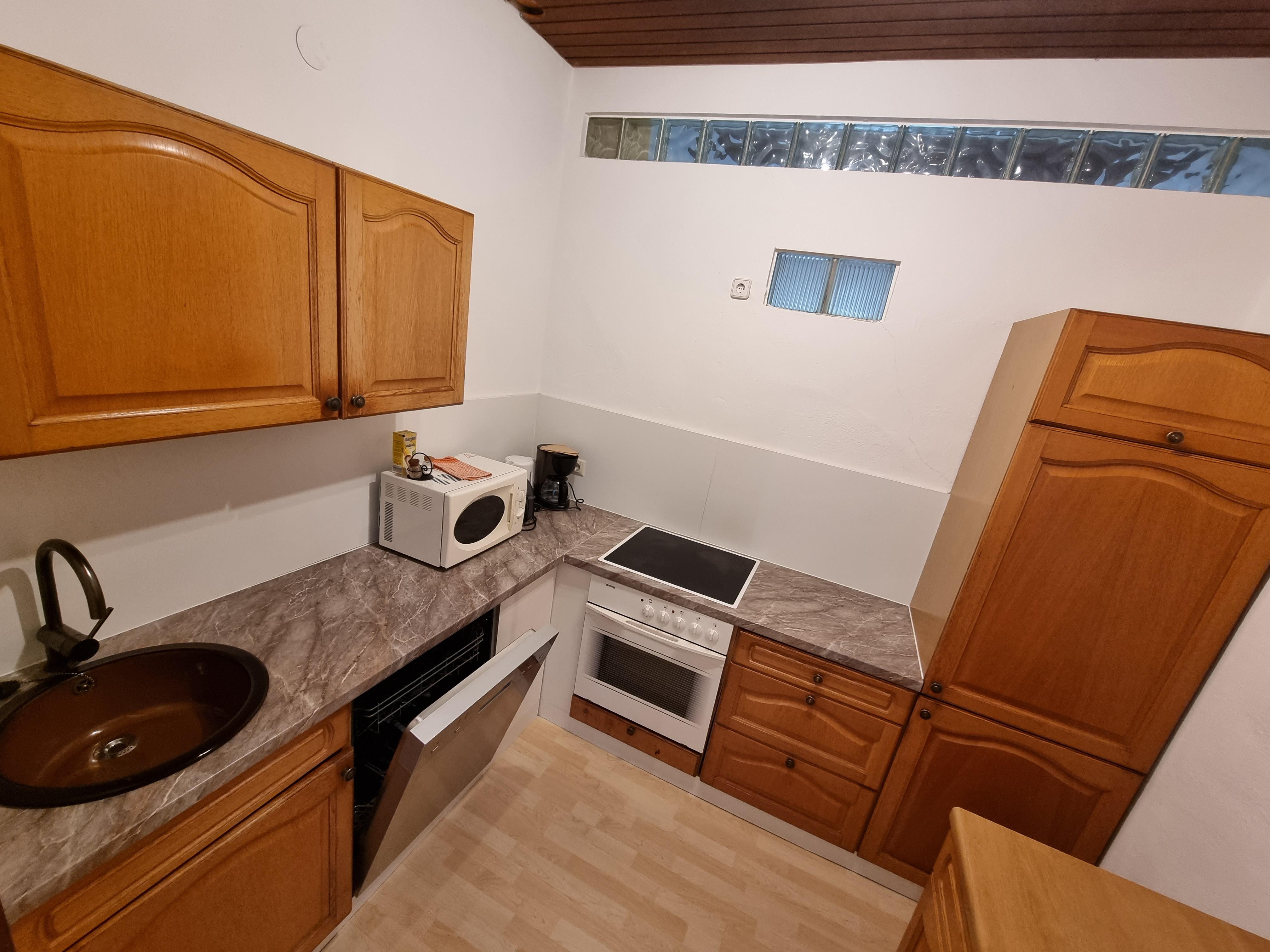 Das gemütliche Appartement ist im 1. Obergeschoss und bietet Platz für bis zu 7 Personen. Es hat eine Grösse von ca. 65 m2 und besteht aus 2 Schlafzimmern mit je einem Doppelbett und eines mit Doppelcouch, einem Wohn- / Essraum mit Schlafsofa sowie einer komplett ausgestatteten Küche (E-Herd, Backofen, Mikrowelle, Kühlschrank mit Tiefkühlfach, Geschirrspüler, Kaffeemaschine, Toaster und Wasserkocher) und 2 Badezimmern.