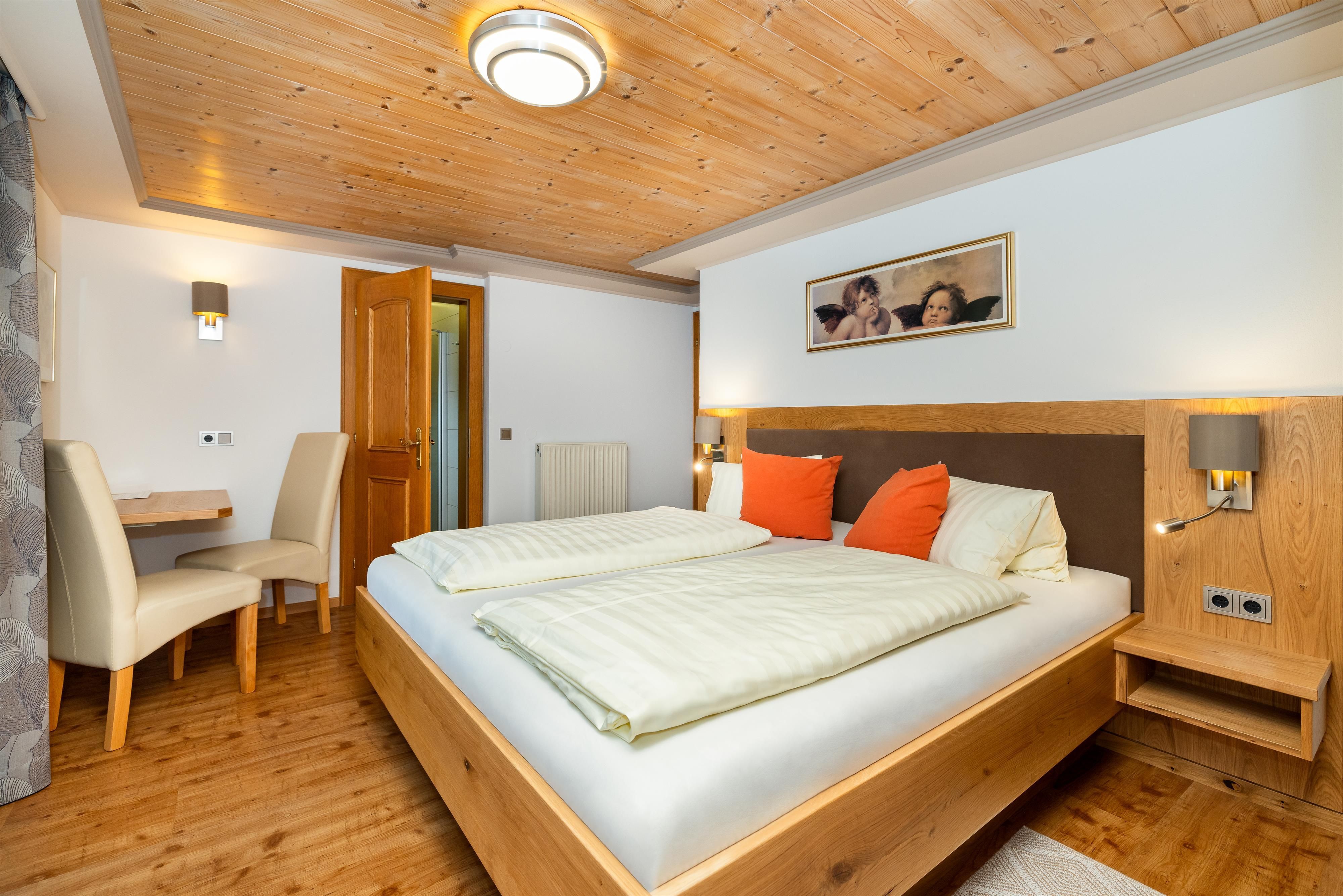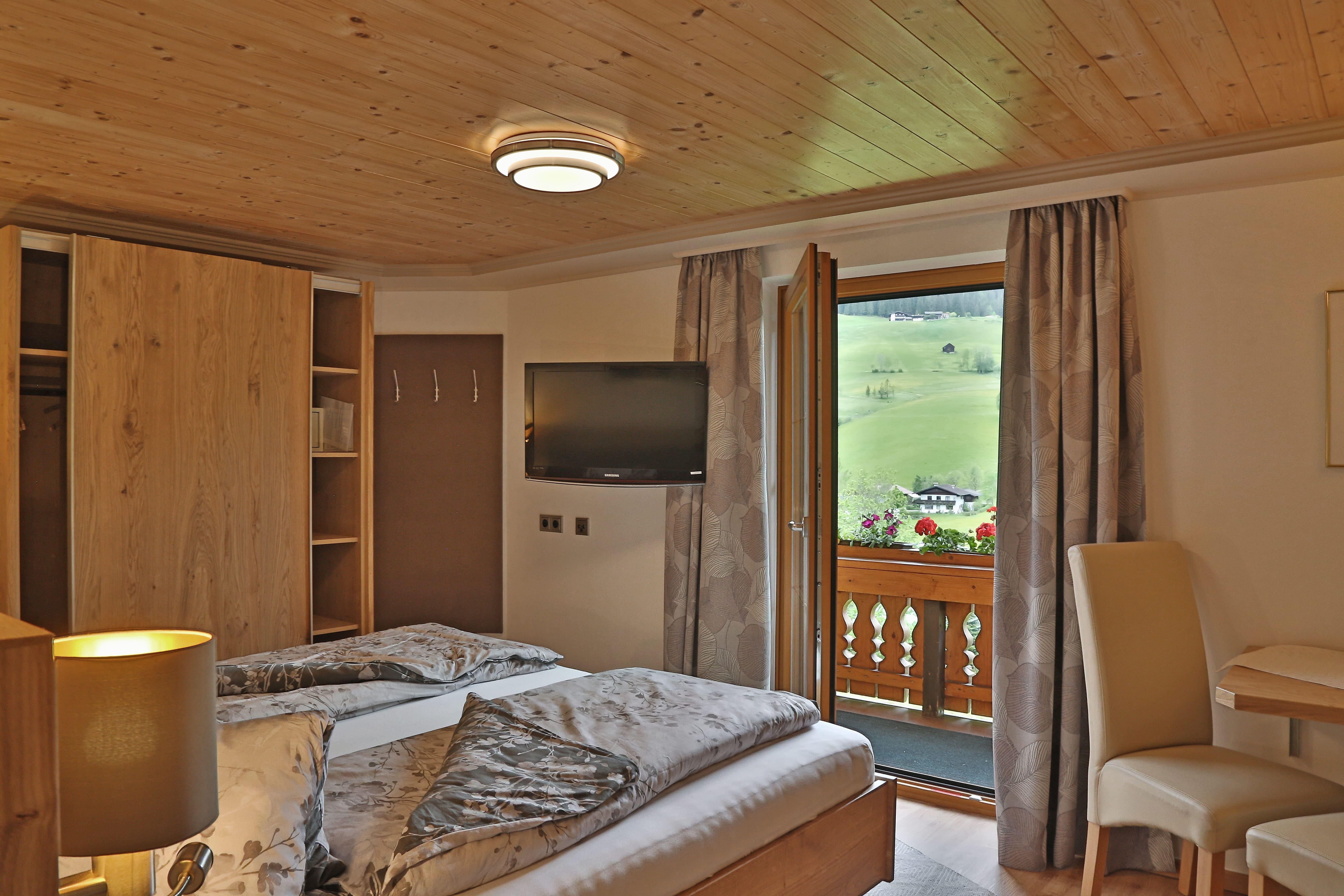 Zimmer mit DU/WC, Sat-TV, gratis Internet, Balkon, 2- und 3-Bettzimmer mit schönem Ausblick auf die Berge. Genießen Sie morgens ein reichhaltiges Frühstück.