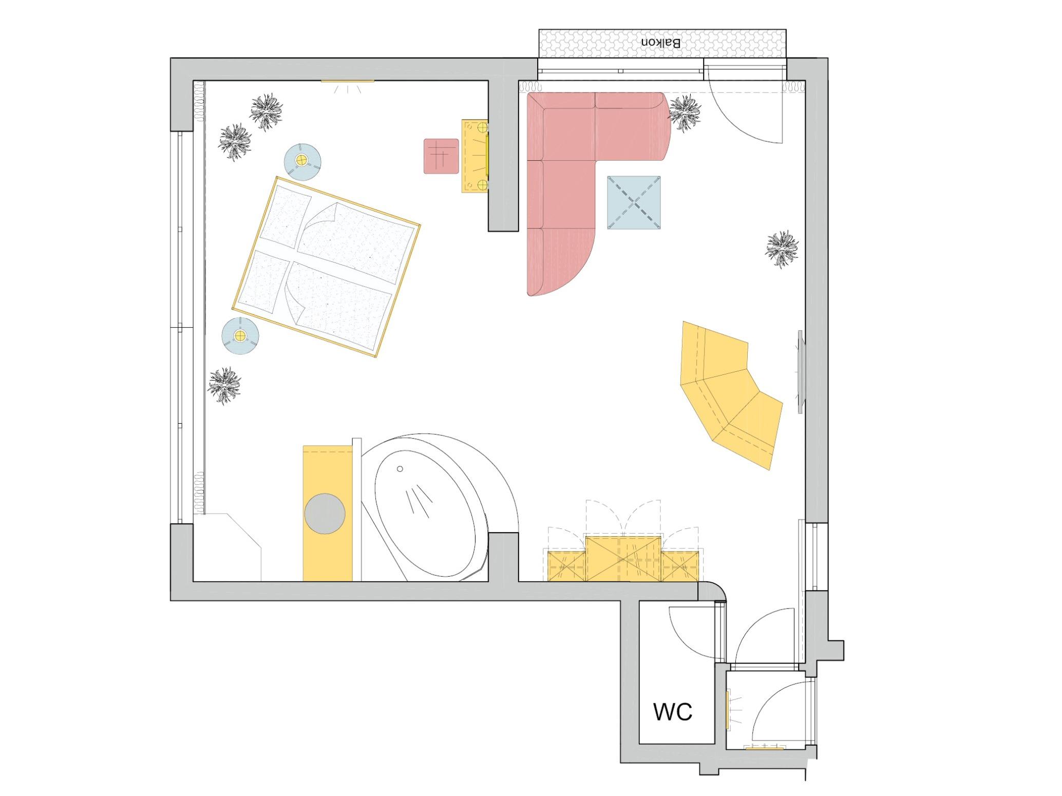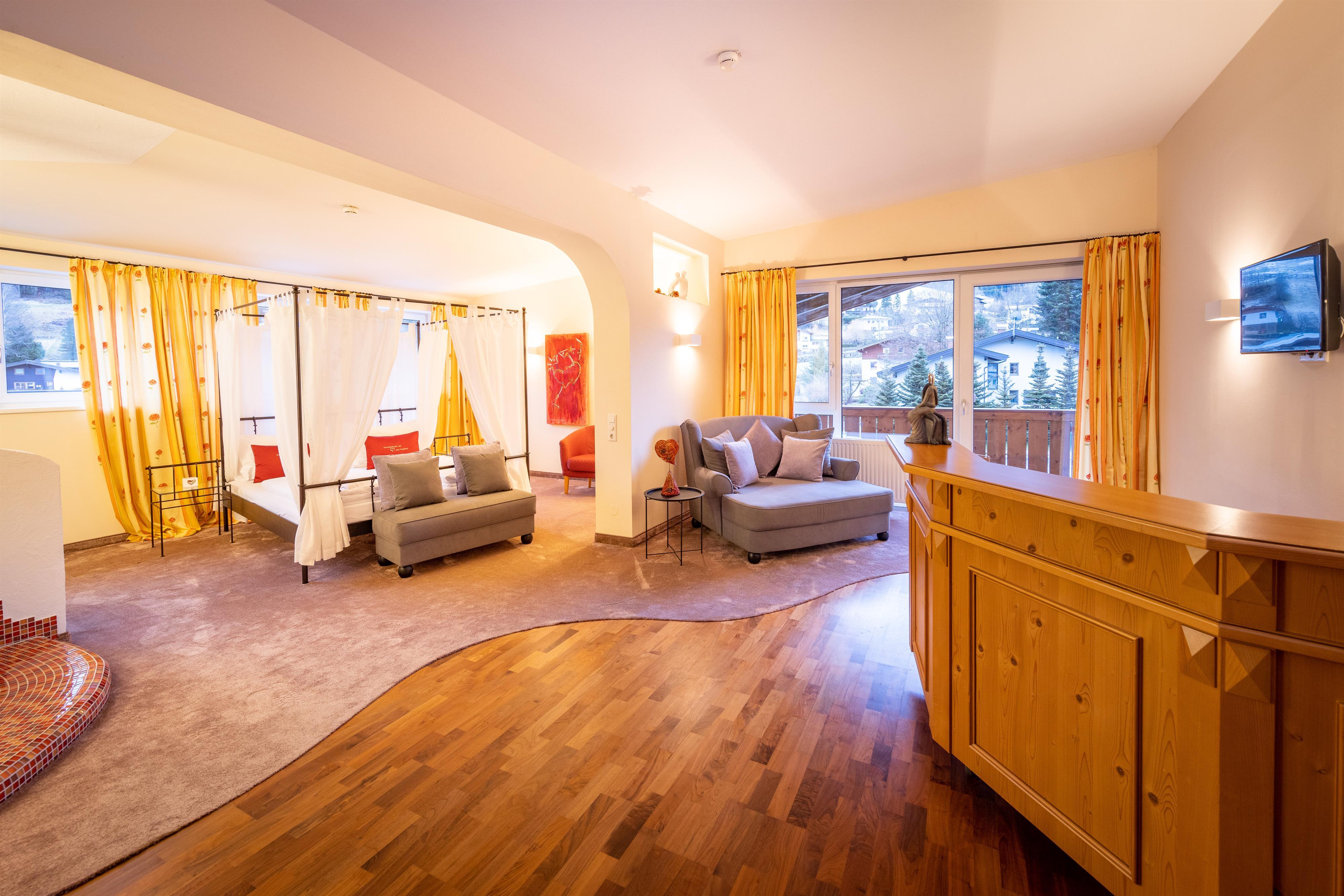 Wunderschöne Suite mit 40m² mit besonderen Akzenten für romantische Stunden zu Zweit. Selbstverständlich inklusive aller Verwöhnhotel Extras. Helle, großzügige Suite mit offenem Schlaf-, Wohn- und Badebereich, Dusche, getrenntem WC, Minibar, BALKON, gratis Wlan