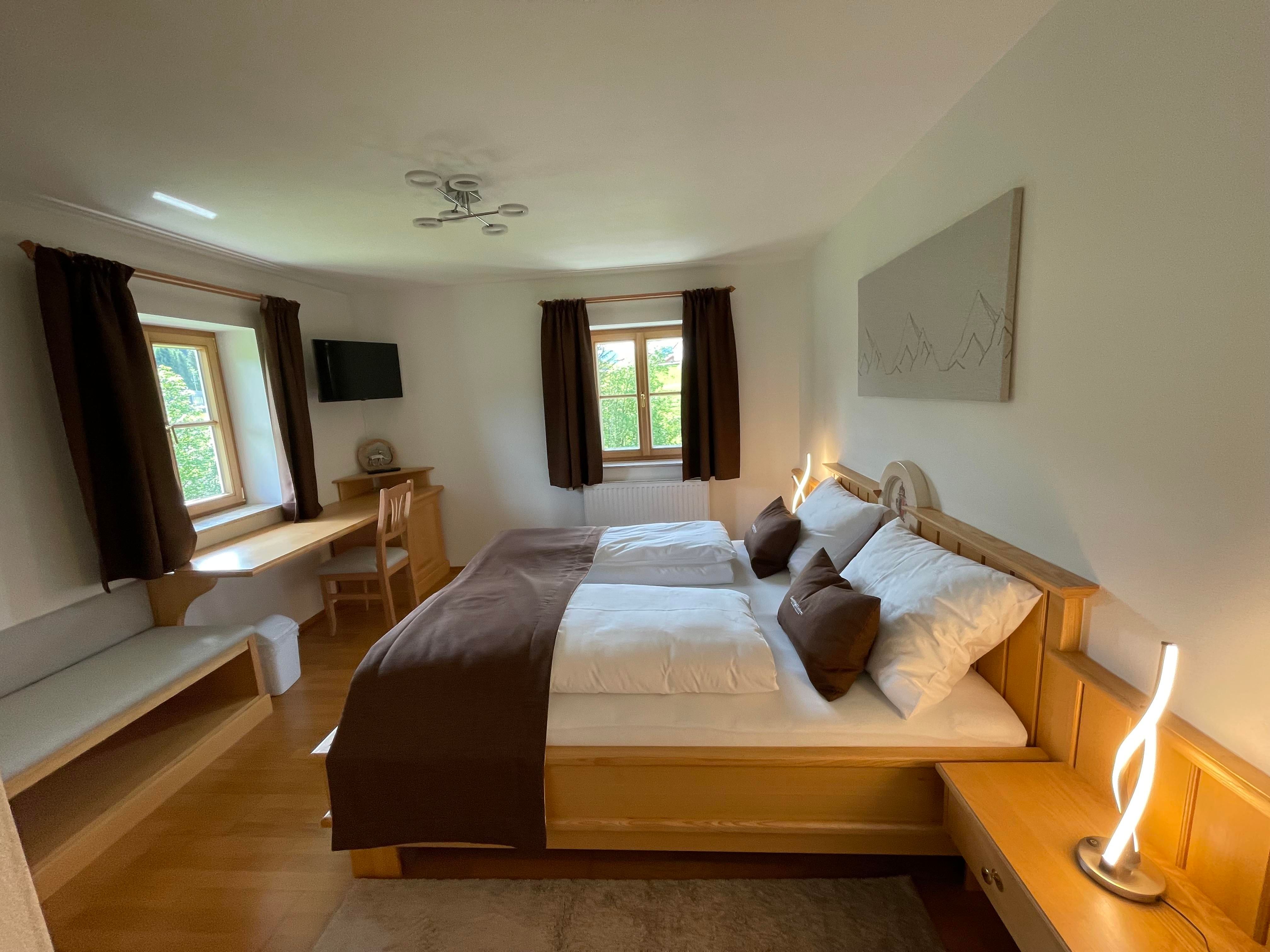 Genießen Sie unsere neu eingerichteten Zimmer im Landhausstil, mit einem herrlichen Ausblick auf die Berge. Ausgestattet mit Dusche/WC, Fön, Flat SAT-TV, W-Lan, Schreibtisch, Kofferbock und Kühlschrank. Zimmer sind Nichtraucher Zimmer!