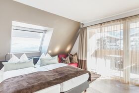 Für dich holen wir die Sterne vom Himmel - in unserem 24 Quadratmeter großen Zimmer COMFORT SKY VIEW mit dem Dachfenster direkt über dem Bett. Du wirst es lieben. Denn das ist nicht nur äußerst gemütlich, sondern eröffnet dir neue Perspektiven auf den Sternenhimmel. Ein Zimmer ideal für einen Kurzurlaub zu zweit mit allem Komfort. Dazu gehören: ein Kingsize-Boxspring-Bett (180 x 200 cm) mit superfeinem Topper, 32'' LED TV mit Kabelanschluss, kostenloses WLAN, Minibar, Espressomaschine, Safe, offenes Badezimmer mit Walk-in-Dusche, separates WC und großzügiger Balkon