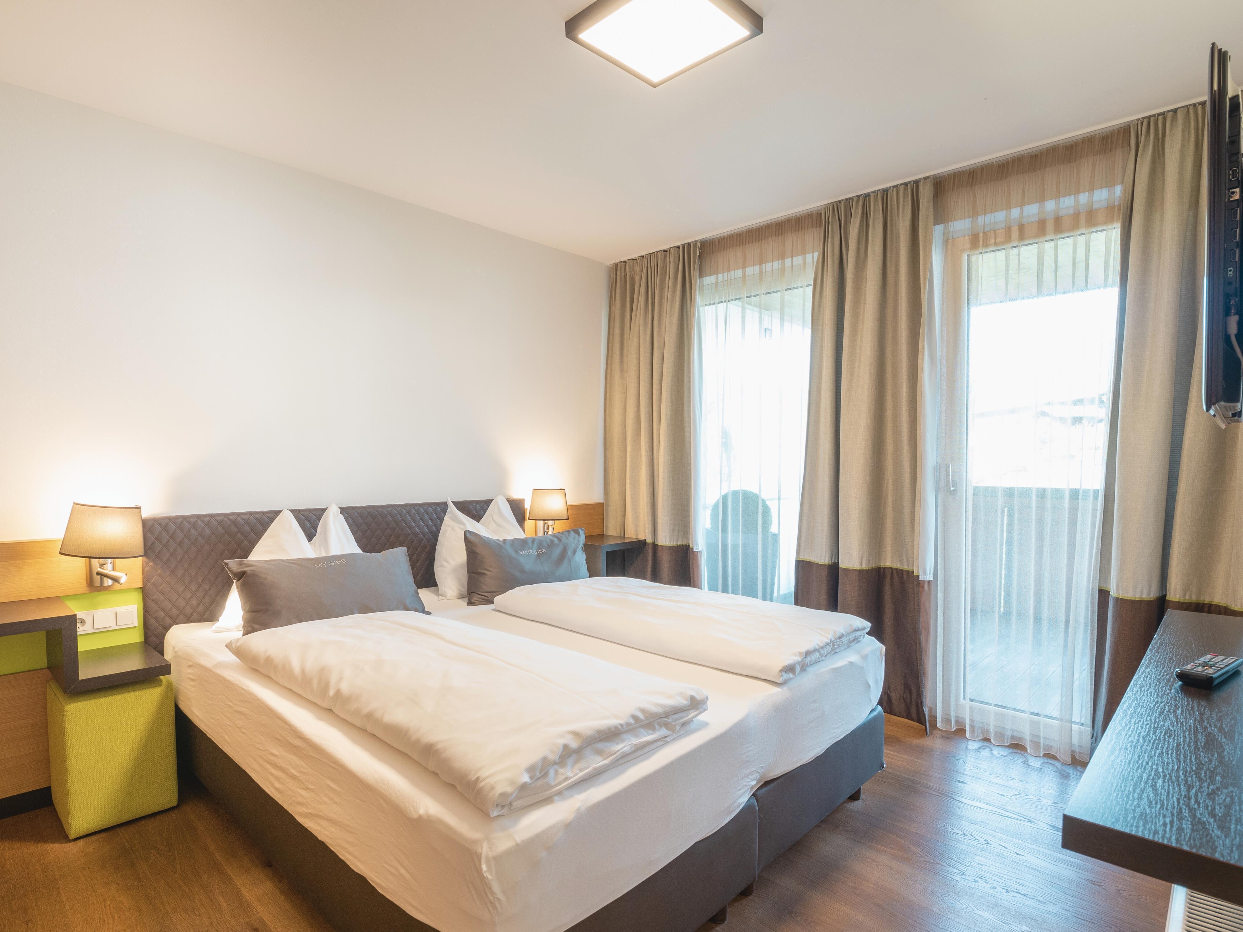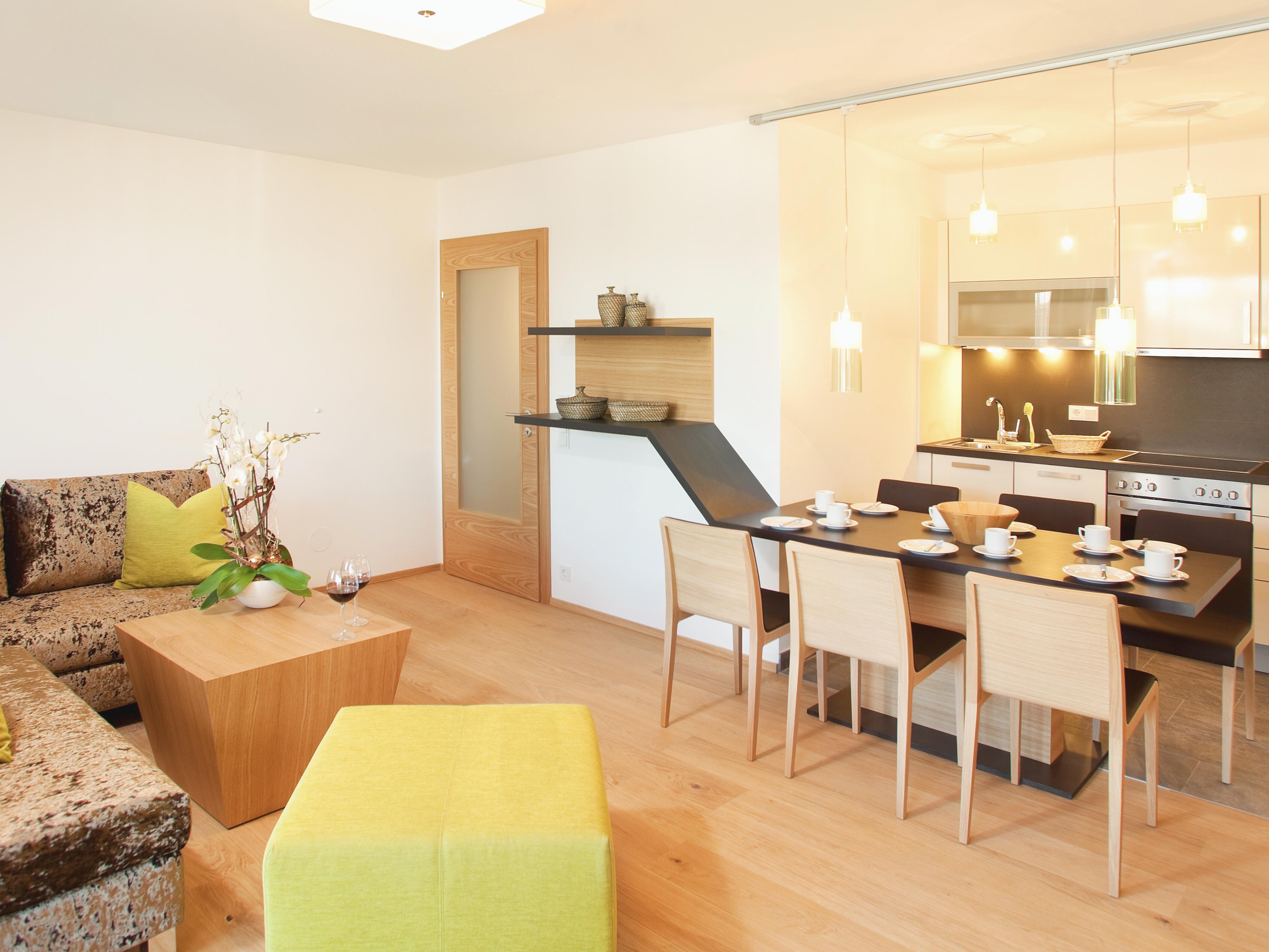 Ein Zimmer allein reicht ihnen nicht, sie wollen eine ganze Ferienwohnung für sie und ihre Lieben? Bei uns kriegen sie es und coolen Lifestyle noch dazu. Unsere APARTMENTS bieten ihnen alles, was auf ihrer Wunschliste ganz oben steht: ein gemütliches Wohnzimmer mit Schlafcouch zum Chillen, eine modern eingerichtete Küche, wo sie den Kochlöffel schwingen können, zwei Schlafzimmer, zwei Bäder mit Dusche und WC, einen großen Balkon, WLAN, drei 32'' LED TV mit Kabel-TV und vieles mehr, damit sie sich ganz wie zu Hause fühlen. Und das Beste dabei? Sie kommen in den Genuss all unserer Inklusivleistungen.