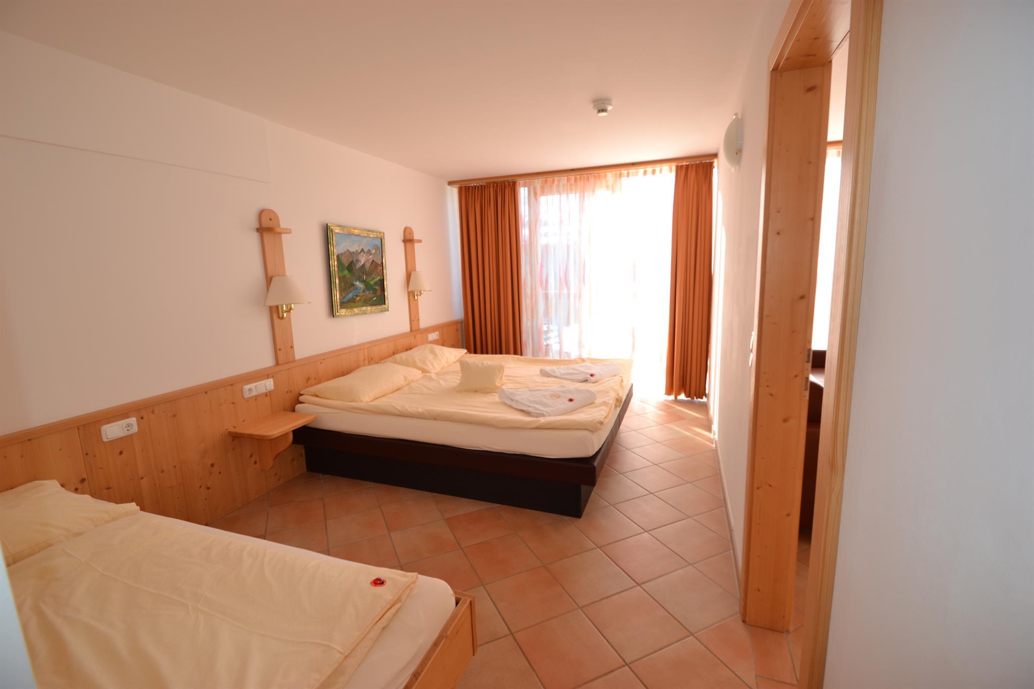 2 getrennte Schlafzimmer mit jeweils einem Doppelbett und einem Einzelbett