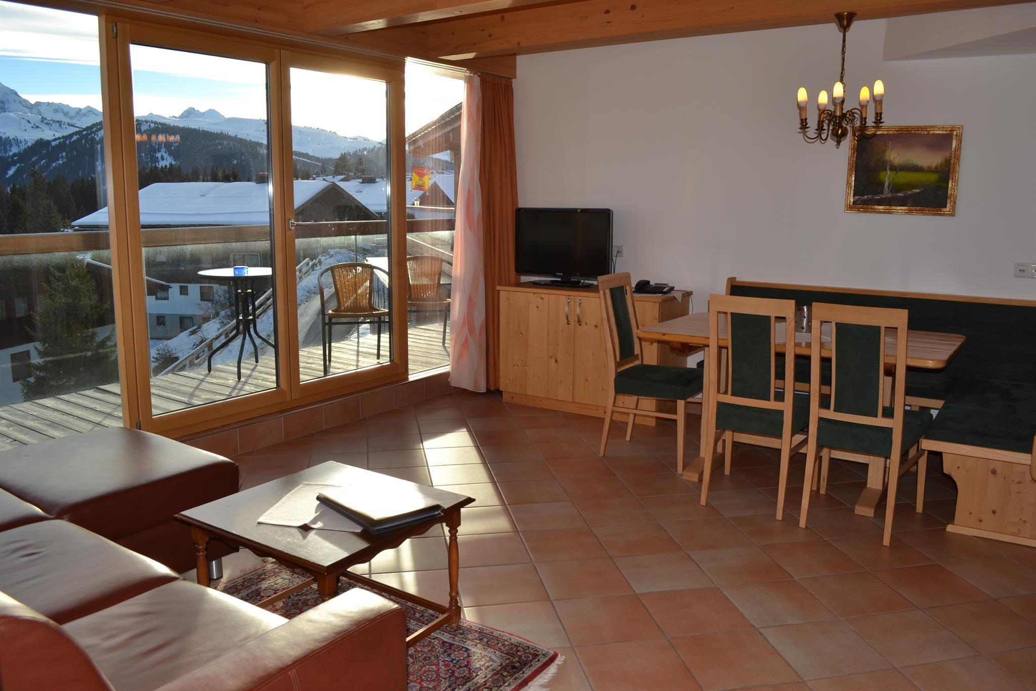 Wir bieten unseren Gästen eine gepflegtes Ambiente in unseren Wohnungen, Panoramahallenbad, zwei Wellnesbereiche, Fitnessraum, Kinderspielzimmer,