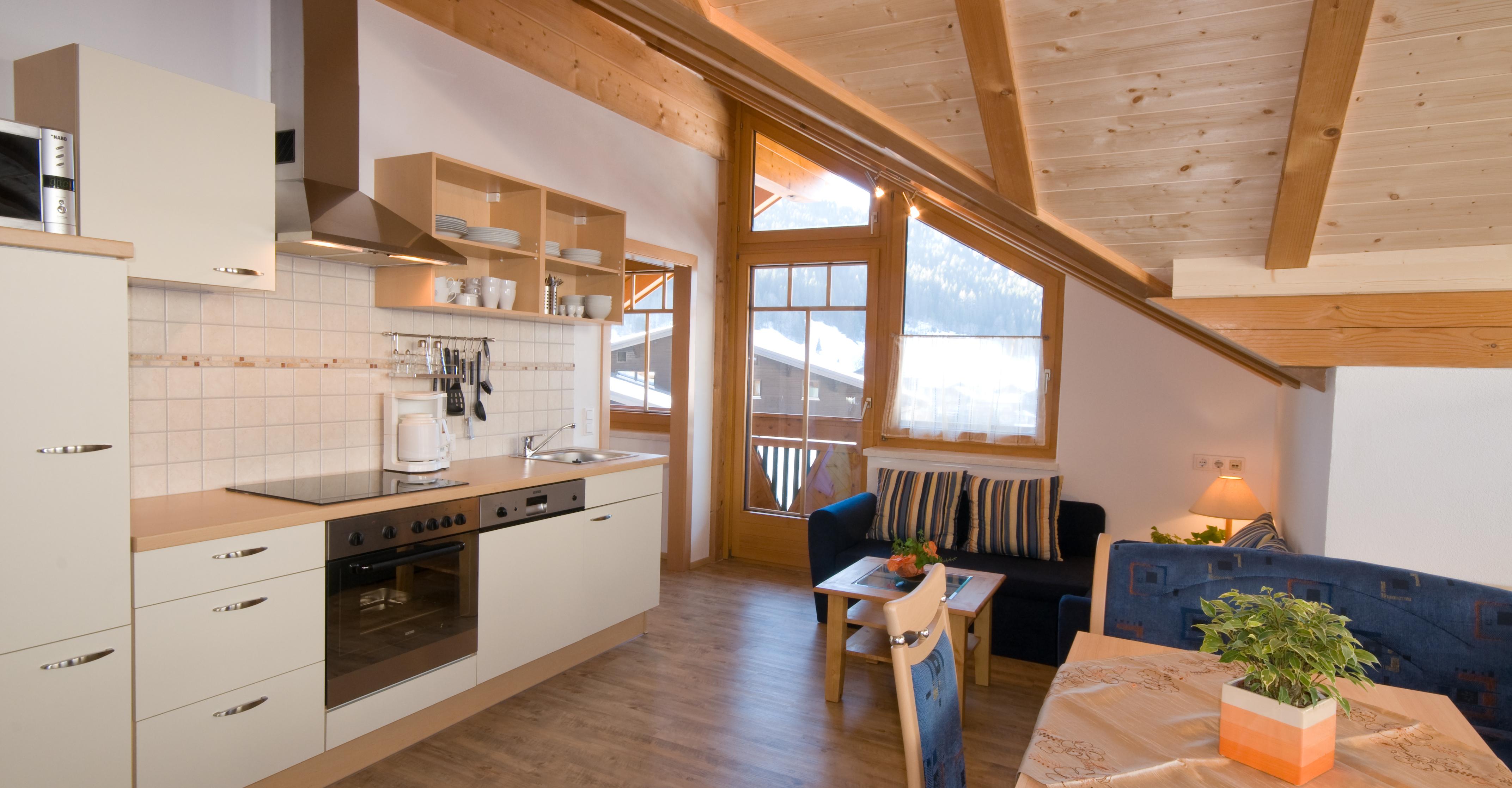 Das Appartement K2 befindet sich als einzige Wohnung in einem Privathaus. Die Ferienwohnung bietet eine große Wohnküche mit Essecke und Sitzecke, Vorraum, 2 Bäder, 2 Schlafzimmer mit Doppelbett (3. Schlafzimmer mit Doppelbett auf Anfrage) und einen großen Balkon mit herrlicher Aussicht auf Flachau.