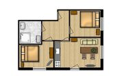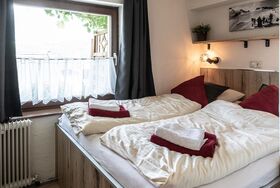 3-Zimmer- Appartement für 4 Personen (33 m2) 2 Schlafzimmer für je 2 Personen luxuriöse Küche mit Ofen und Sitzecke Badezimmer mit Dusche. Geräumige Terrasse