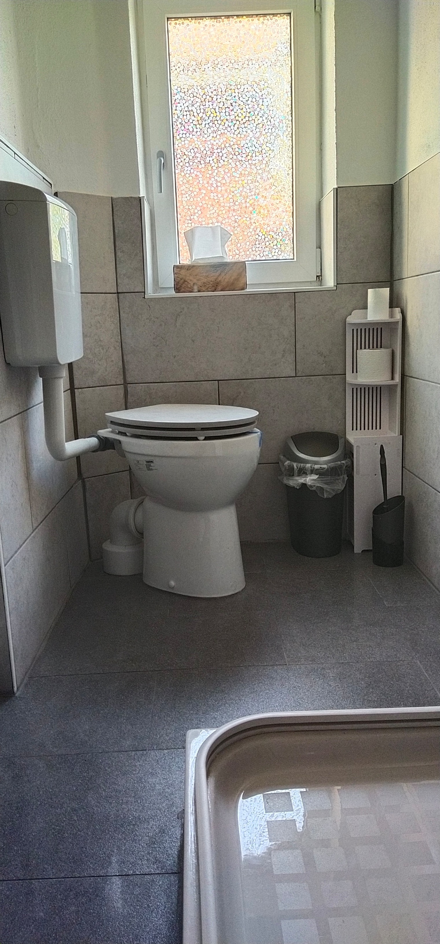 Das Badezimmer ist mit einer 70x120 Dusche und einem erhöhtem, randlosen WC ausgestattet. Eine Waschmaschine ist auch im Badezimmer vorhanden.