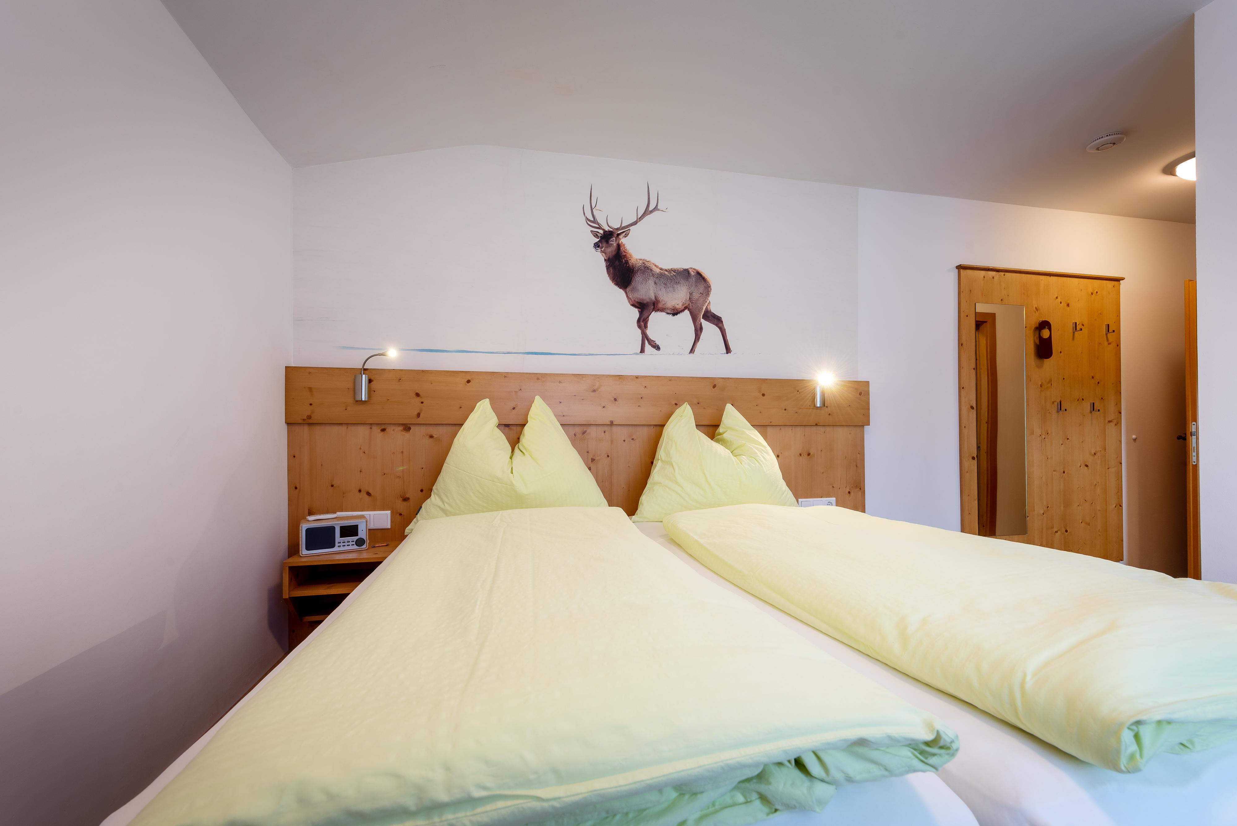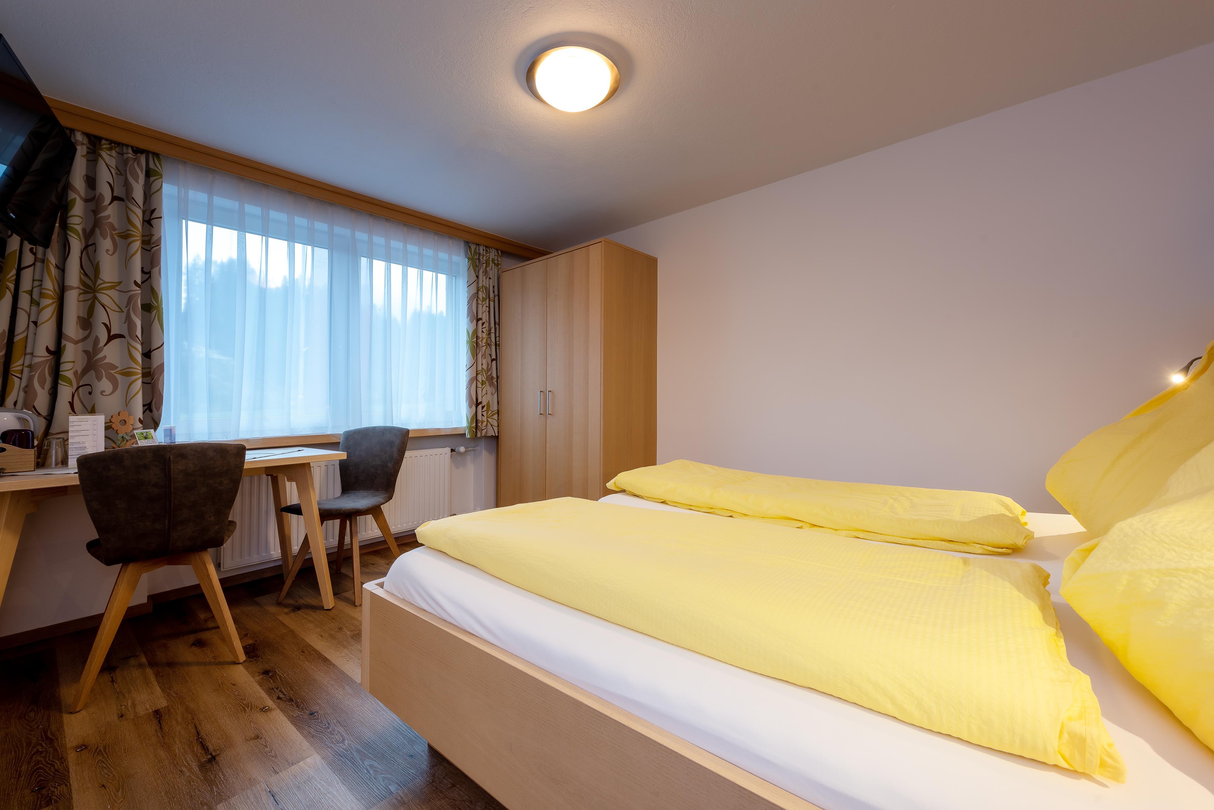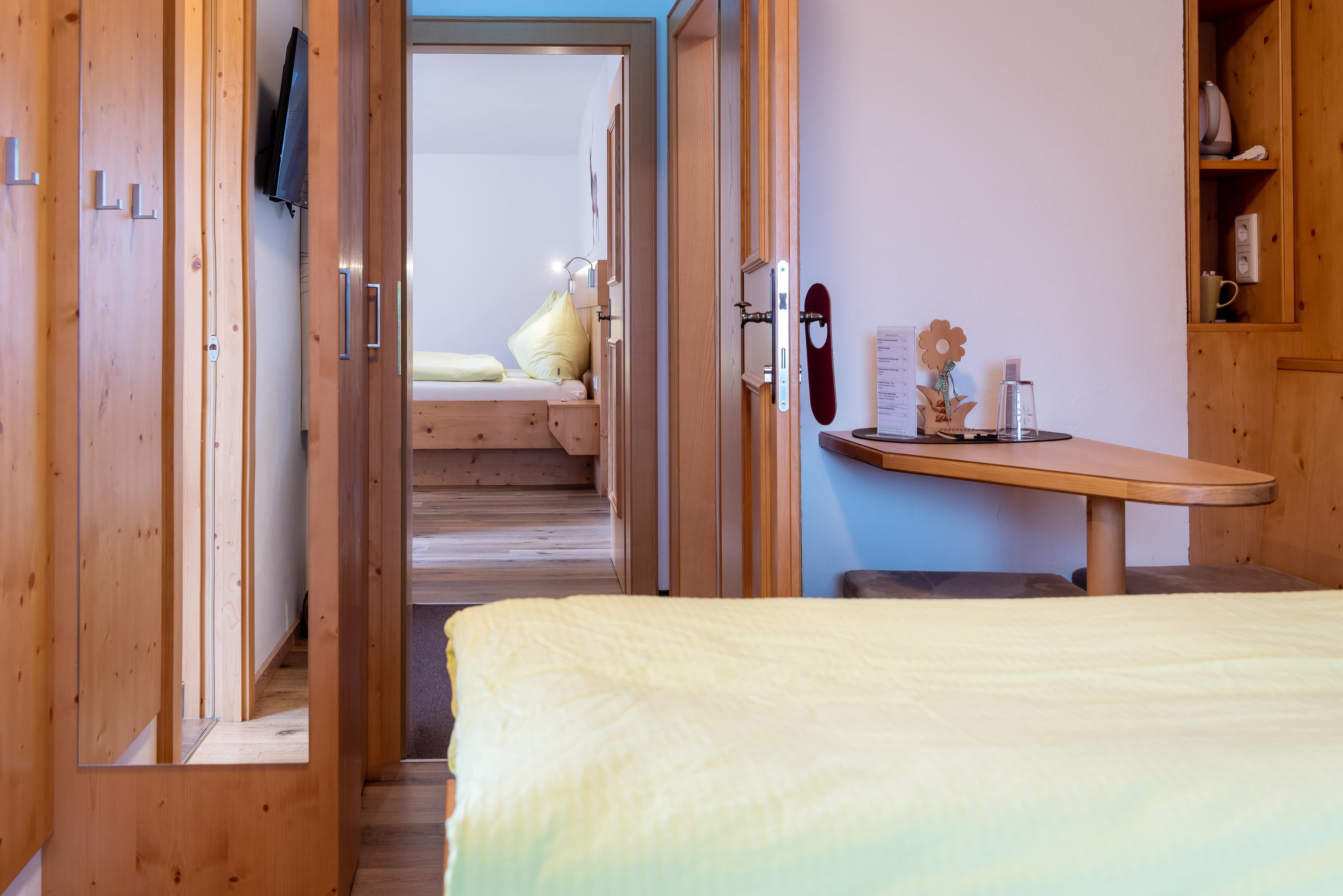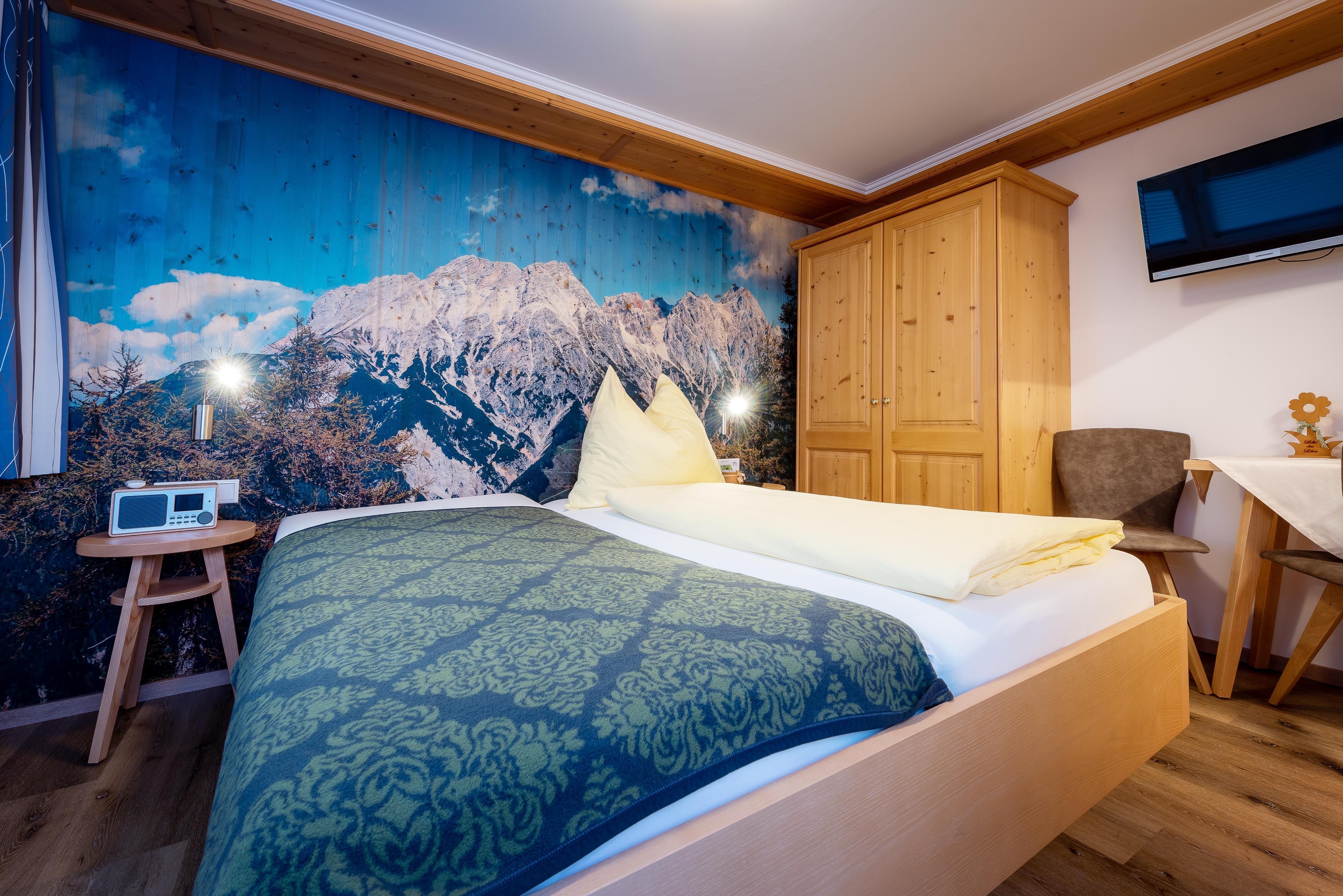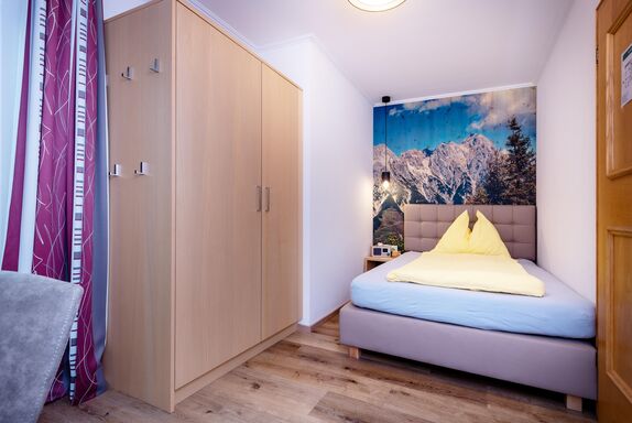 Das gemütliche Einzelzimmer mit eigenem Balkon und herrlichem Blick auf die umliegende Bergwelt.