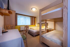 Ausstattung: 1 Doppelbett, 1 Stockbett, Dusche/WC/Fön, Kabel-TV & Radio, W-Lan