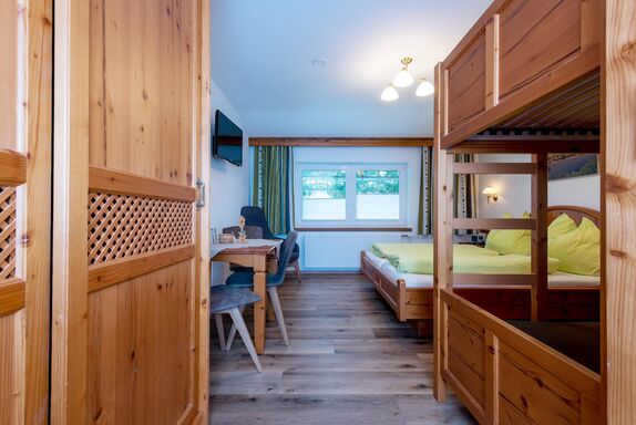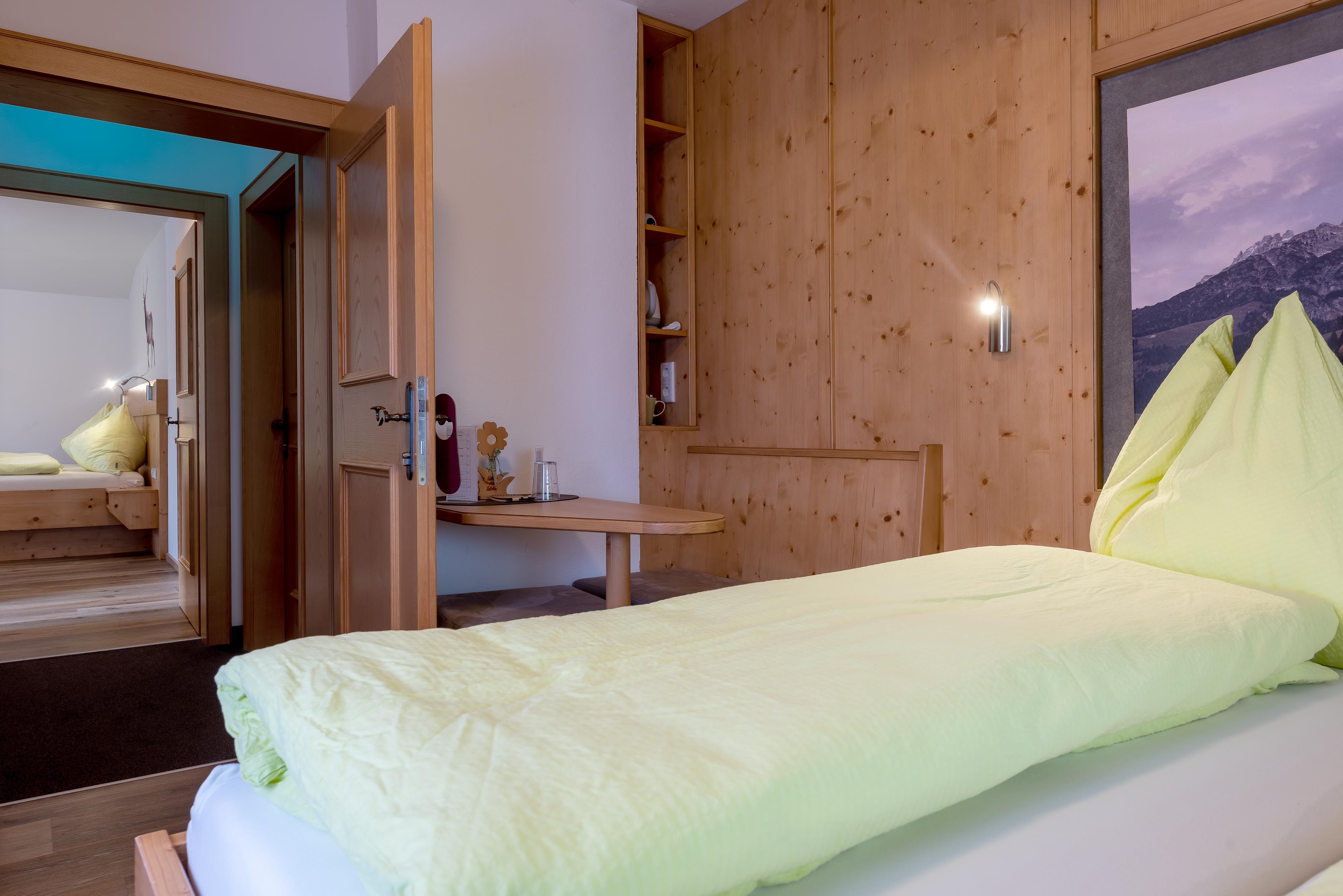 Das Familienzimmer Kleinerasitz ist optimal für die etwas größere Familie. Mit eigenem Reich für die Kinder wird der Urlaub zum Vergnügen.