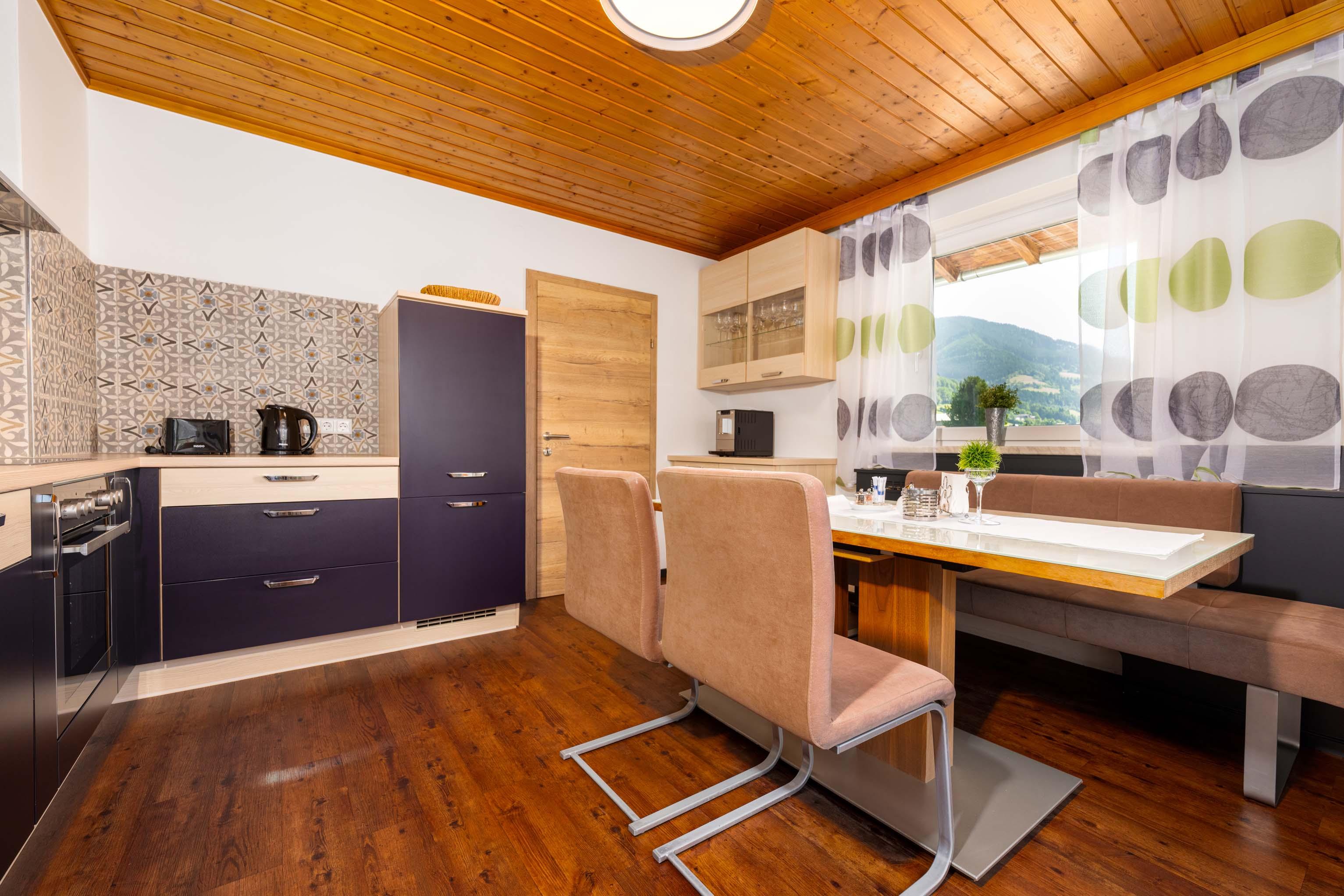 Badezimmer mit XL Dusche WC separat, bzw. im Badezimmer abgetrennt Flur mit Garderobe und separatem Vorraum Radio / CD-Player, gratis WLAN Internetzugang Balkon süd- und ostseitig, bzw. Terrasse südseitig Bettwäsche, sowie Hand- und Badetücher sind im Preis inkludiert Separat versperrbarer Raum für Sportgeräte (inkl. Skischuhtrockner).