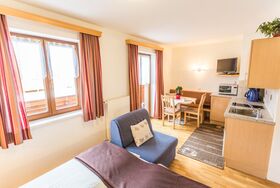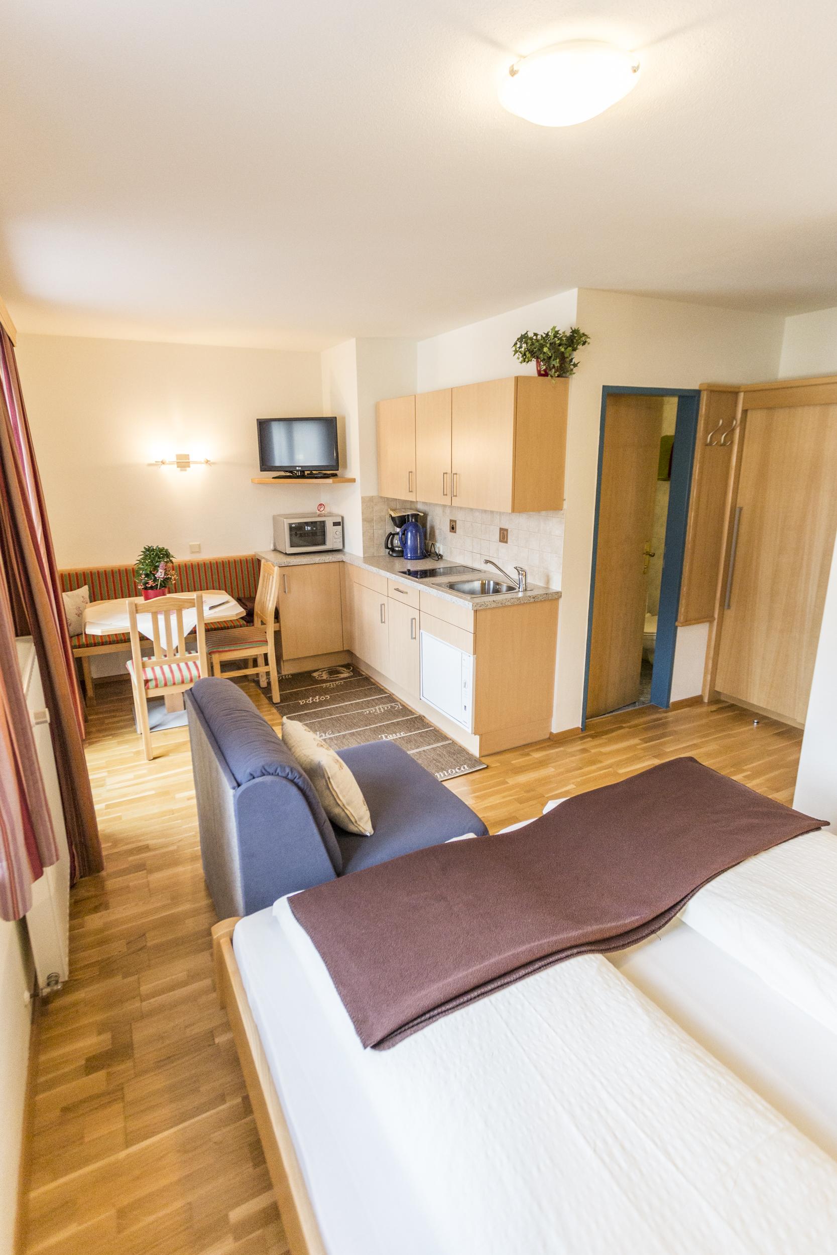 Studio mit Wohnschlafraum, Küchenzeile, Dusche, WC, Balkon, TV, Wlan