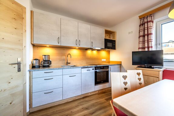 Apartment: Wohnküche, zwei Schlafzimmer, ein Badezimmer, ein seperates WC, Balkon, TV, Wlan
