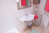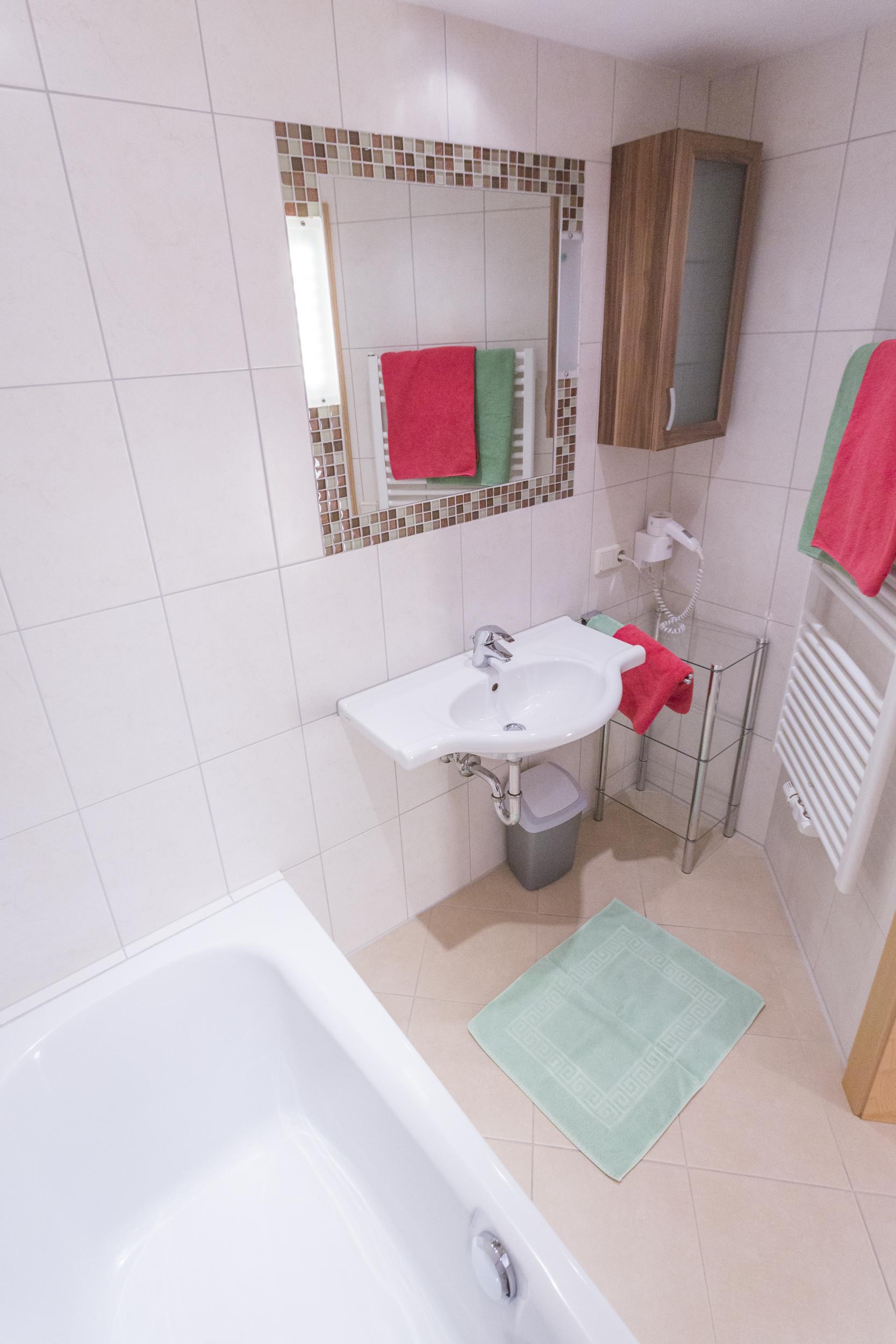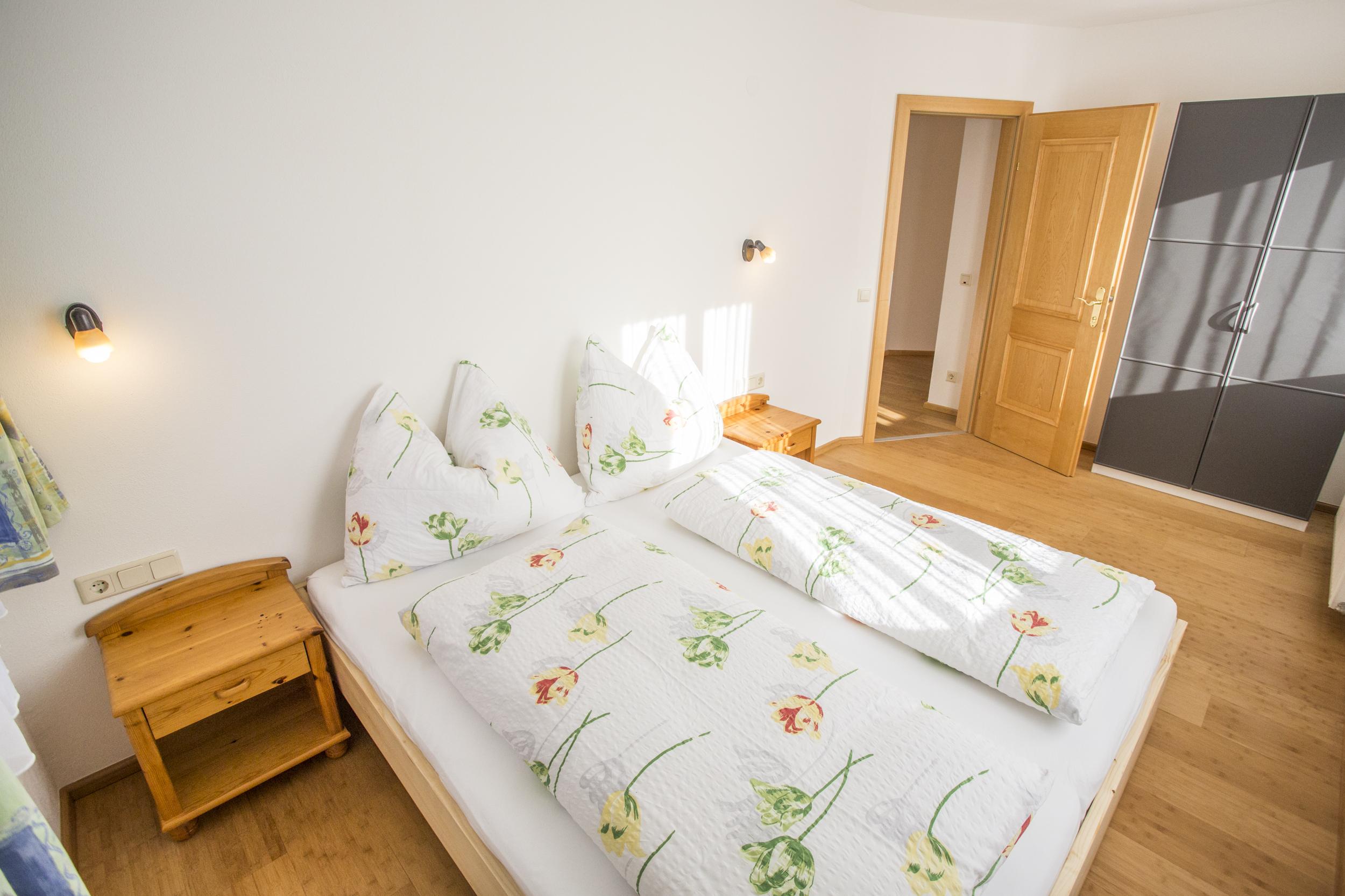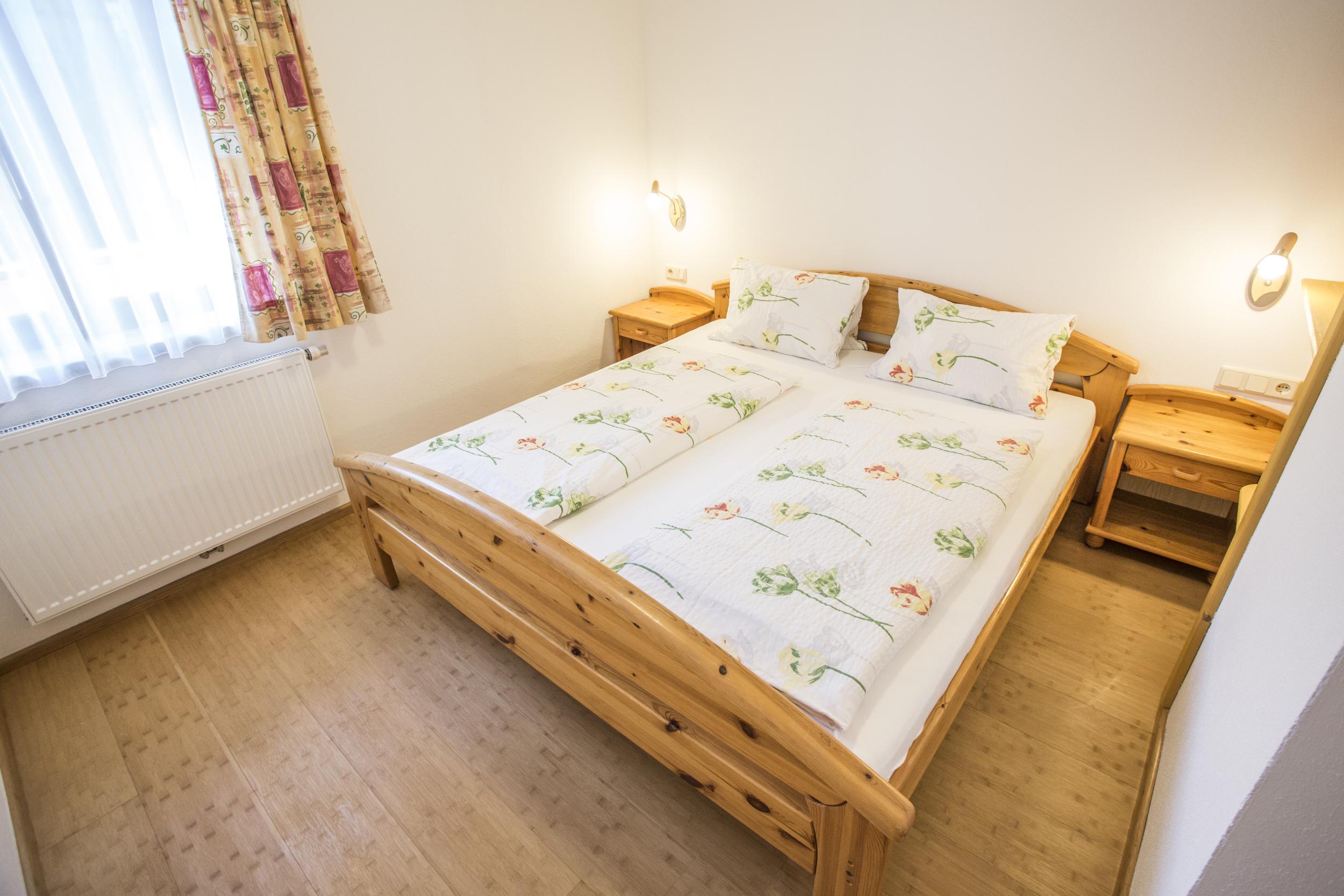 Die Ferienwohnung ist ausgestattet mit Küche, Bad, WC, einem Vorraum und 2 Schlafzimmern mit Doppelbetten. Auf Anfrage stellen wir gerne Gitterbett und Hochstuhl für Sie bereit. Im der gesamten Ferienwohnung sind Holzböden und Fliesen verlegt.