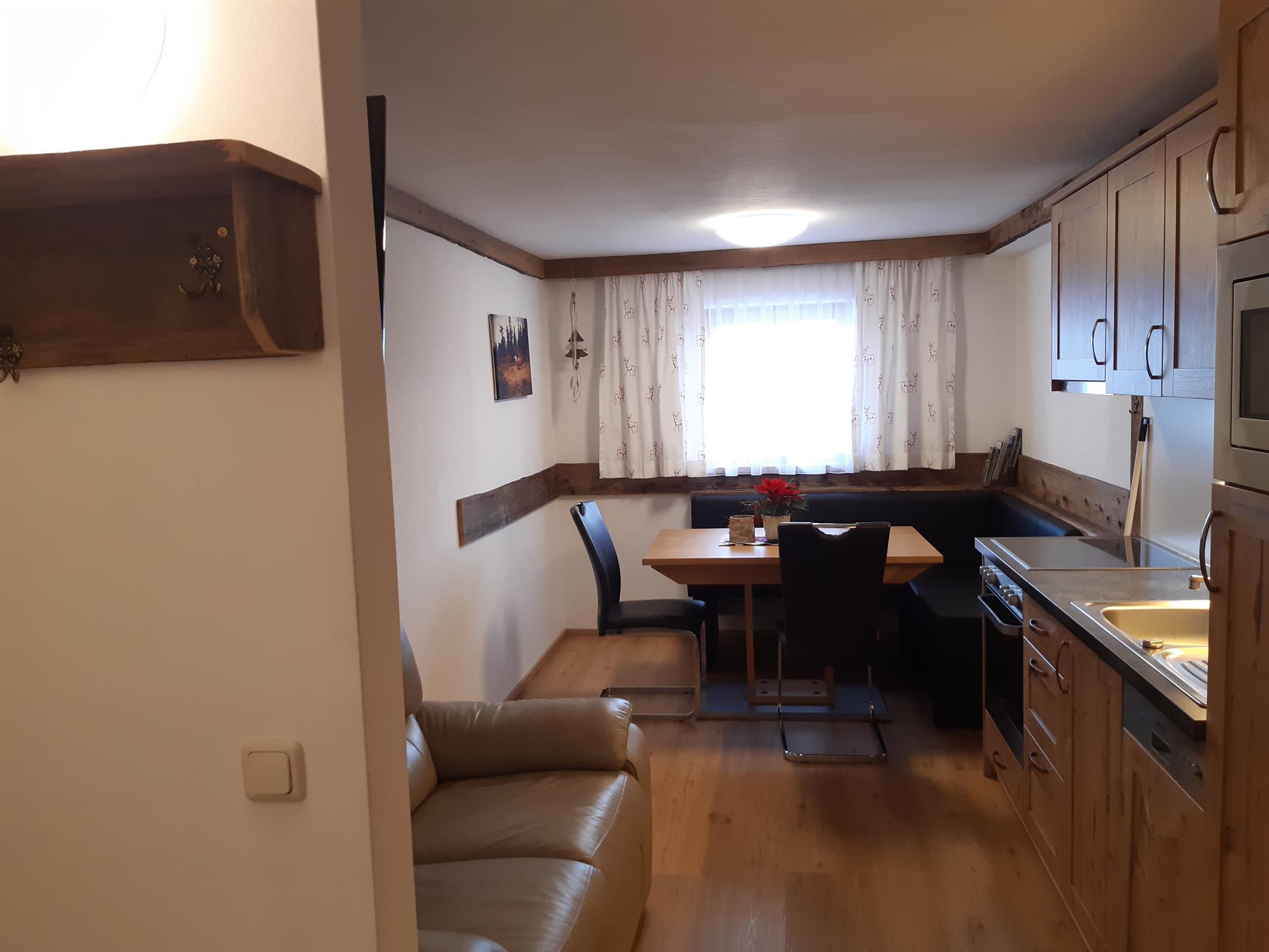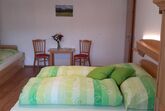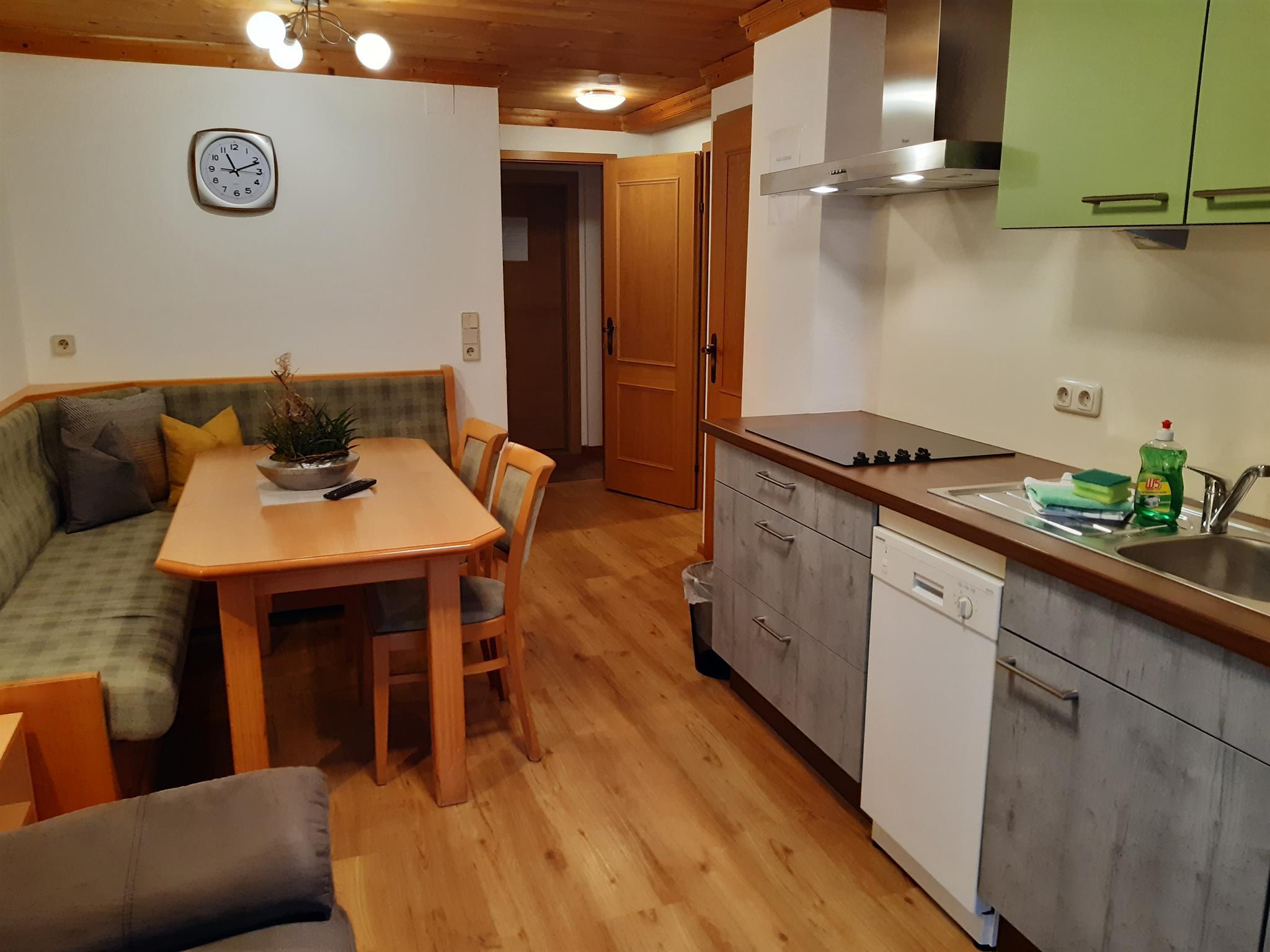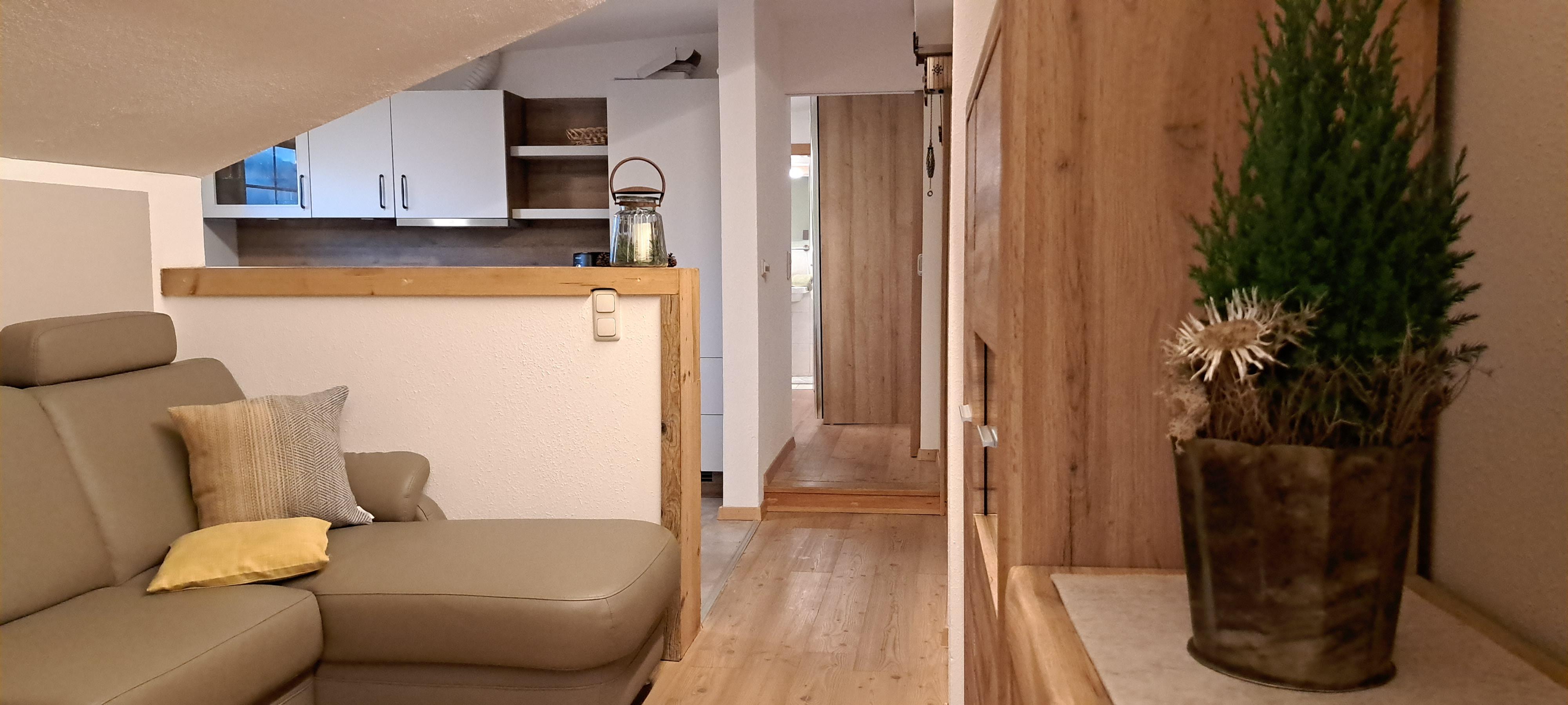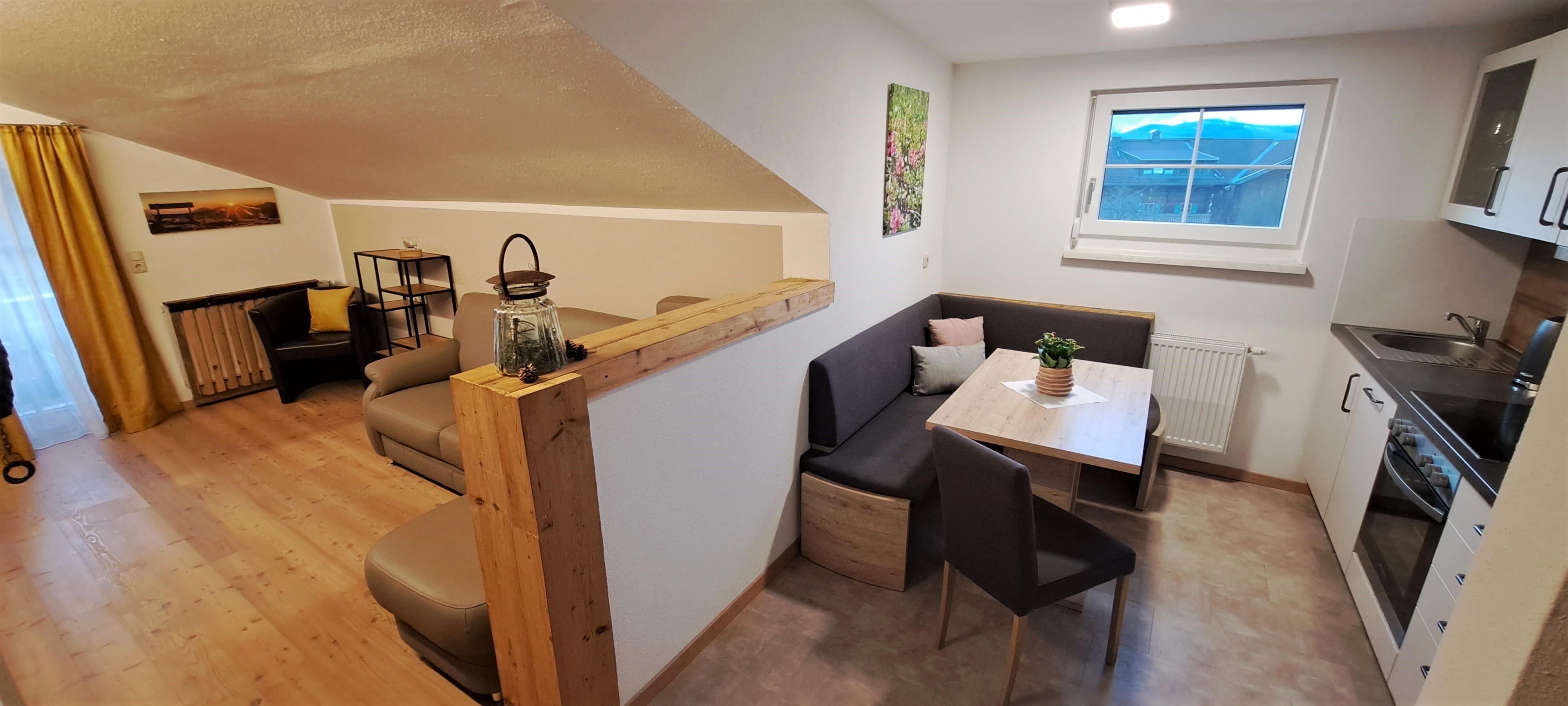 Die gemütliche Ferienwohnung im 1. Stock verfügt über eine voll ausgestattete Wohnküche, ein großzügiges Schlafzimmer, das Platz für zwei bis vier Personen bietet, sowie ein Badezimmer und ein separates WC. Der Balkon mit wundervoller Aussicht lädt zum „Seele baumeln lassen“ ein.