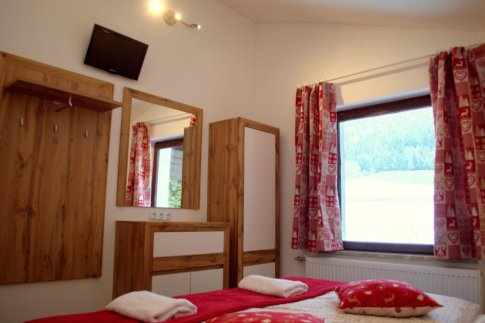 Die Zimmer bieten einen atemberaubenden Blick über das Tal und die Skipisten, die Sie entweder von innen oder von außen auf dem Balkon genießen können. Jedes Zimmer verfügt über ein Doppelbett mit zwei Matratzen und zwei Einzelbetten und Unser Familienzimmer.